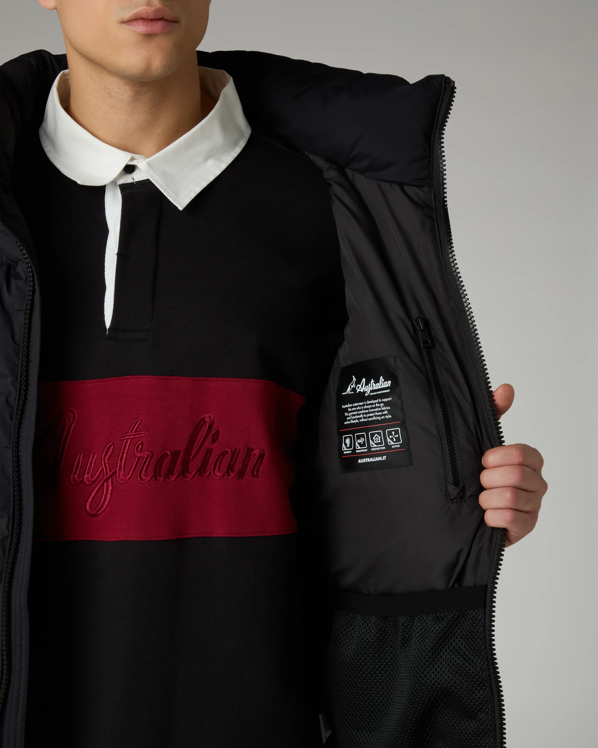 – Giubbotto in tessuto matt– Trapuntato 3-D termosaldato– Fodera in micro soft technique– Full zip– Tasche con zip e 2 tasche interne– Puller aggiuntivo personalizzato– Cappuccio inserito nel collo– Logo in silicone