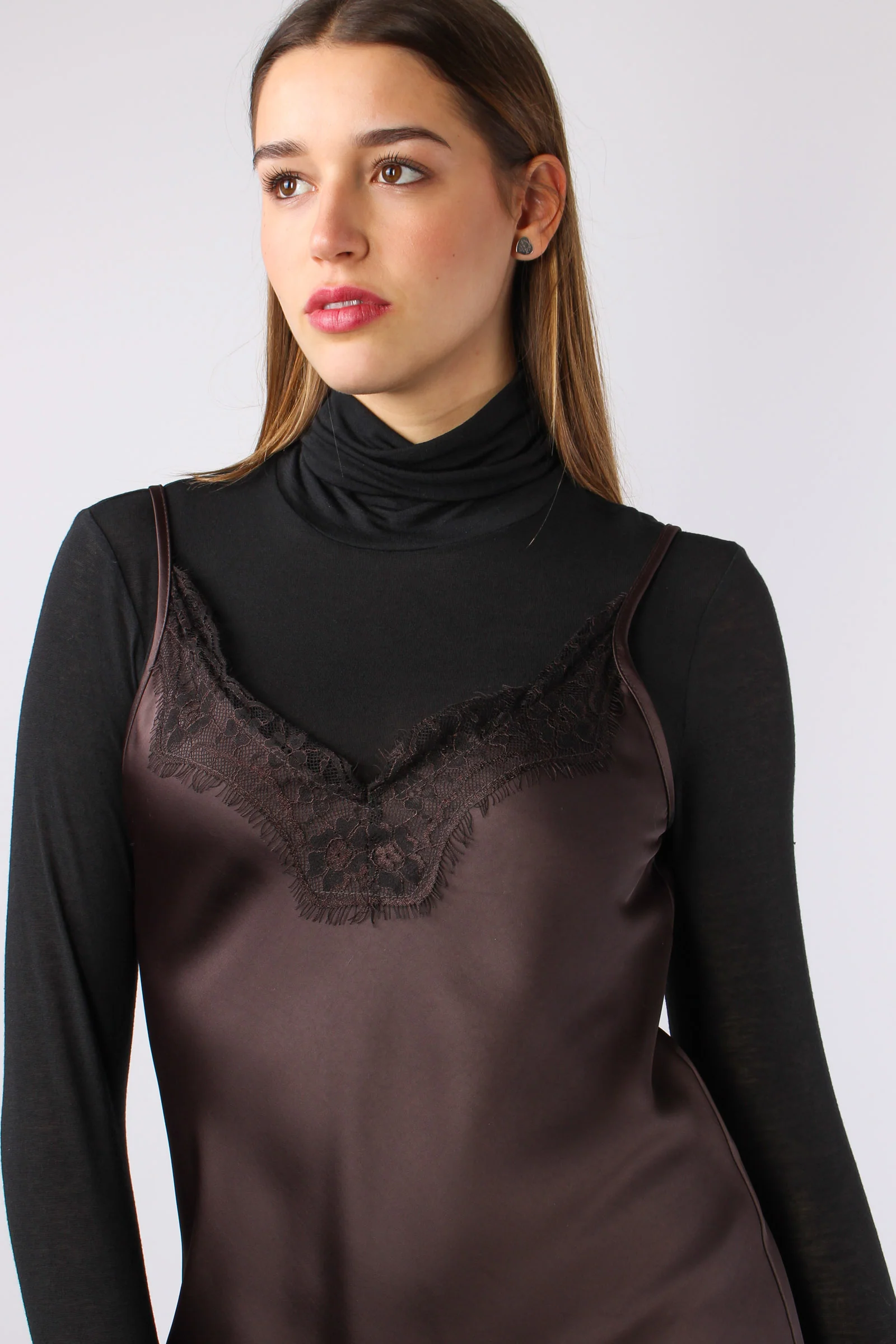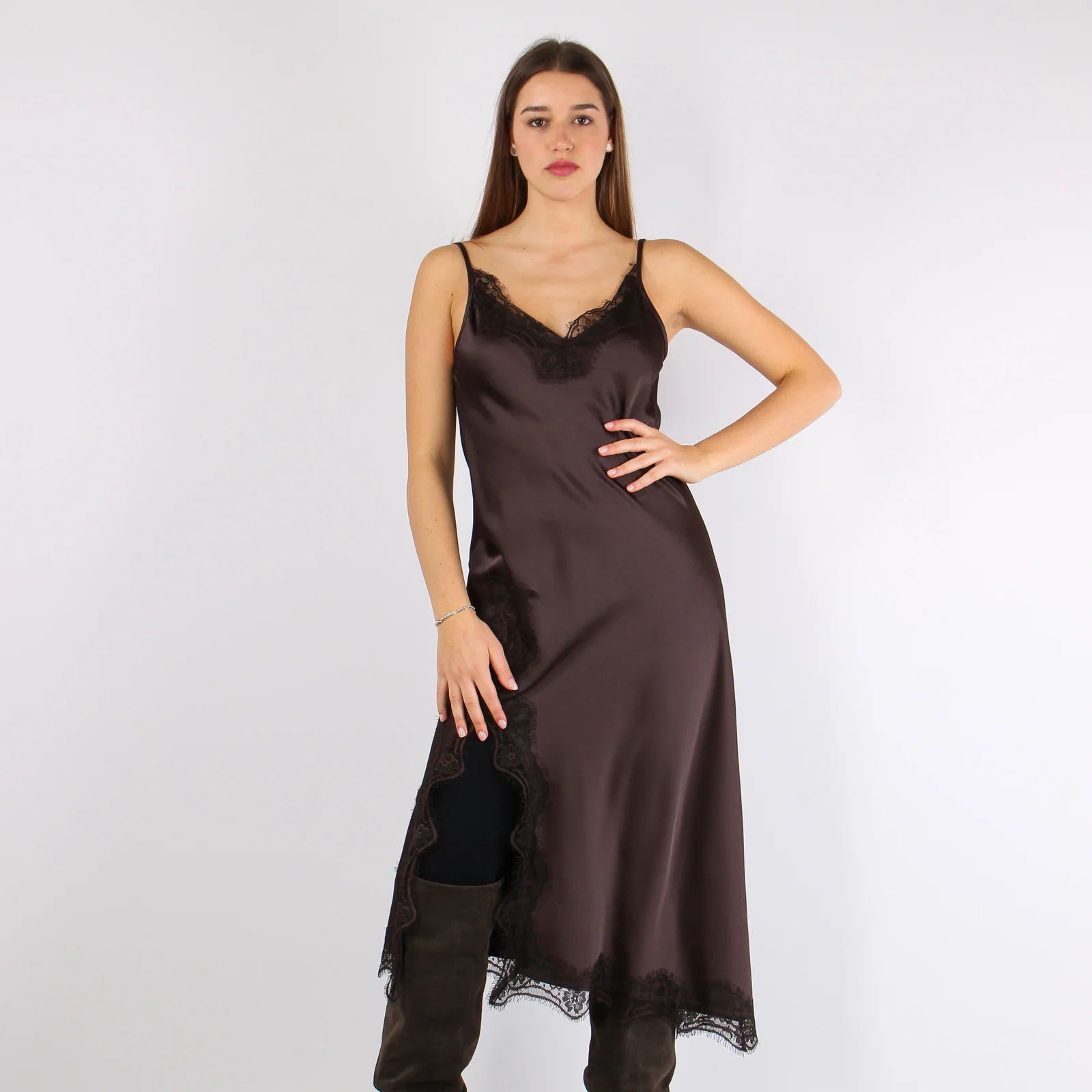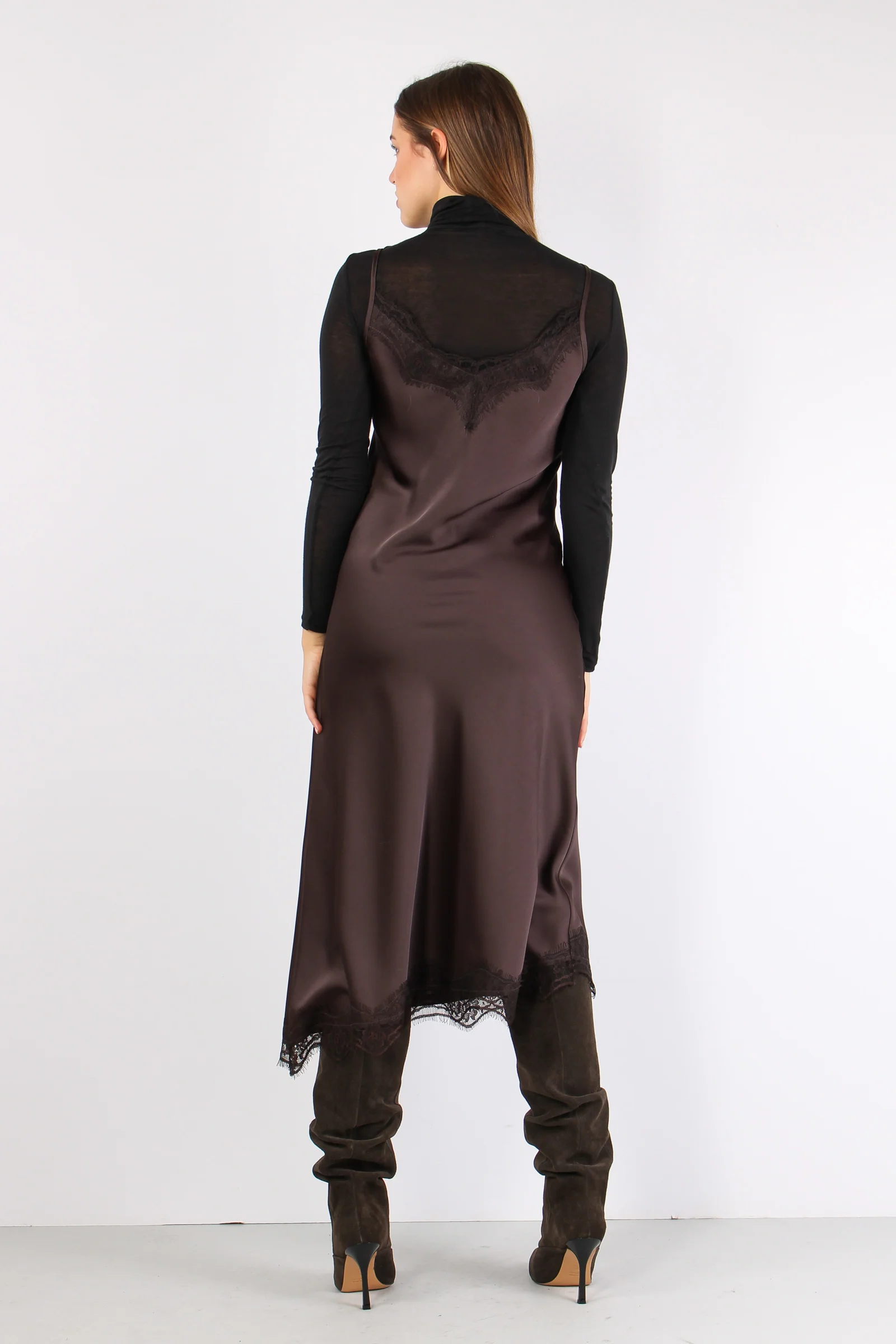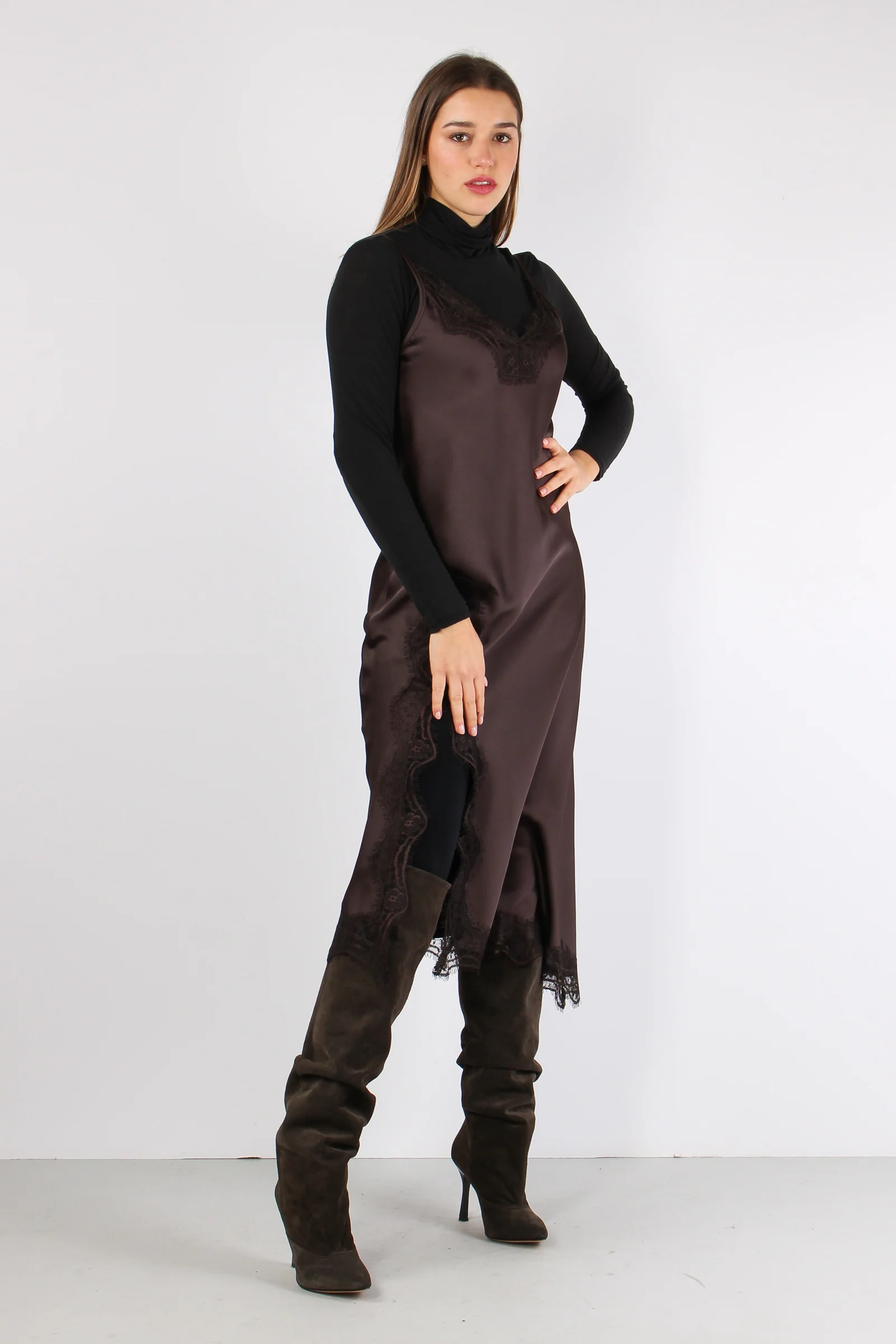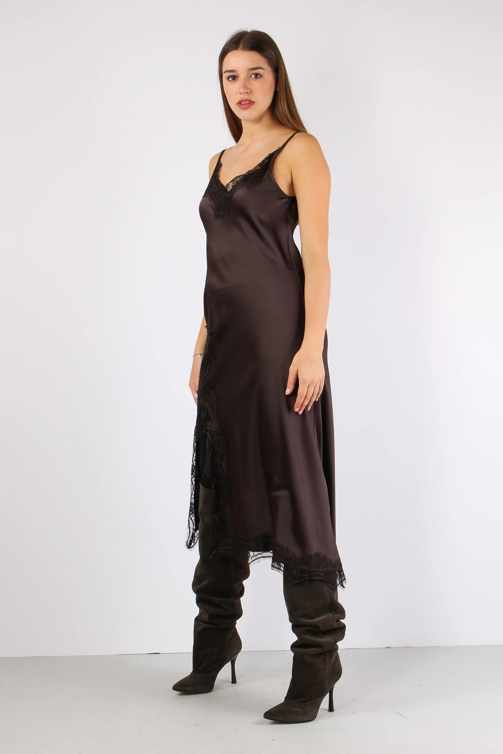 Abito Sbieco Inserti Pizzo Moro