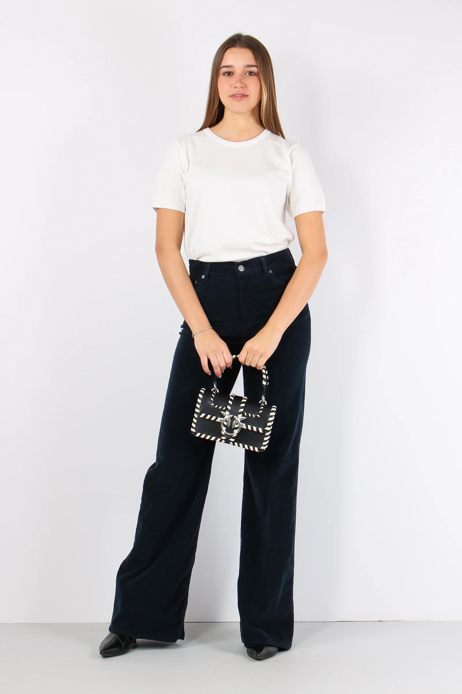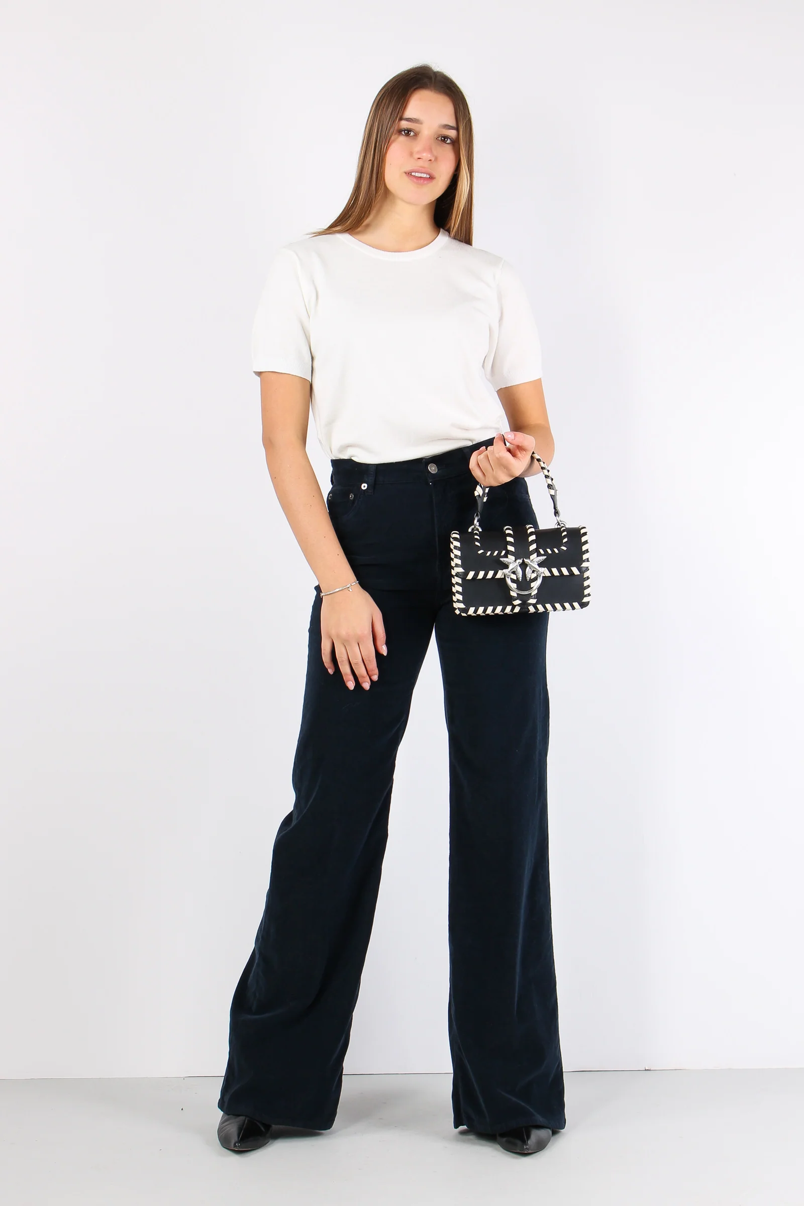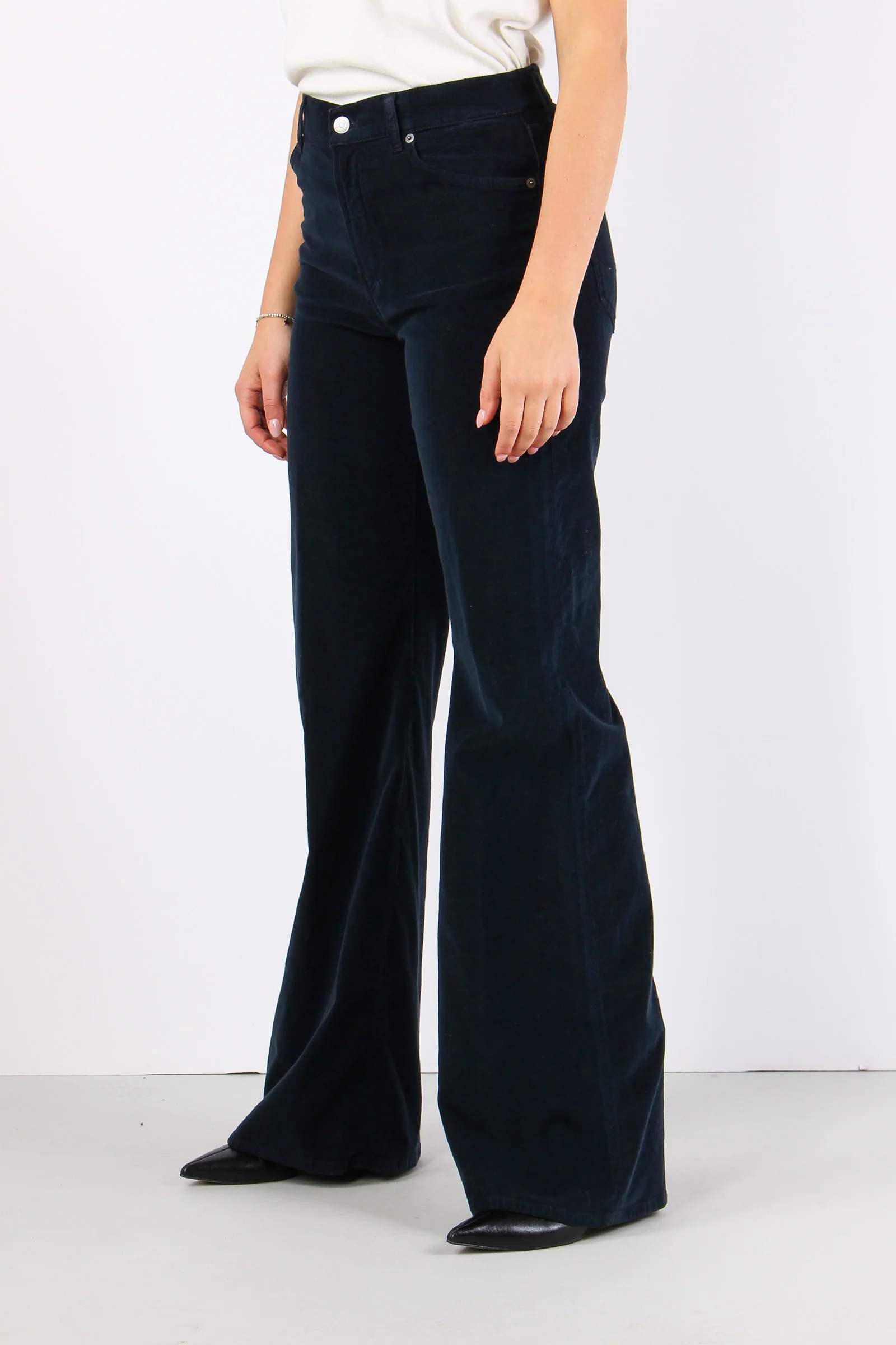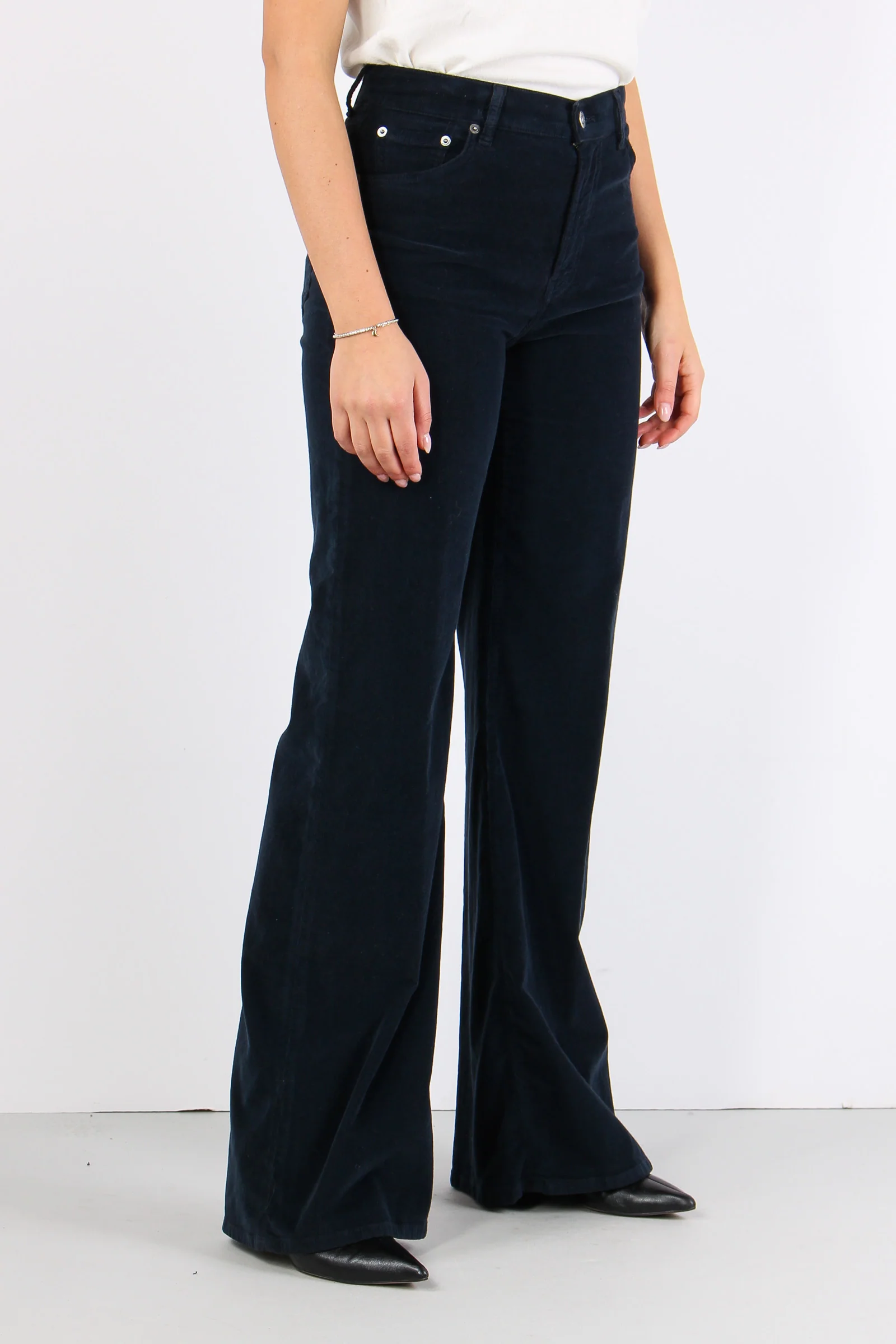 Amber Pantalone Palazzo Vellut Blu Scuro