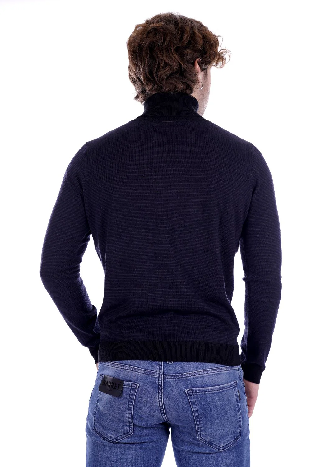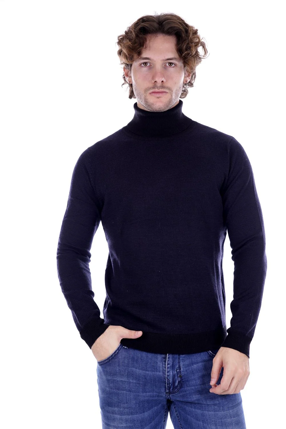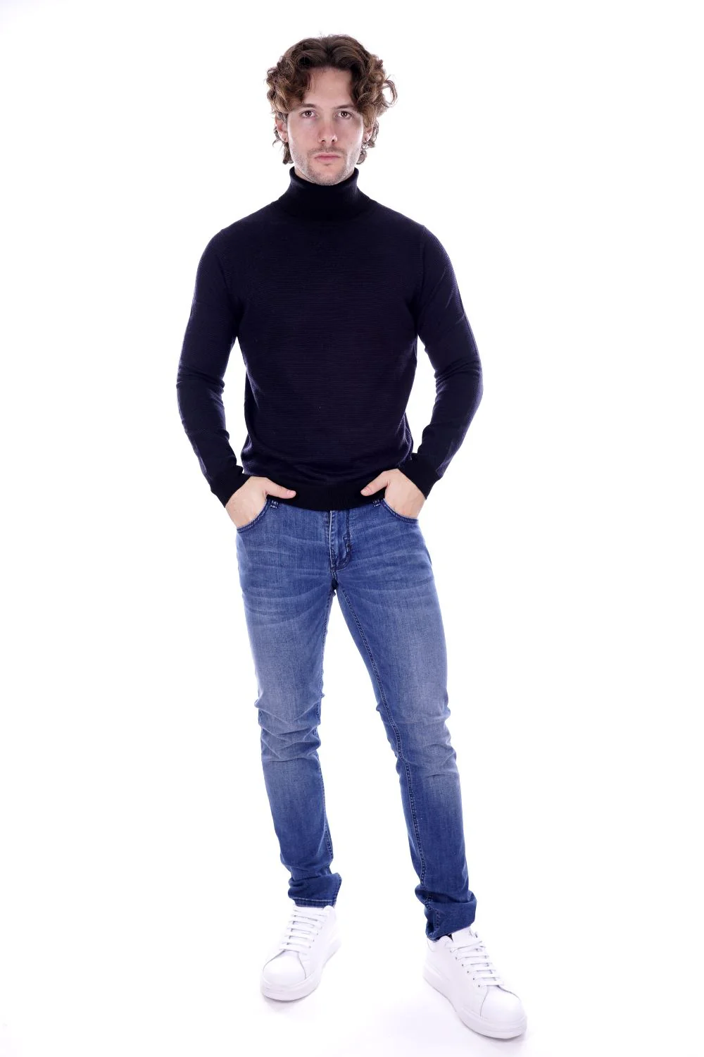 ANTONY MORATO maglione blu in misto lana a collo alto . Regular fit , in misto lana . Polsini , collo e cannolè elasticizzati con lavorazione a costine