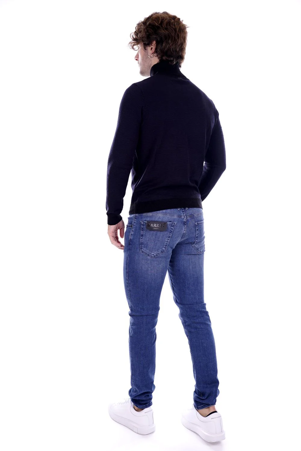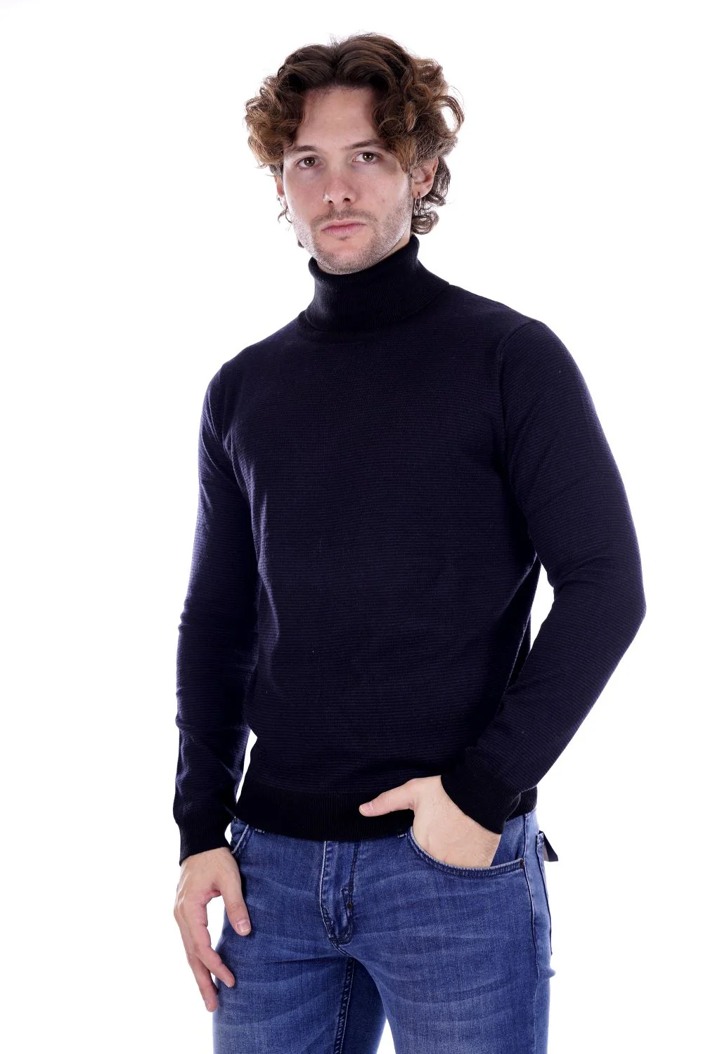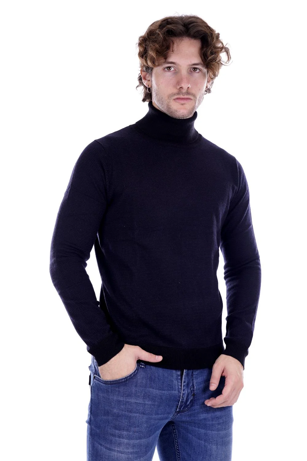 ANTONY MORATO maglione blu in misto lana a collo alto . Regular fit , in misto lana . Polsini , collo e cannolè elasticizzati con lavorazione a costine