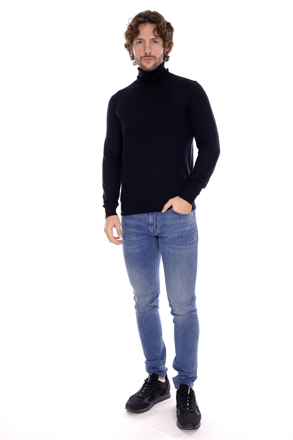 ANTONY MORATO Maglia dolcevita blu da uomo , girocollo . Con collo alto