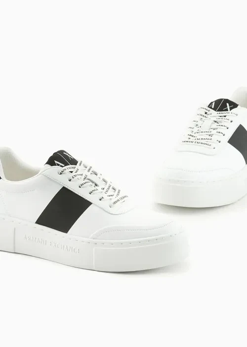 ARMANI EXCHANGE Scarpa sportiva bianca da donna in pelle sintetica . Dettagli: