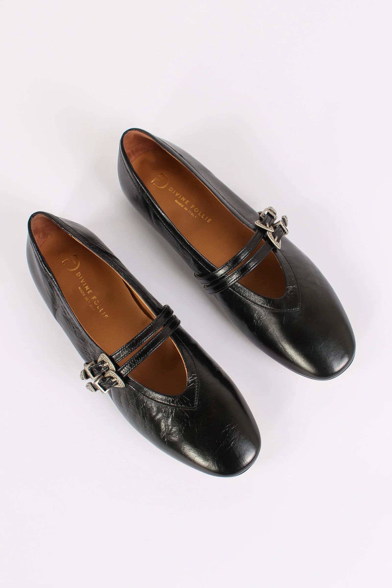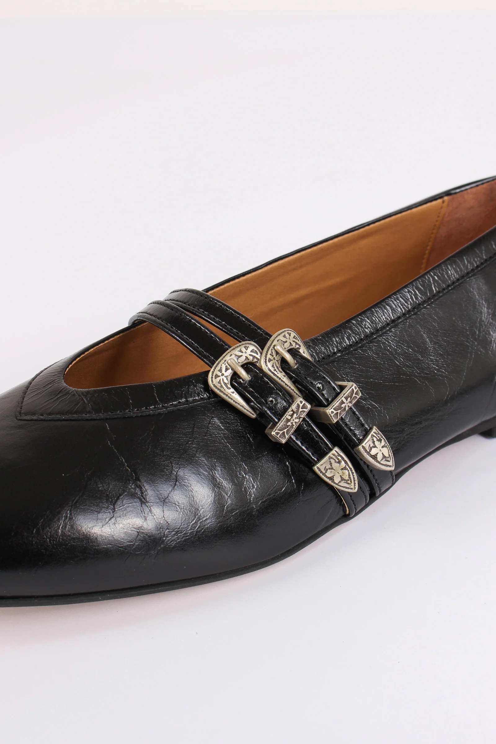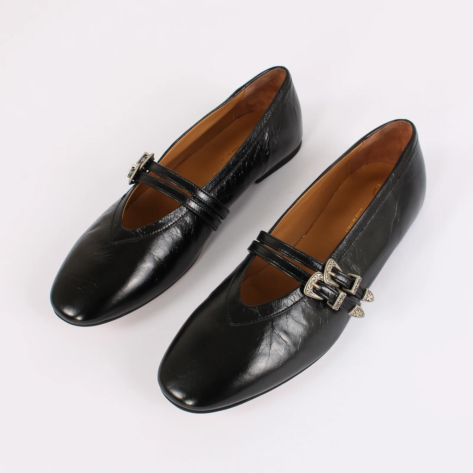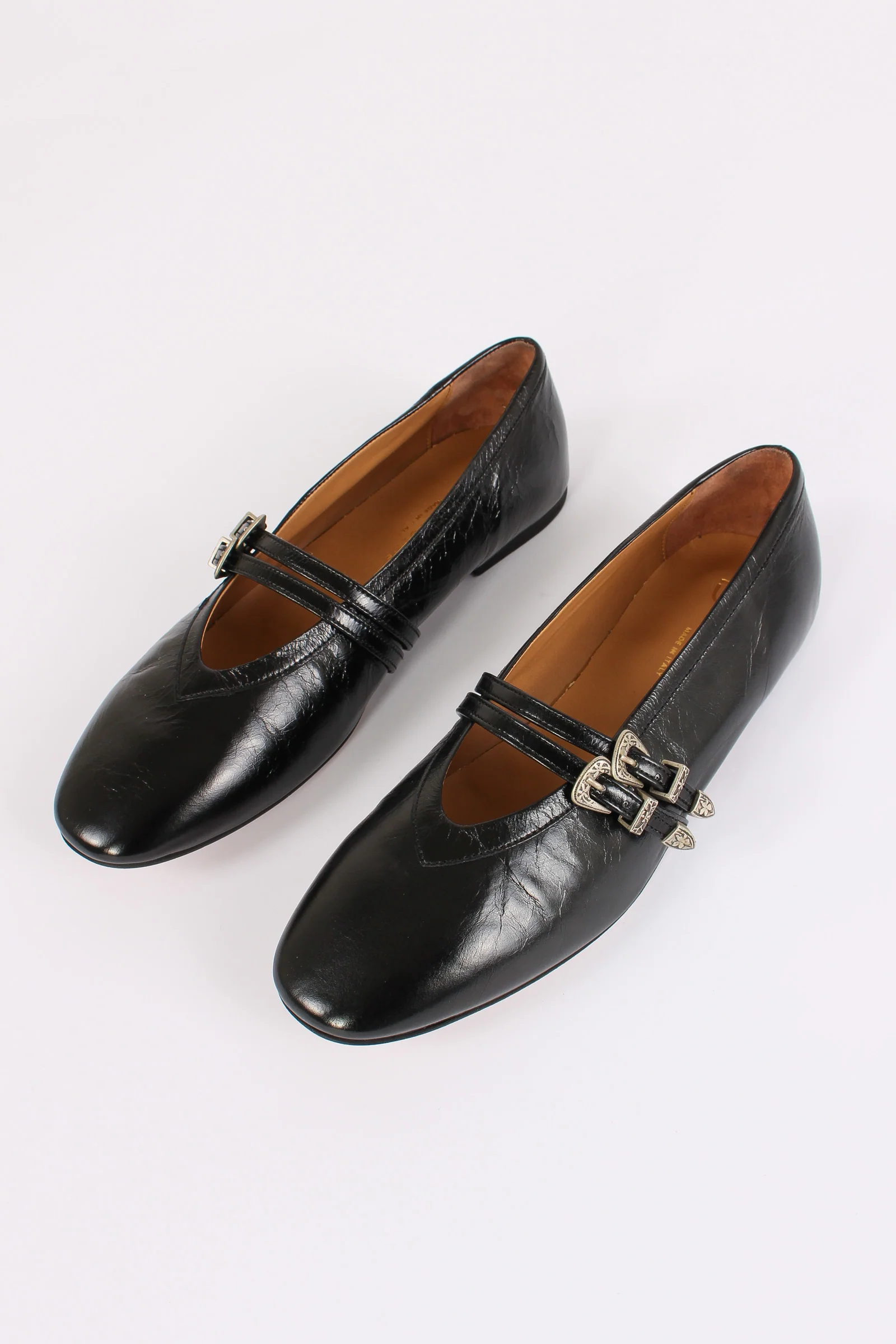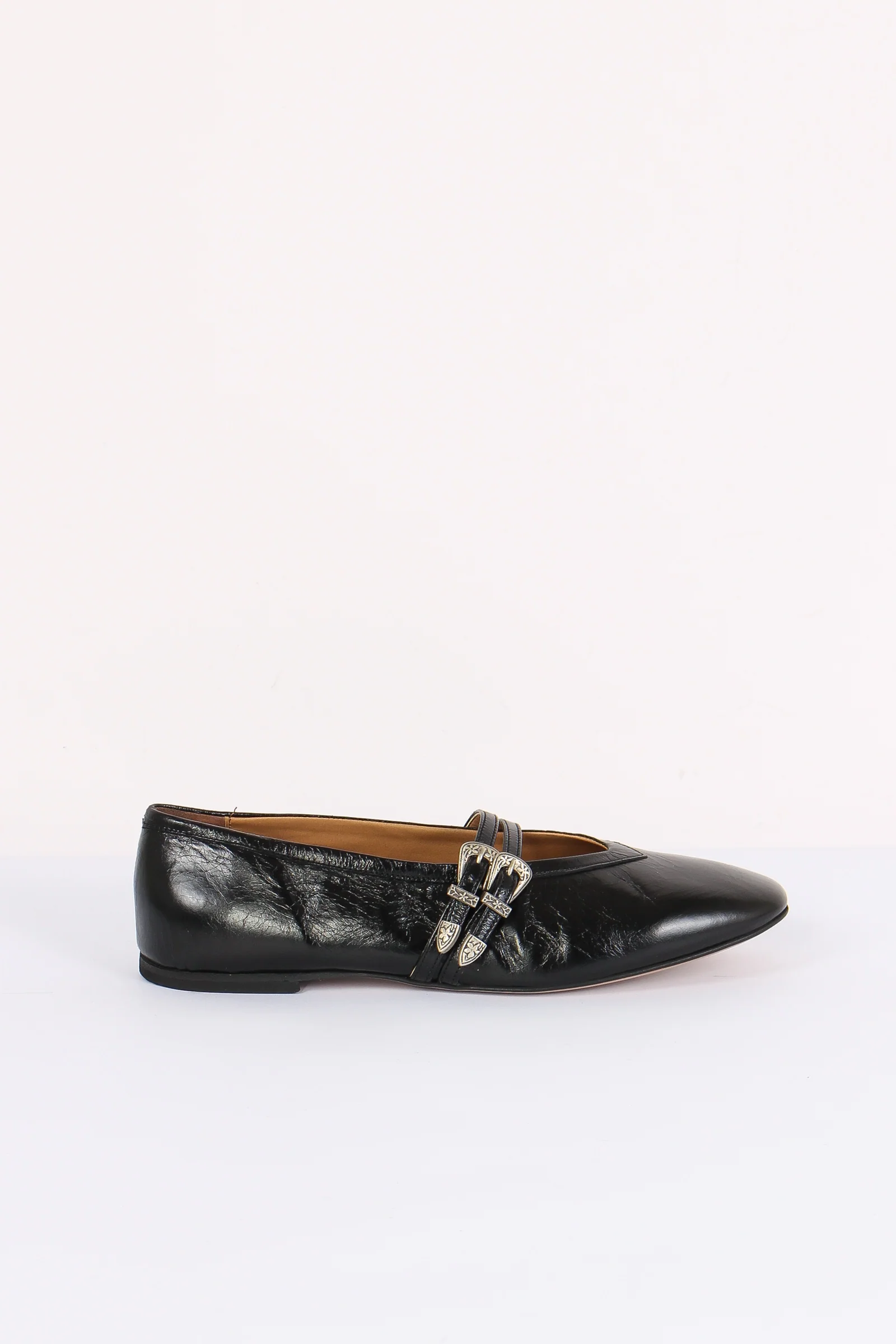 Ballerina Pelle Doppia Fibbia Nero