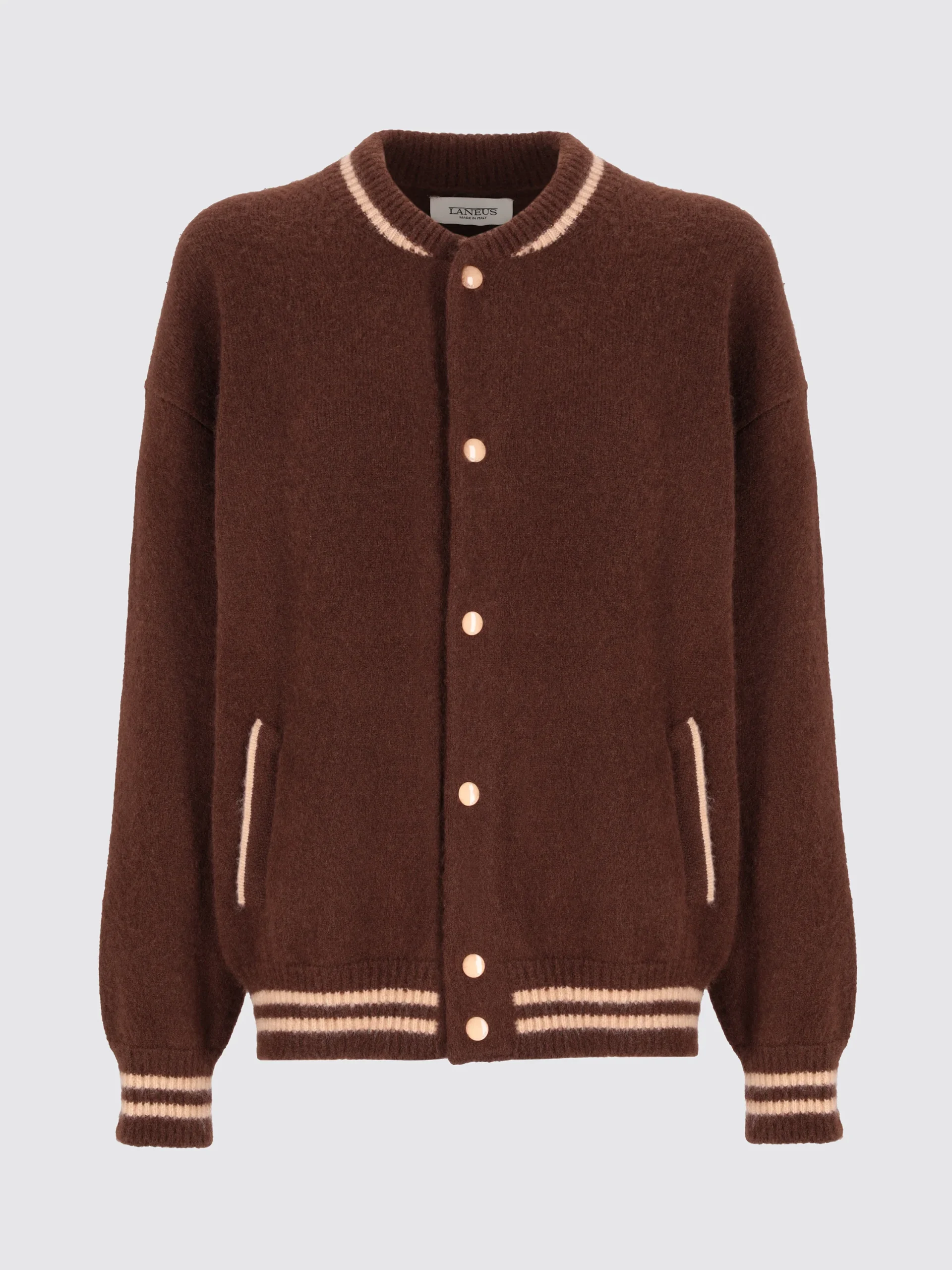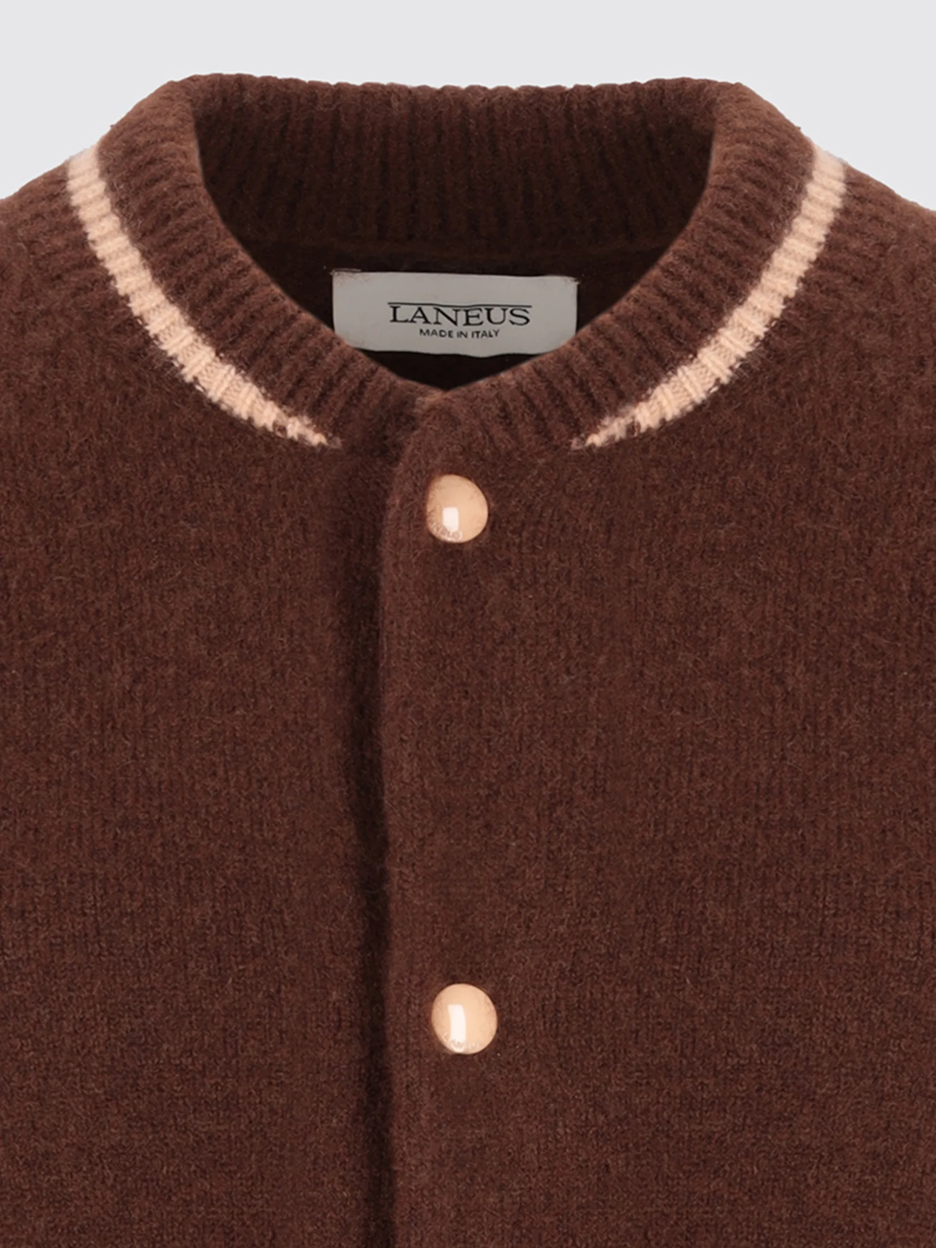 Questo bomber di Laneus rappresenta un capo iconico, lavorato in maglia rasata, realizzato in un pregiato cashmere. Ispirato allo stile college, presenta una vestibilitร regular e un design pulito e raffinato. Le tasche a letto aggiungono funzionalitร e continuitร al look, mentre la chiusura frontale con bottoni snap in tono completa il design in modo pratico e discreto. Arricchito da dettagli a coste in contrasto chiaro su colletto, polsini e fondo. Made in Italy.