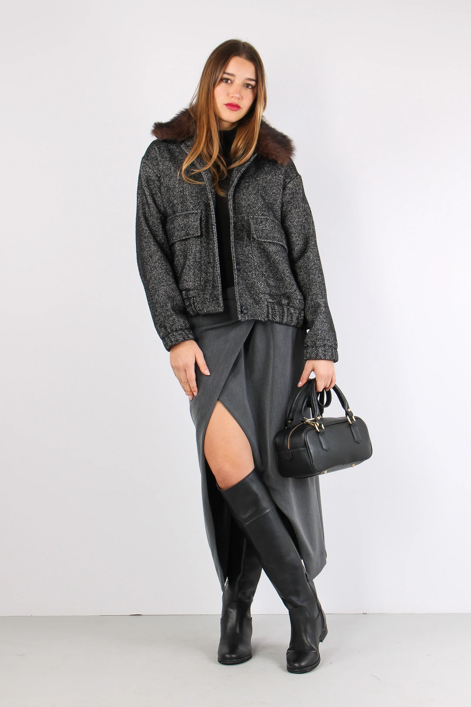 Bomber Resca Ecopelliccia Nero