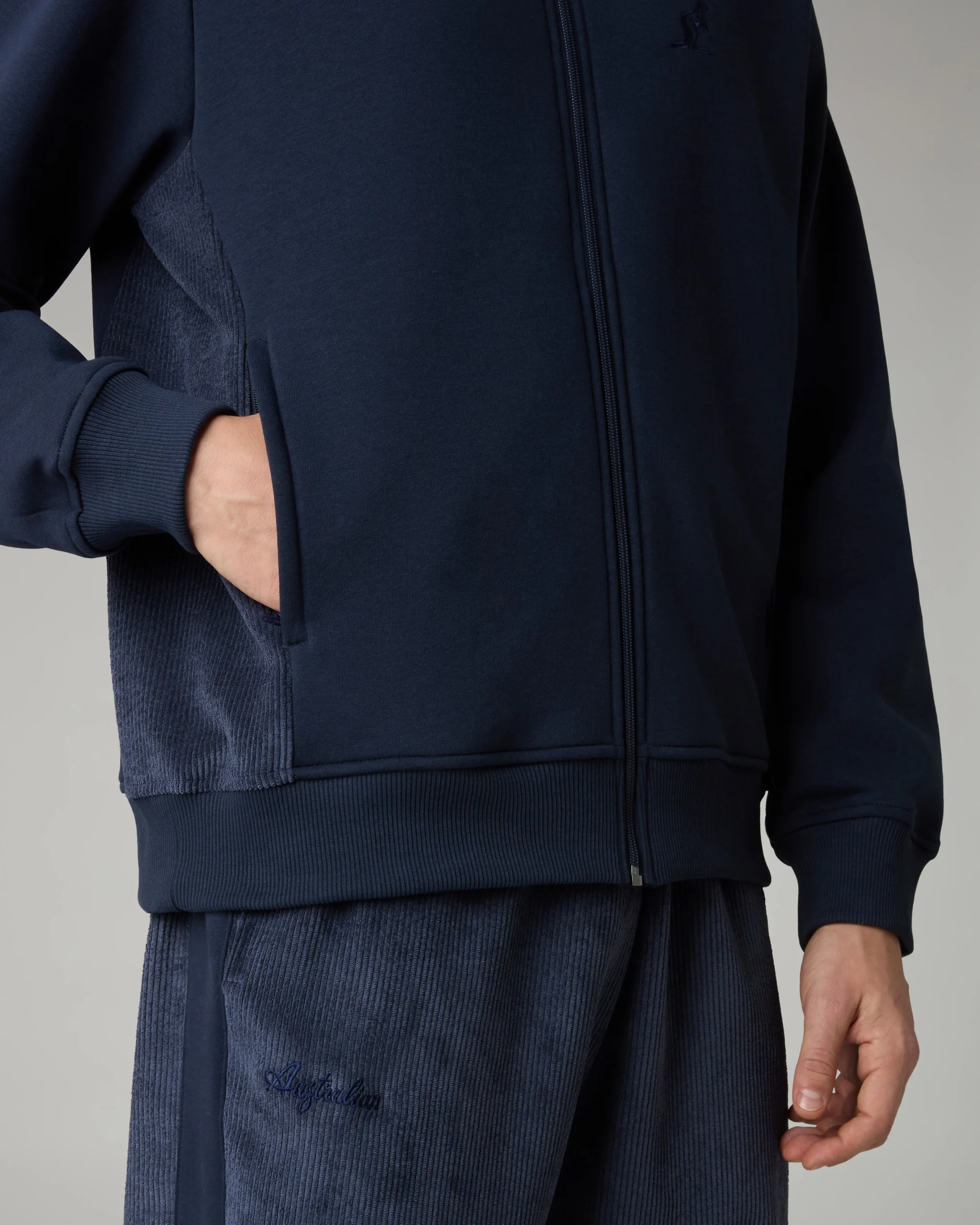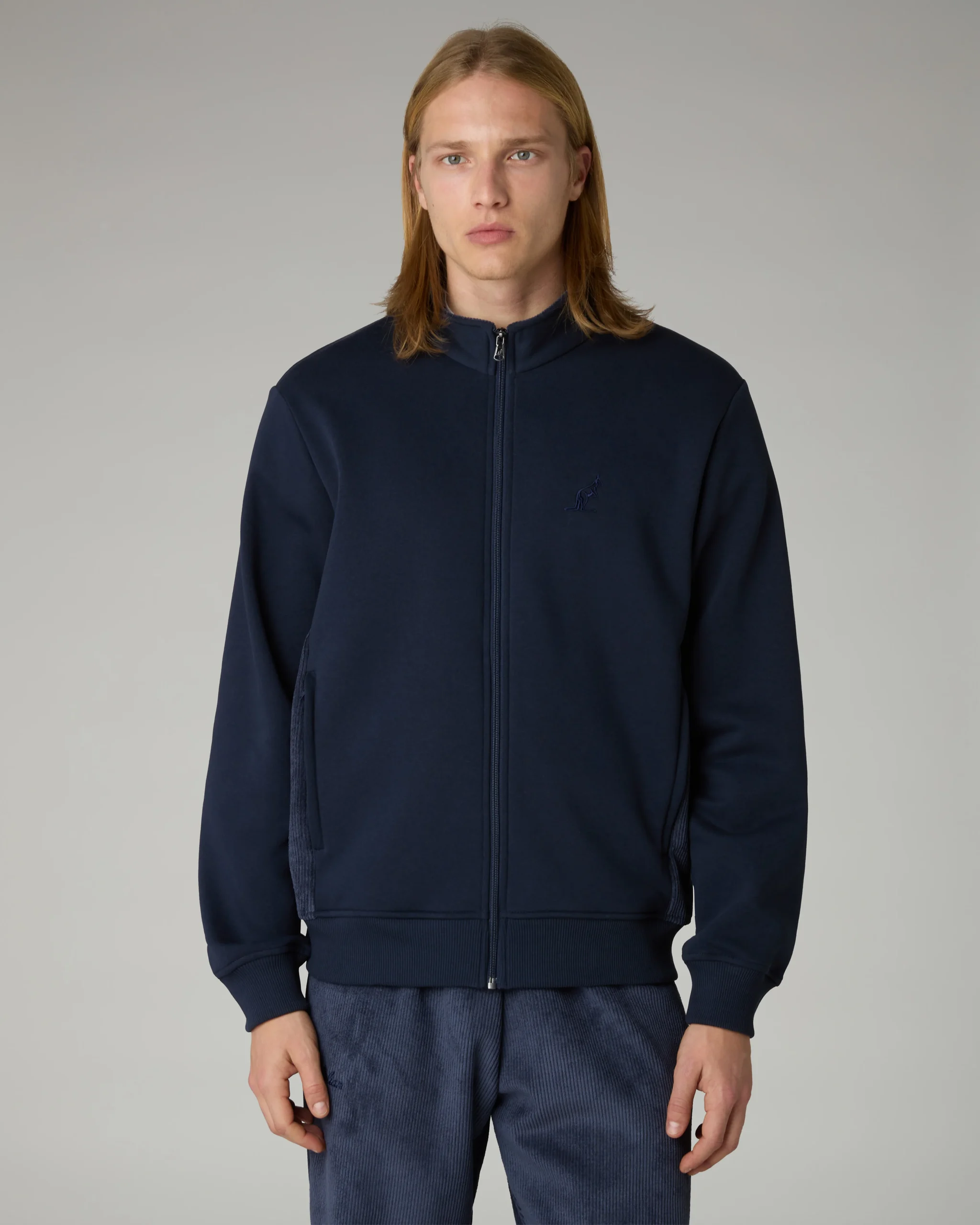 – Giacca in felpa invernale e corduroy– Inserti in corduroy nei fianchi– Full zip frontale– Tasche con zip– Bordo e polsi in costina elasticizzata– Logo ricamato– Made in Italy
