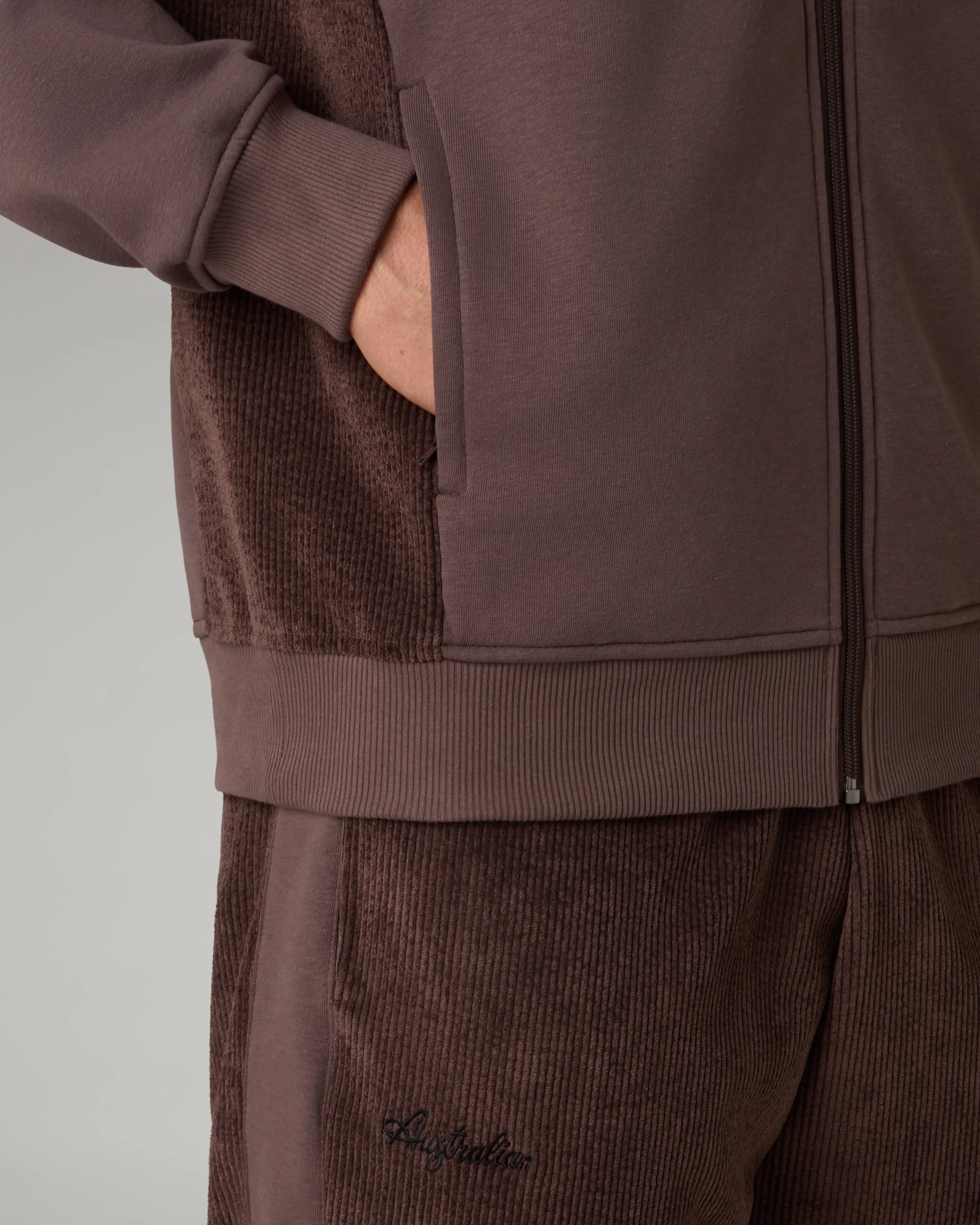 – Giacca in felpa invernale e corduroy– Inserti in corduroy nei fianchi– Full zip frontale– Tasche con zip– Bordo e polsi in costina elasticizzata– Logo ricamato– Made in Italy