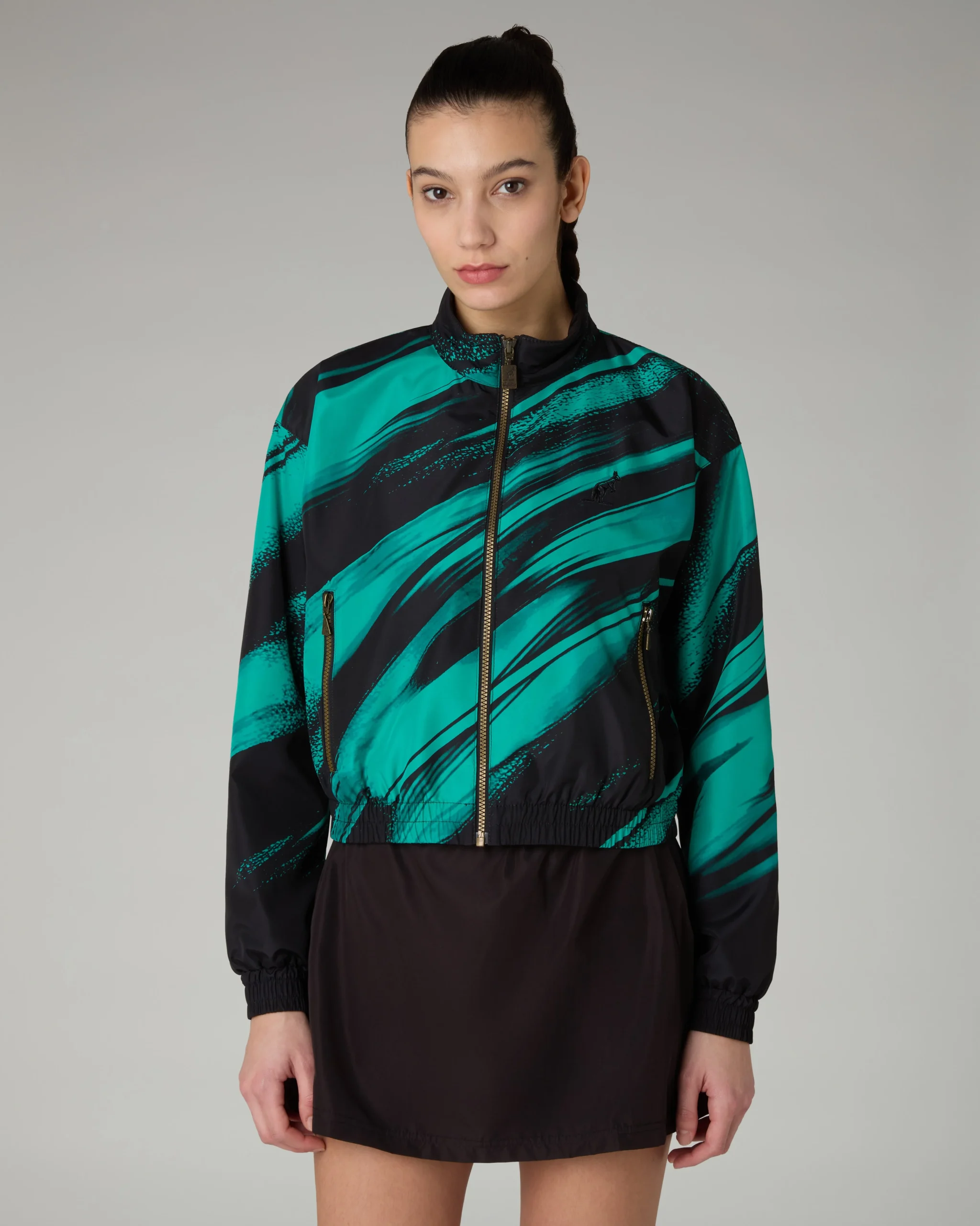 – Giacca in tessuto Smash superleggero – Foderata in tessuto Mesh– Stampa piazzata sublimatica– Interno collo e paramontura in tinta unita– Taglio cropped– Bordo e polsi con elastico– Zip frontale e tasche in contrasto– Logo ricamato– Made in Italy