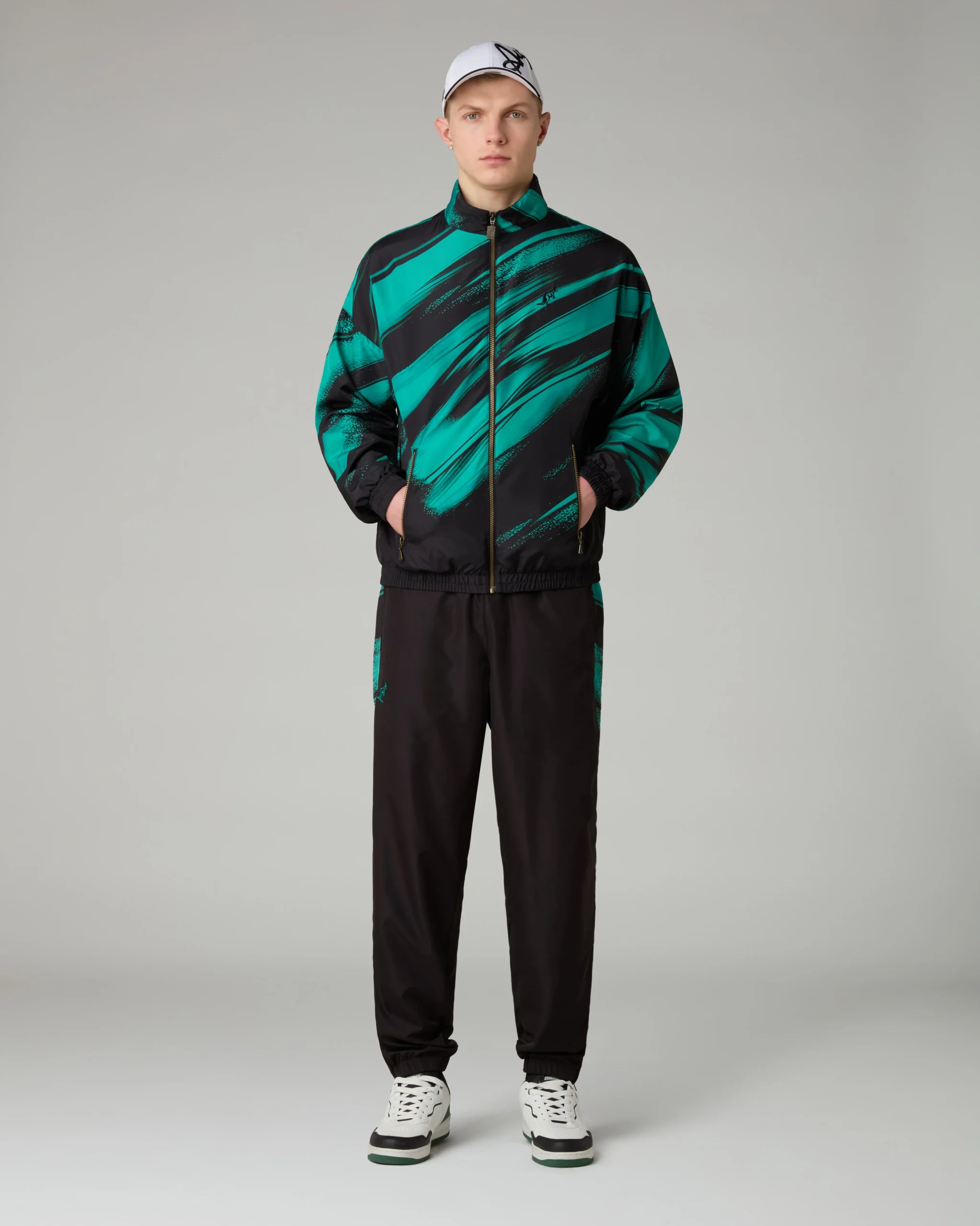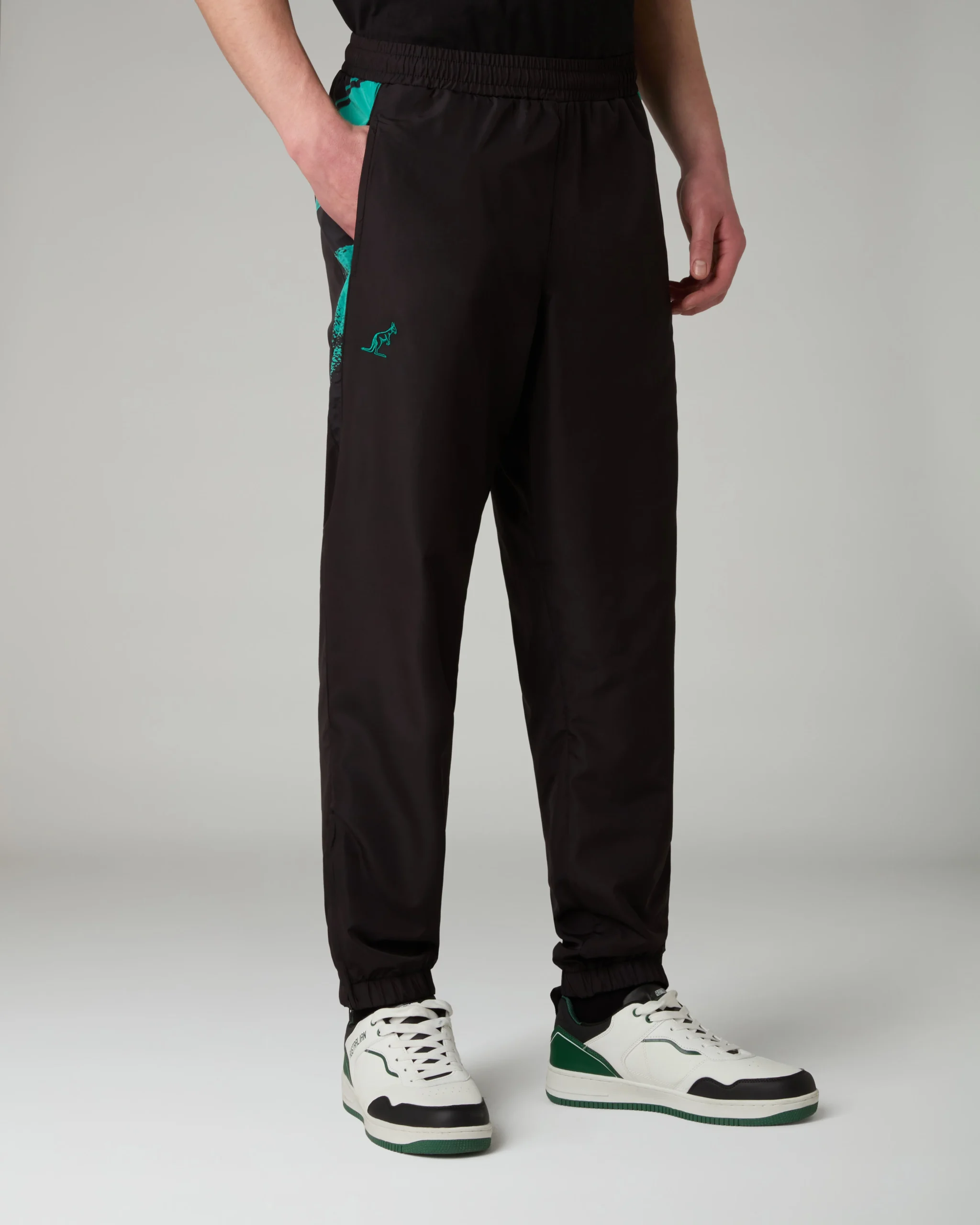 – Pantalone in tessuto tecnico Smash– Foderato in Mesh– Inserti a “V” laterali in Smash stampato– Elastico in vita con coulisse regolabile– Tasche nel fianco– Fondo elasticizzato con zip– Logo ricamato– Made in Italy