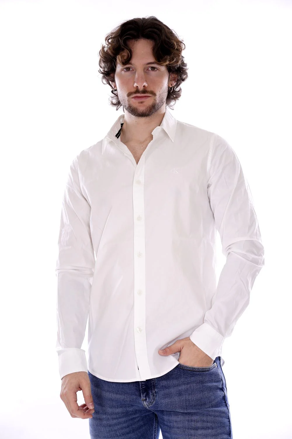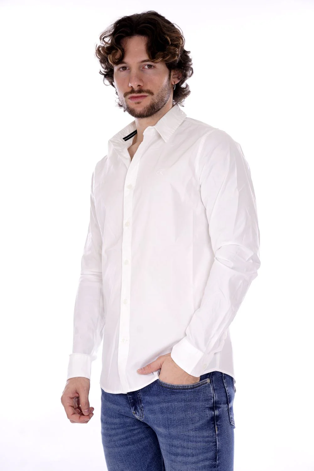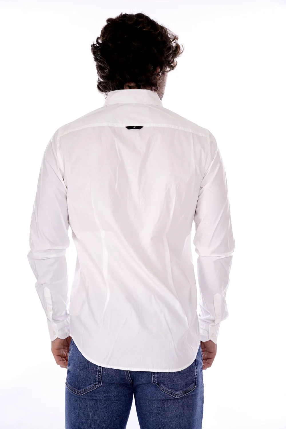 CALVIN KLEIN Camicia bianca da uomo in cotone . Modello con colletto classico , chiusura con bottoni e bottoni sui polsini . Logo CK cucito sul petto