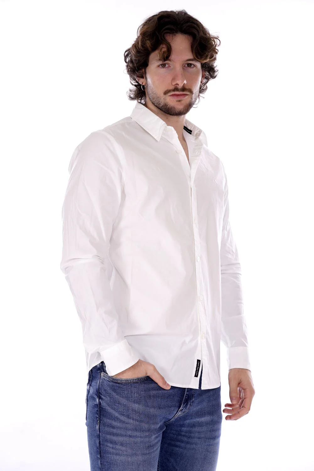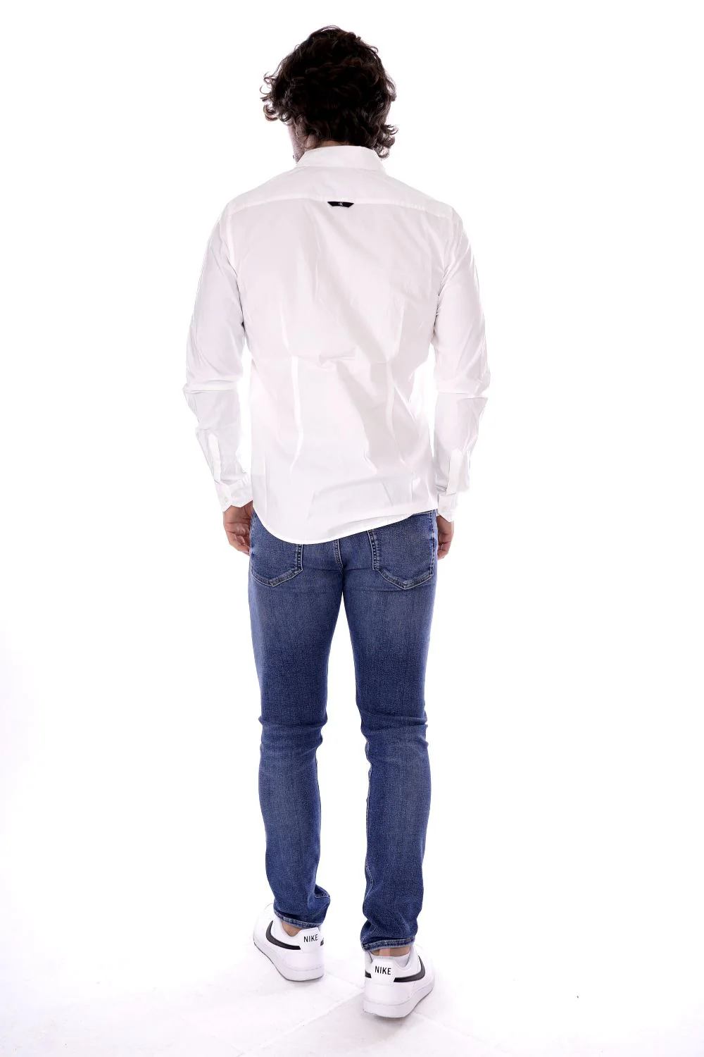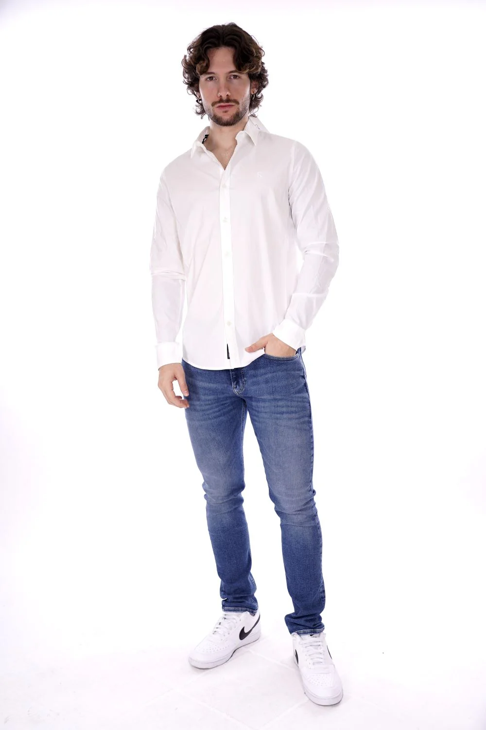 CALVIN KLEIN Camicia bianca da uomo in cotone . Modello con colletto classico , chiusura con bottoni e bottoni sui polsini . Logo CK cucito sul petto
