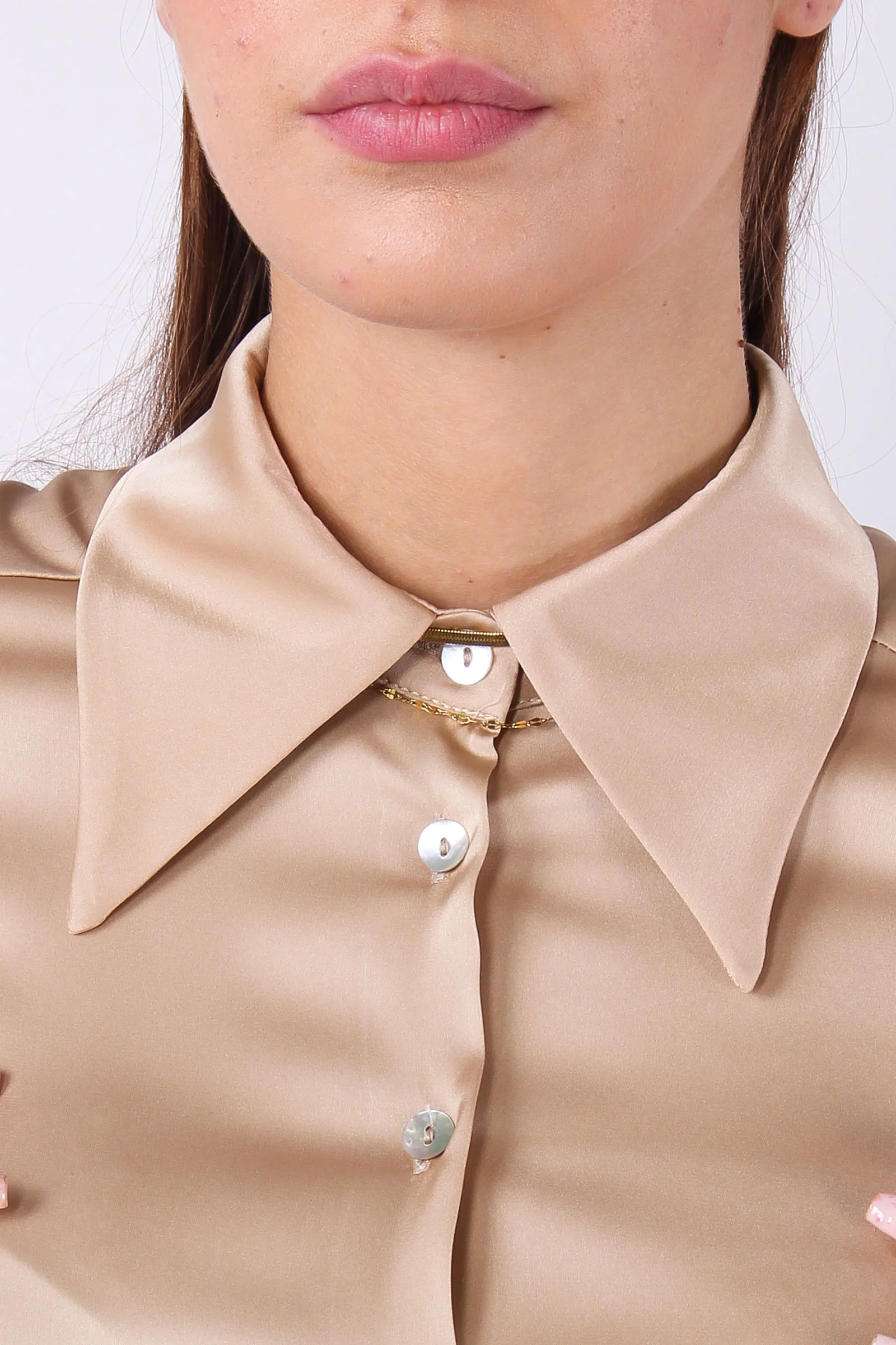 Camicia Effetto Raso Colletto Cammello
