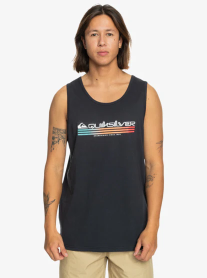 QUIKSILVER T-shirt smanicata a girocollo blu da uomo in cotone . Vestibilità regolare . Logo stampato sul petto Dettagli: