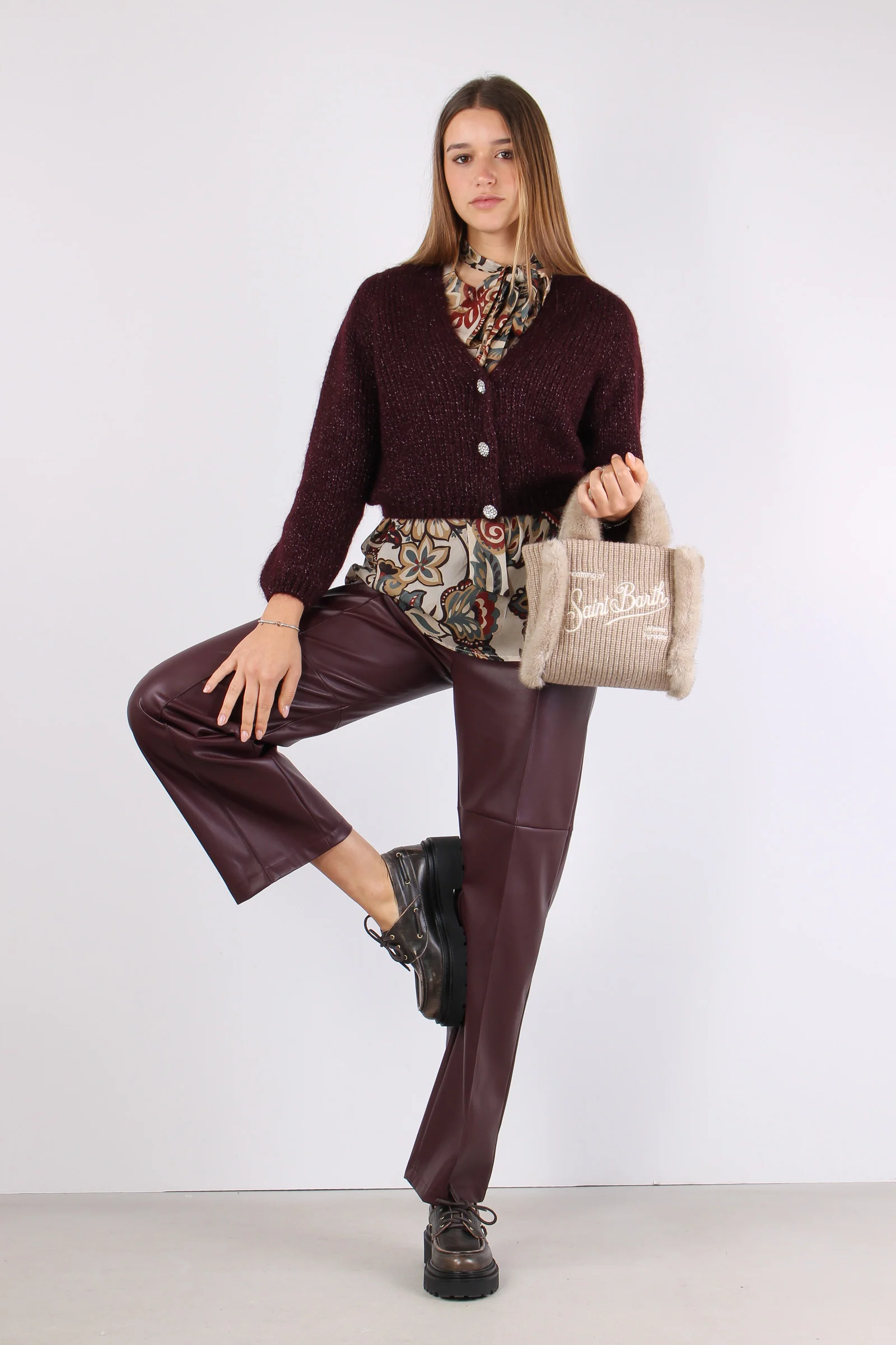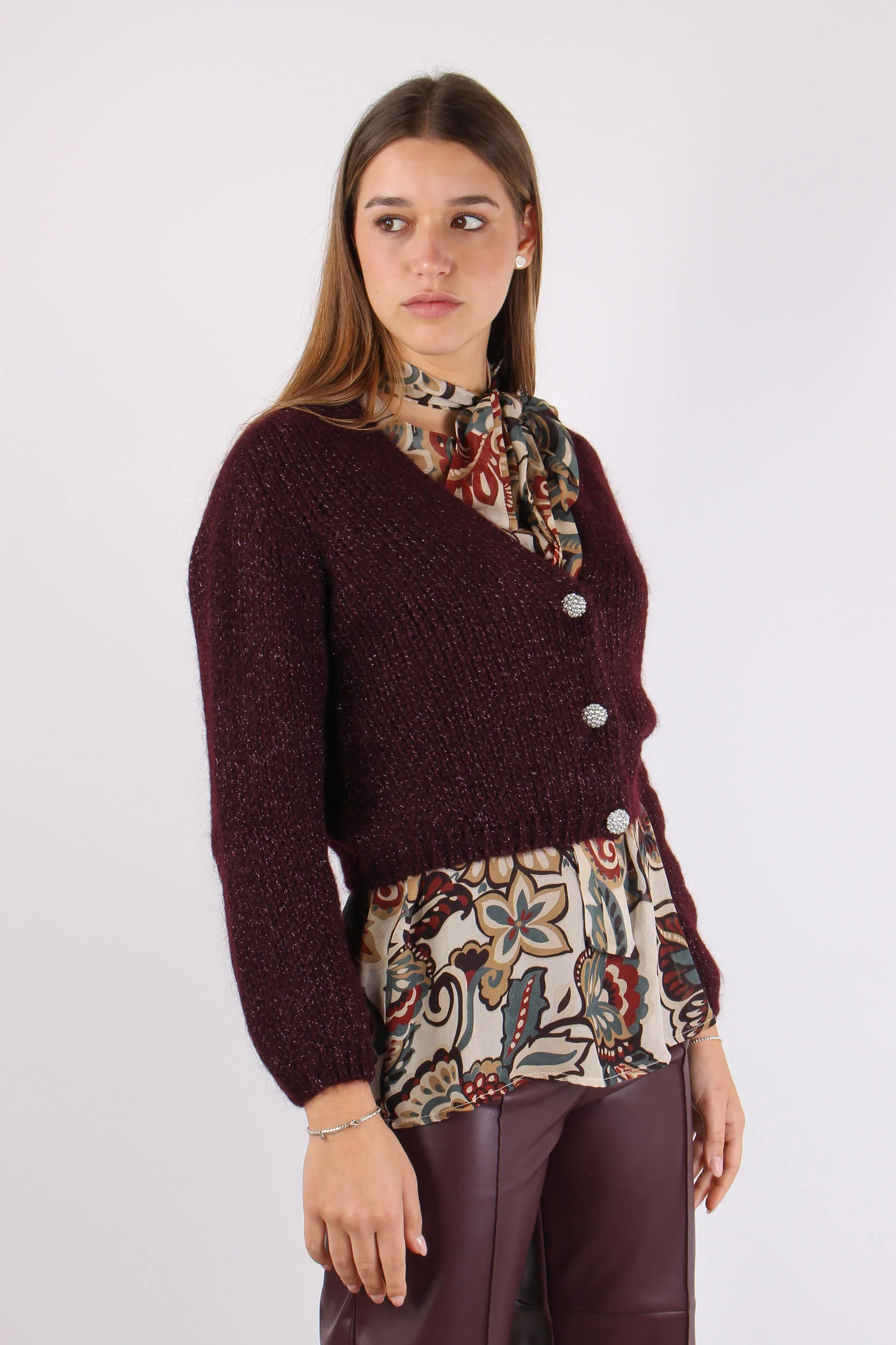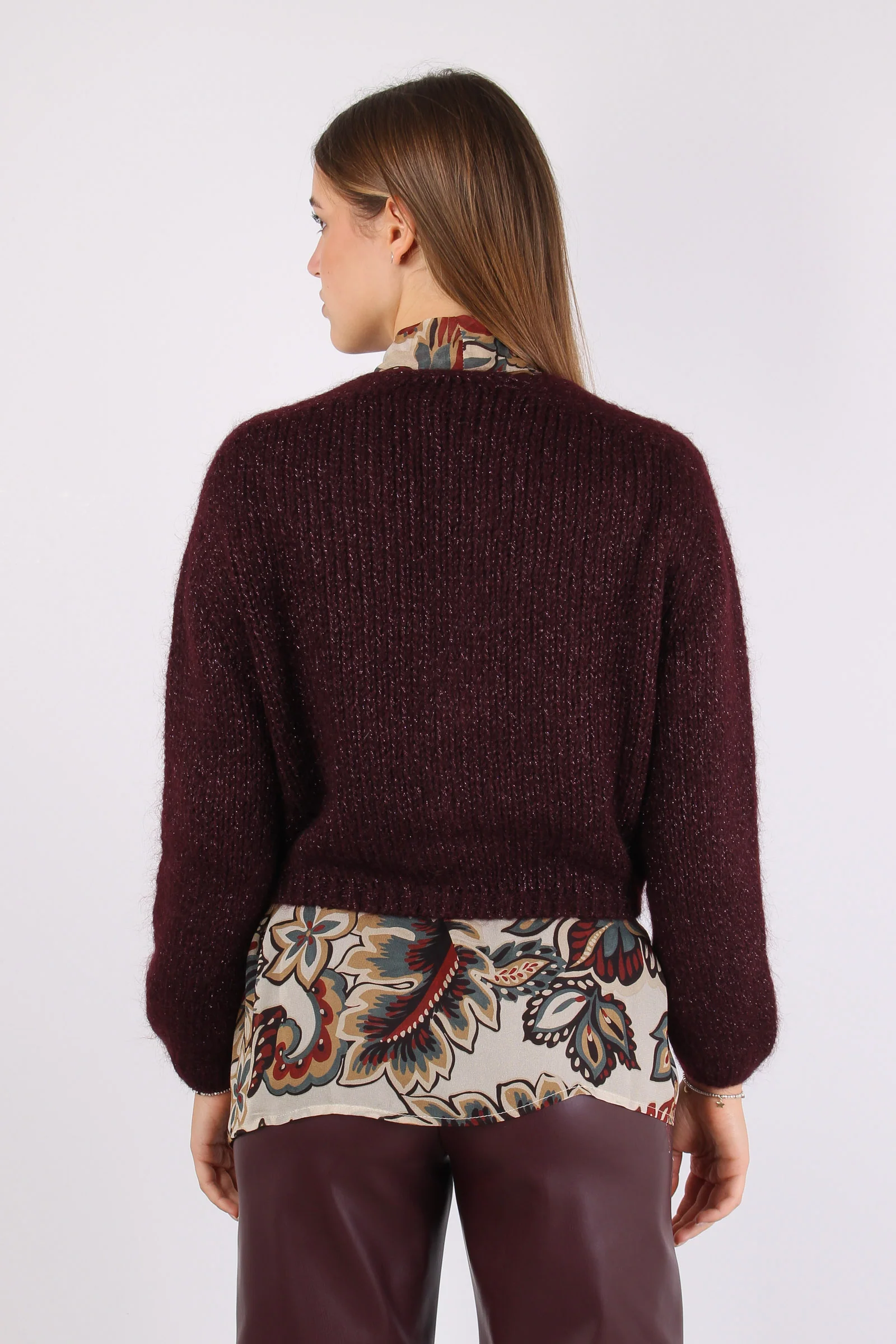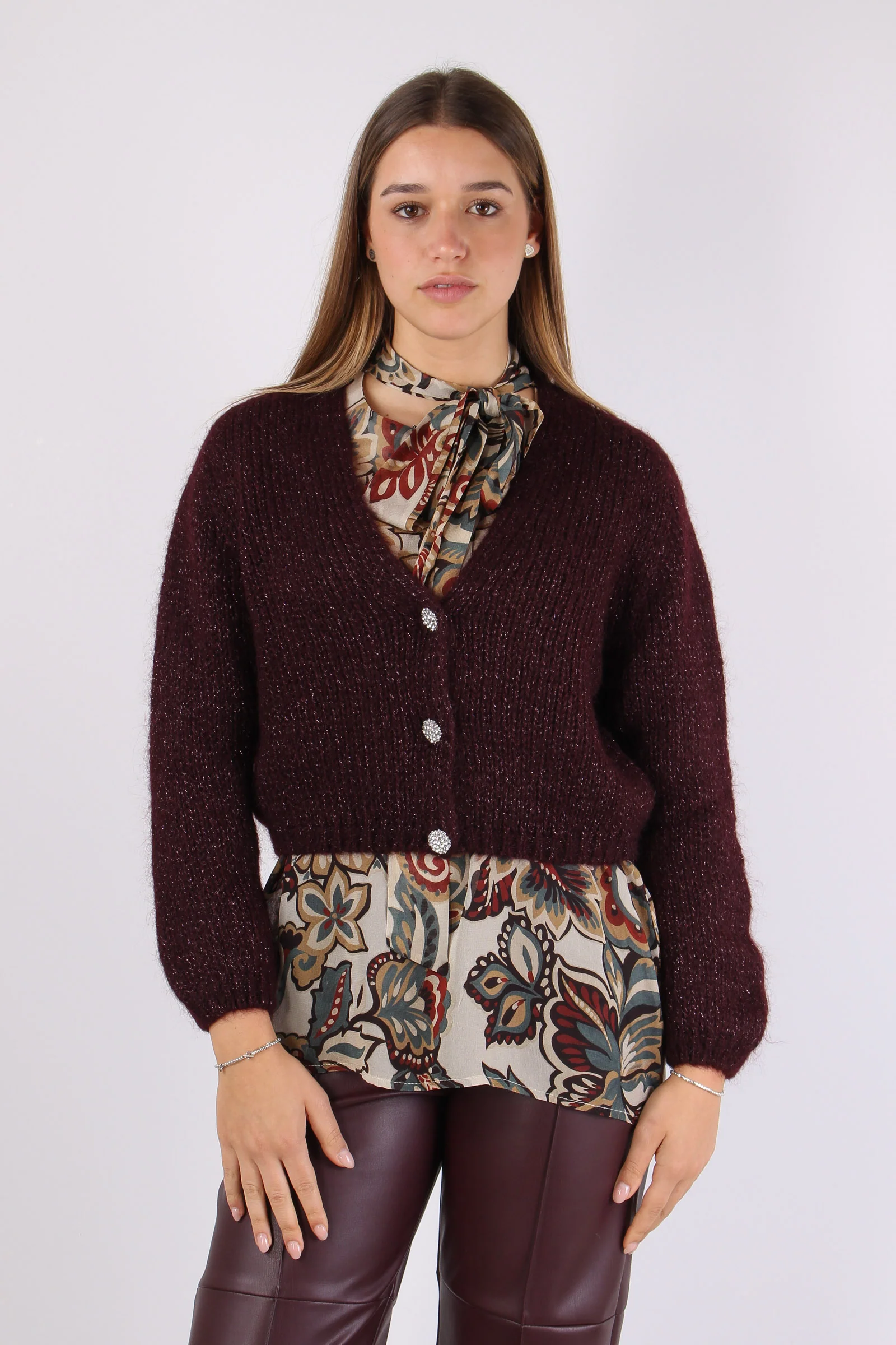 Cardigan Mohair Filo Lurex Vino