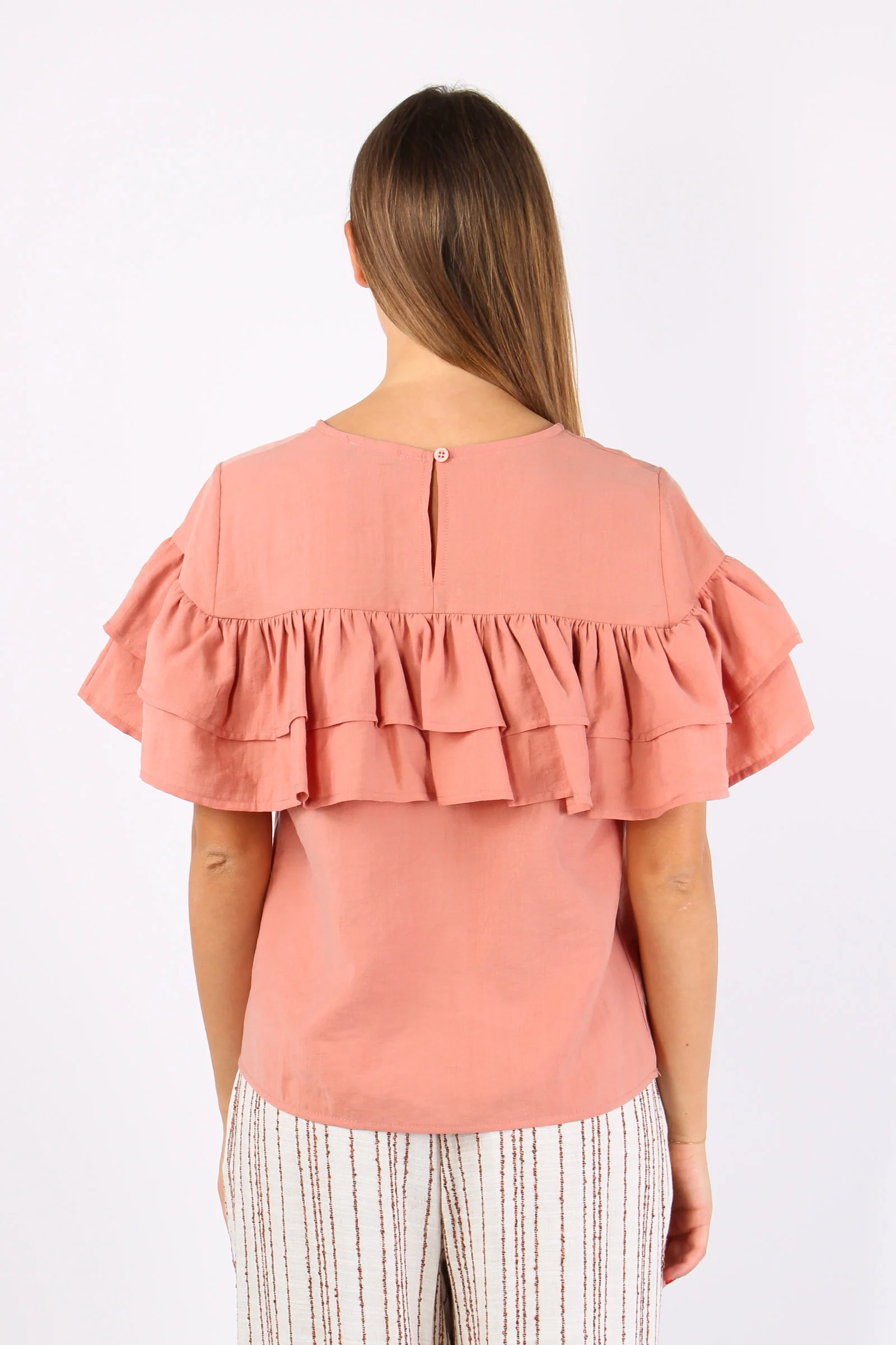 Casacca dalla vestibilità regolare caratterizzata da una doppia balza sul davanti. La chiusura sul retro con bottoncino ed asola elastica aggiunge un dettaglio pratico. Si adatta a diverse occasioni dai loook più formali a quelli più casual.