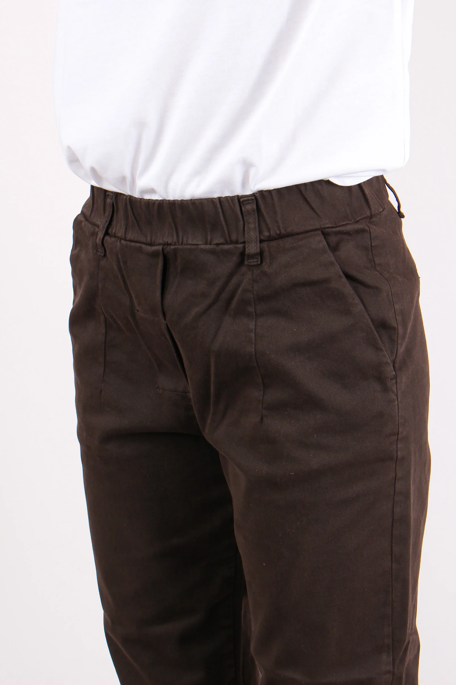 Pantalone chino con elastico in vita e passanti per cintura. Un pantalone basic ottimo per tutti gli outfit. Composizione articolo: 97% cotone 3% elastan La modella è alta 1 75 e indossa una tg. S.