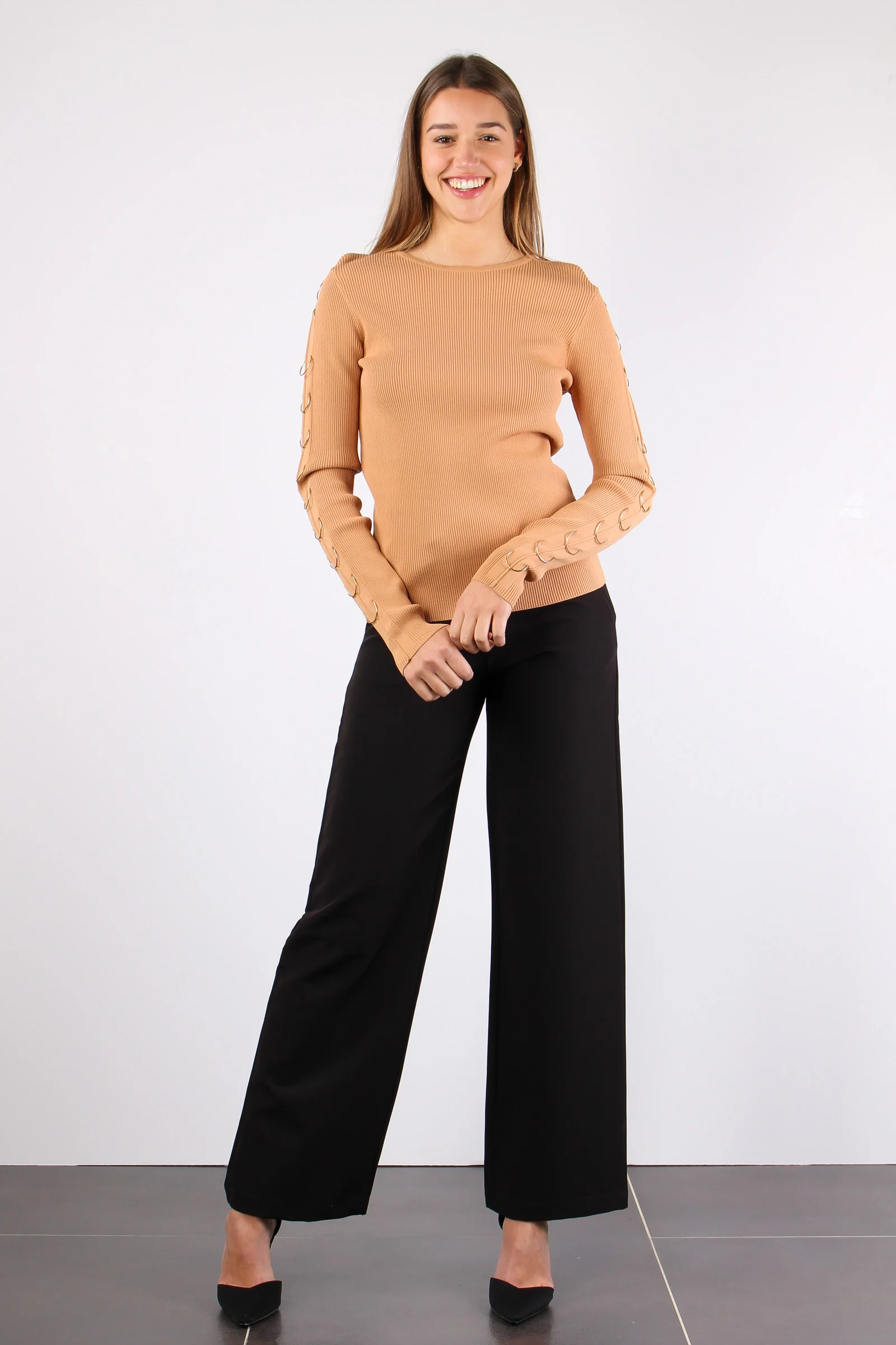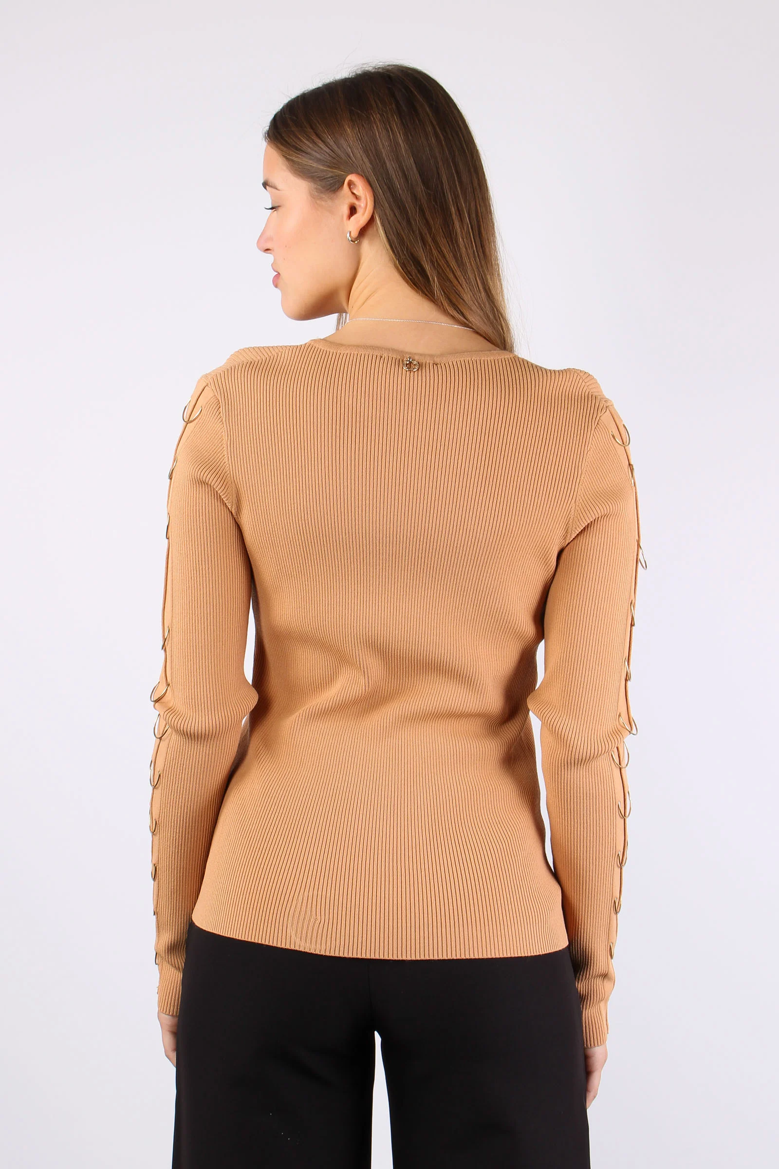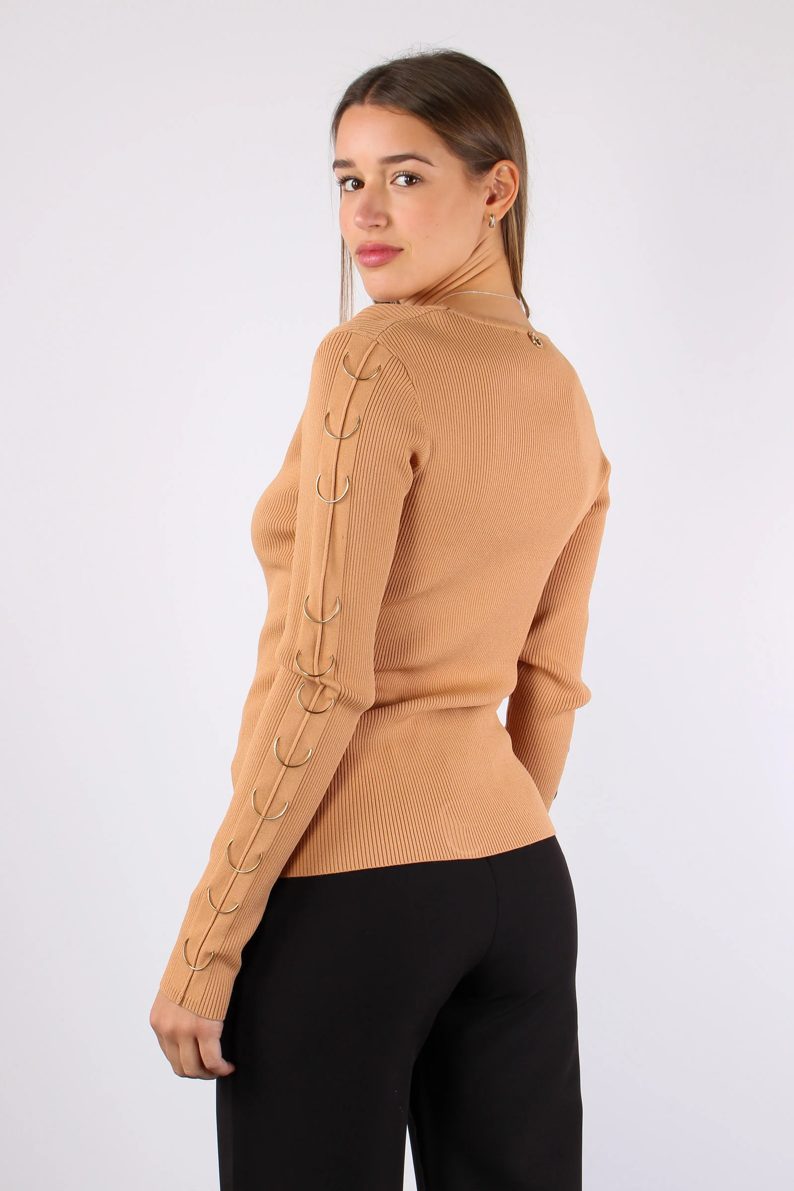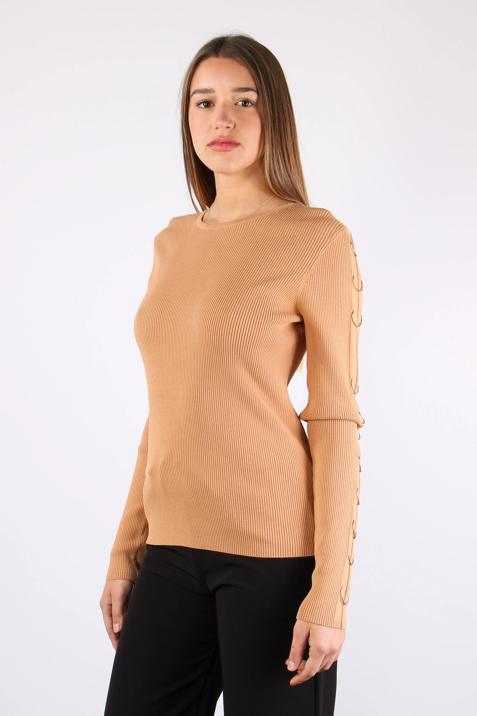 Maniche: lunghe Dettaglio: Anelli che passione! La maglia CIDOMY ti colpirà per la linea pulita a costine dove spicca predominante il dettaglio degli anelli sulle maniche. Vestibilità: regolare la modella è alta 170 cm e indossa una taglia S