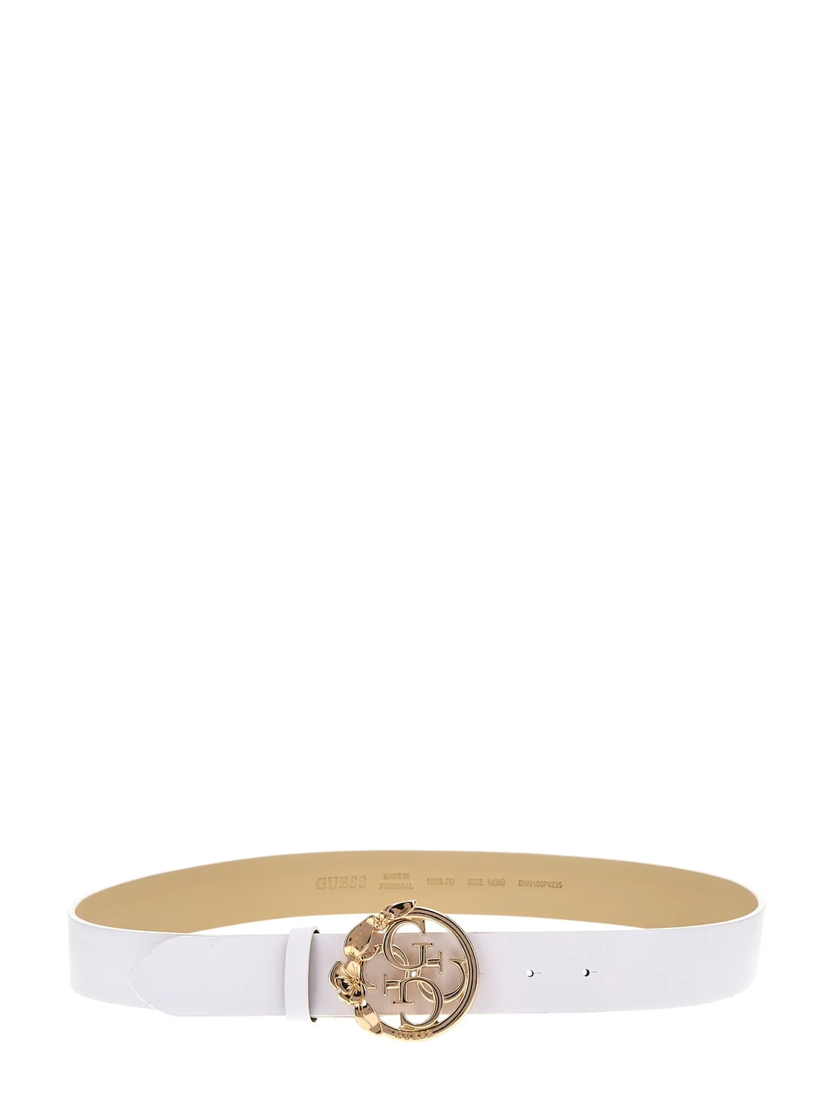 GUESS Cintura da donna bianca in pelle sintetica , regolabile , fibbia metallica dorata con logo ed inserto floreale .