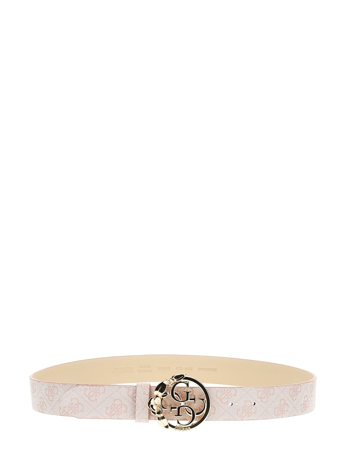 GUESS Cintura da donna rosa cipria logata in pelle sintetica , regolabile , fibbia metallica dorata con logo ed inserto floreale .