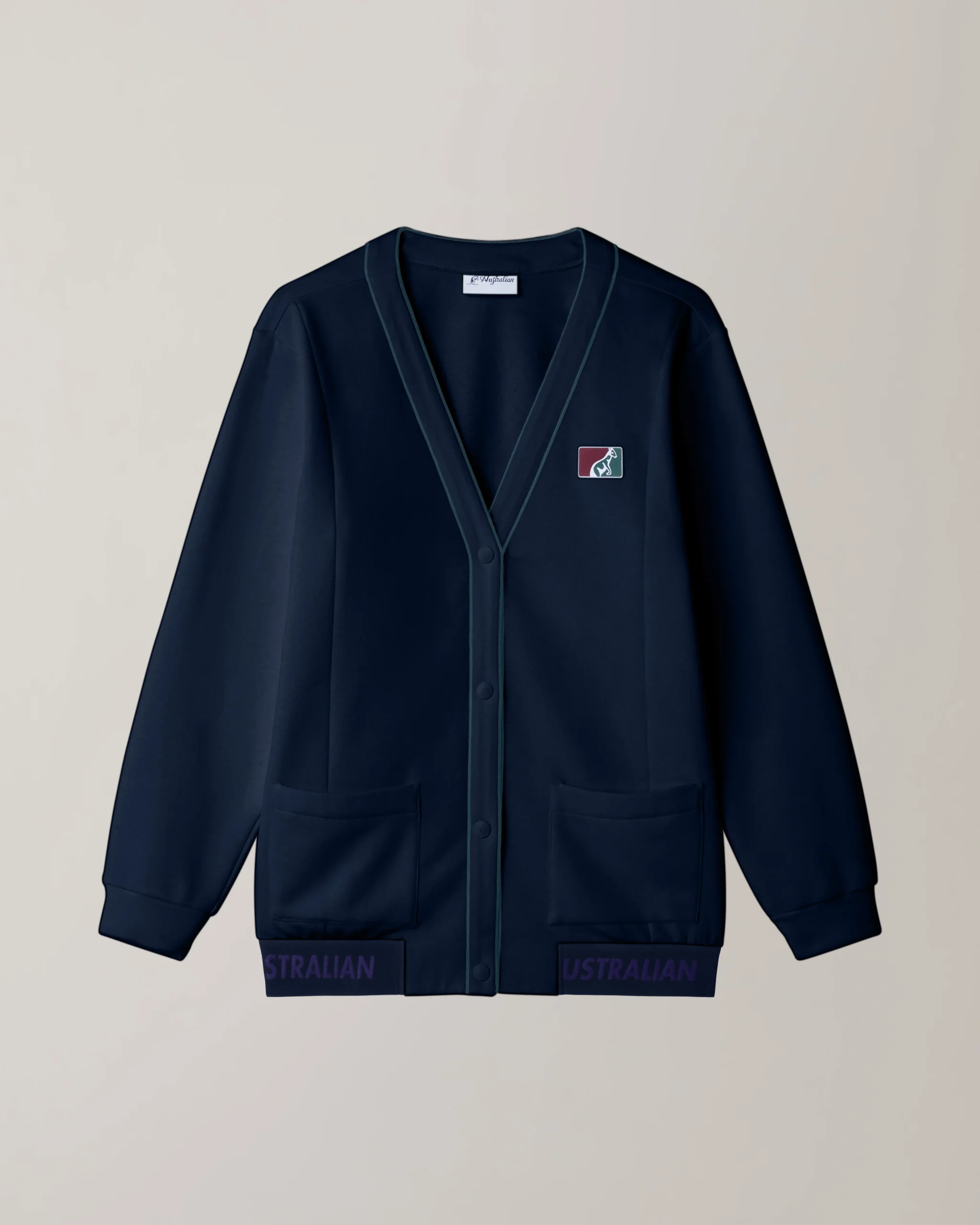 – Cardigan in felpa invernale– Elastico personalizzato in vita– Piping in raso a contrasto– Tasche applicate– Bottoni a pressione in gomma– Patch davanti – Made in Italy