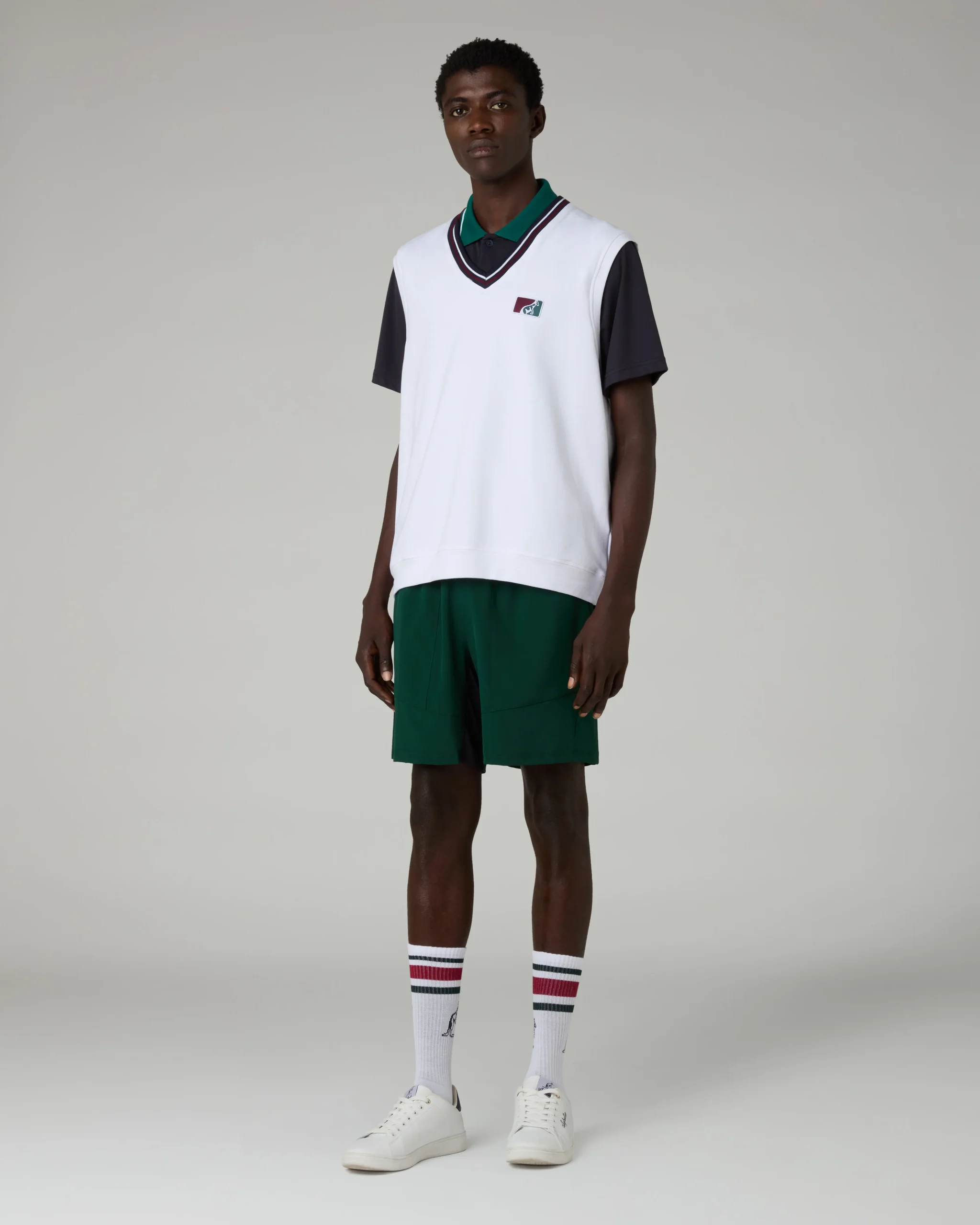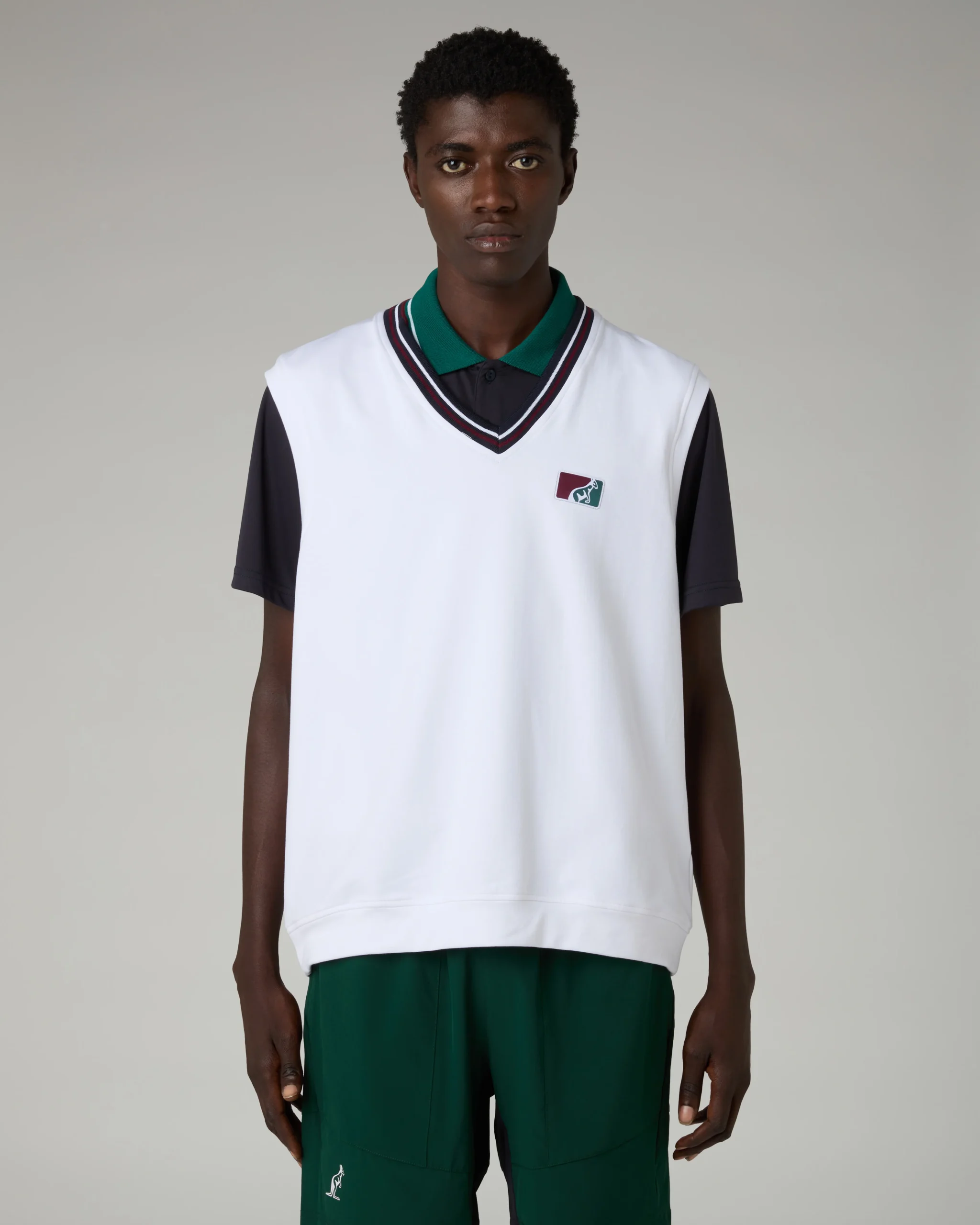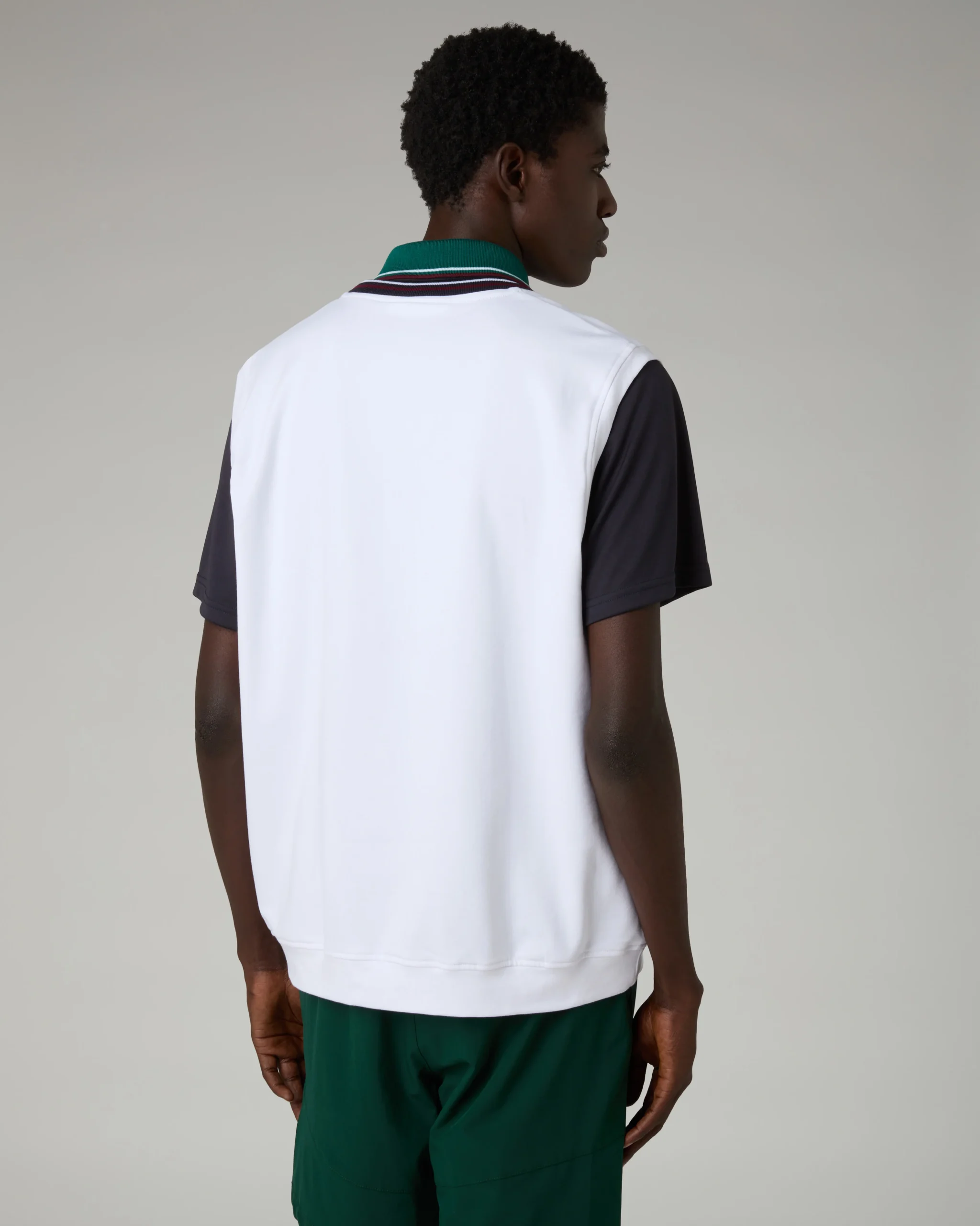 – Gilet in felpa elasticizzata garzata– Scollo smacchinato a “V” con 2 righe– Bordi in tessuto– Patch logo applicata– Made in Italy