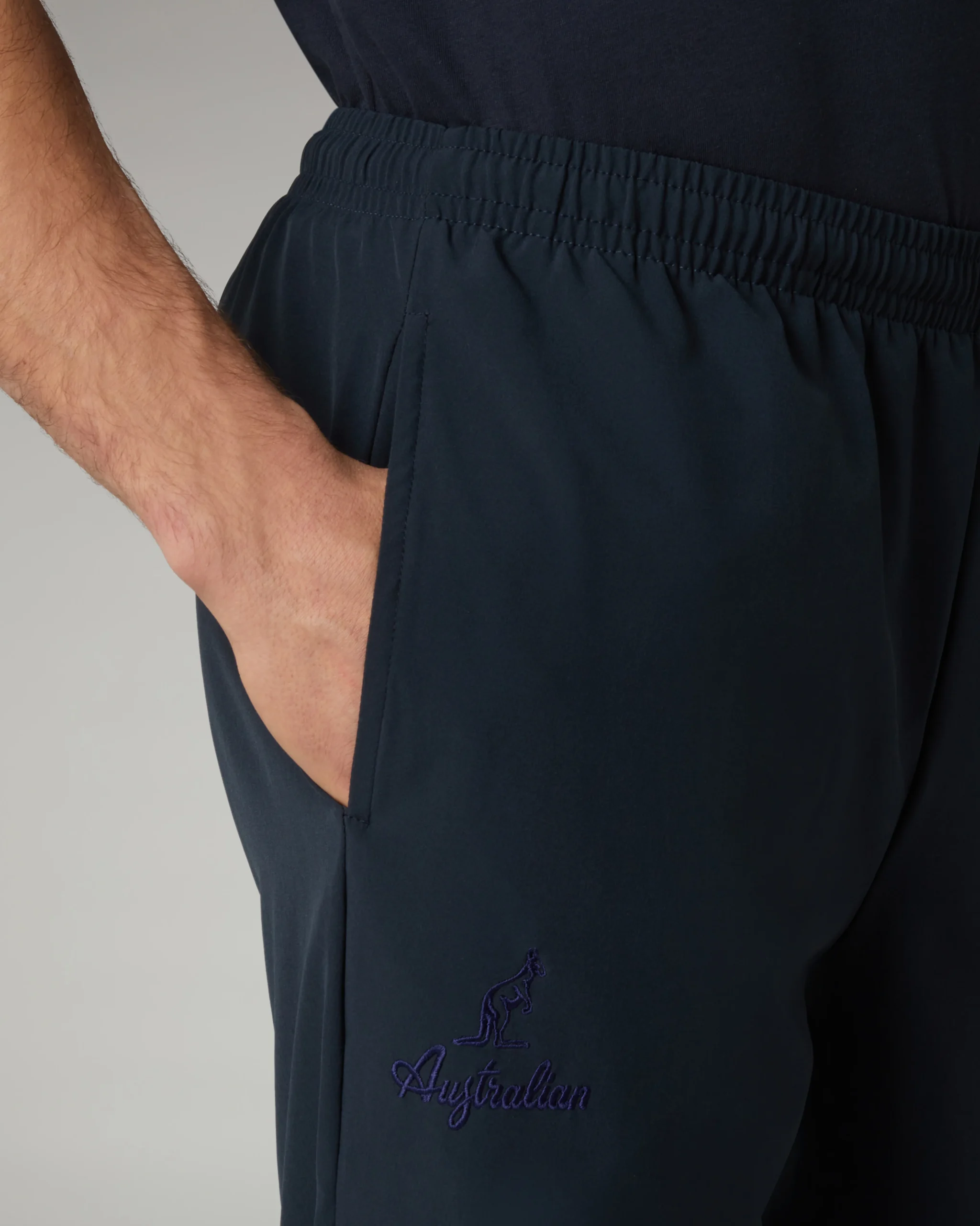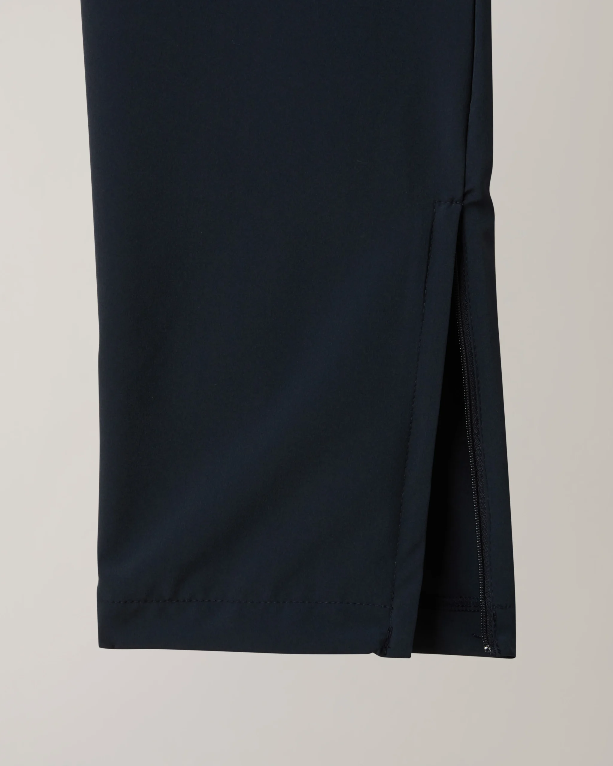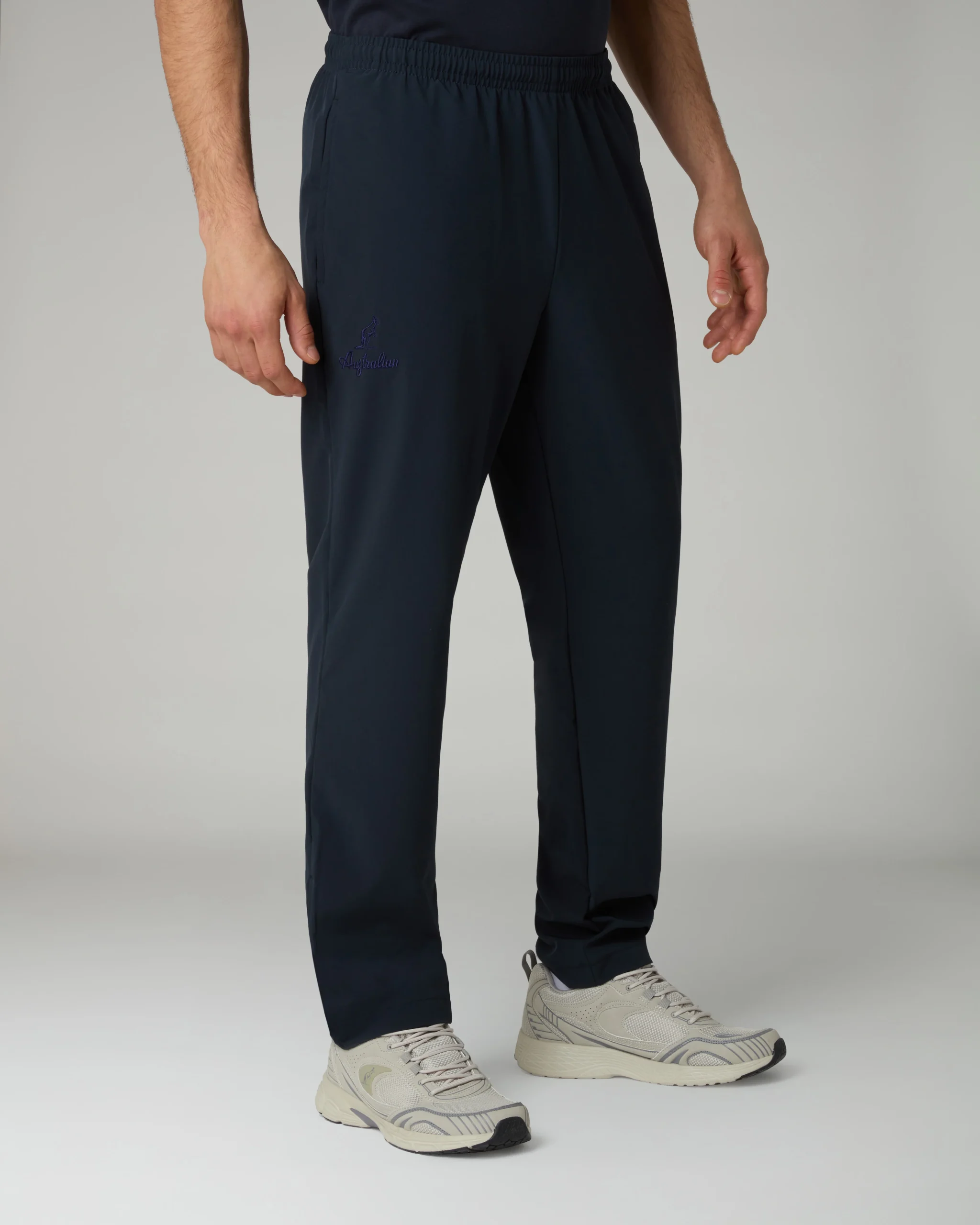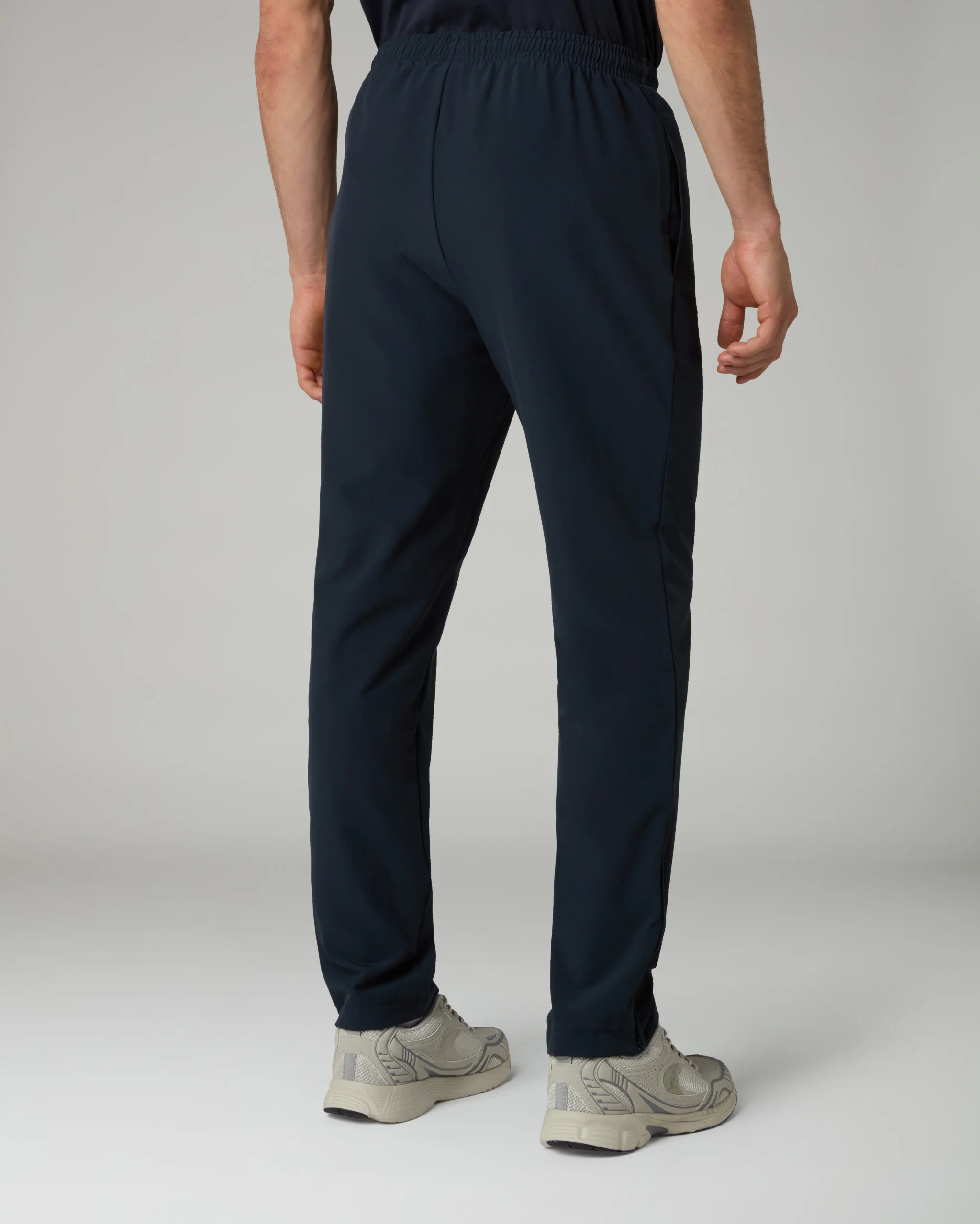 – Pantalone in tessuto bi-elastico “slam” – Elastico in vita con coulisse regolabile – Tasche laterali – Fondo diritto con zip – Logo ricamato – Made in Italy