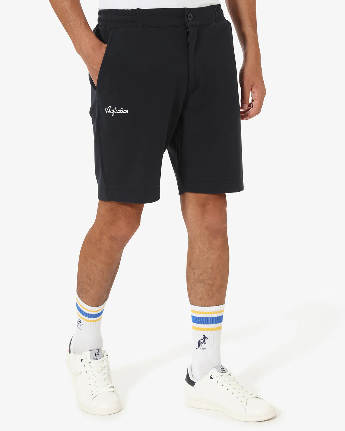 – Pantaloncini in fixed piquet – Chiusura con zip e bottone – Elastico in vita con oulisse in vita regolabile– Tasche laterali – Tasca posteriore con zip in contrasto – Logo ricamato – Made in Italy