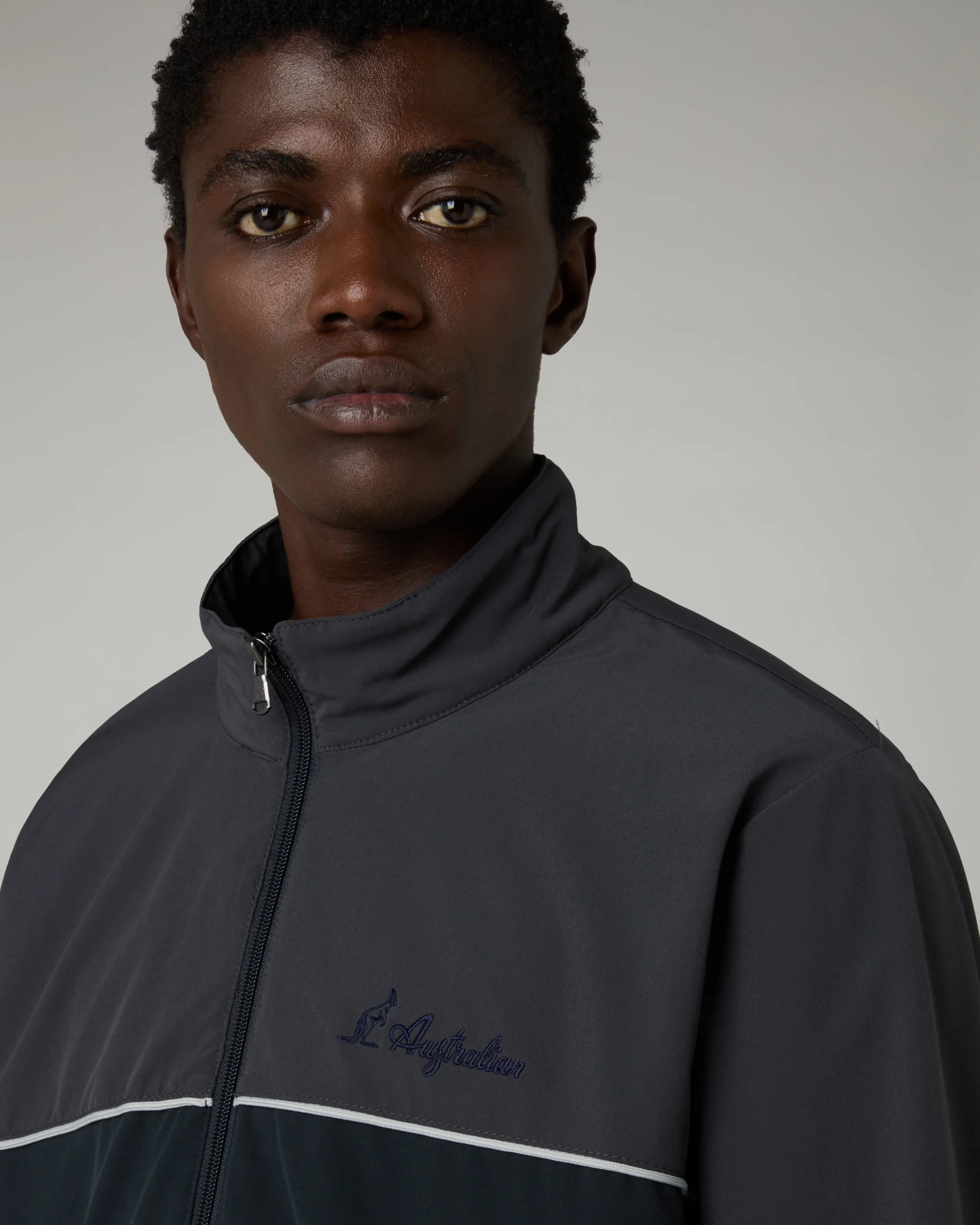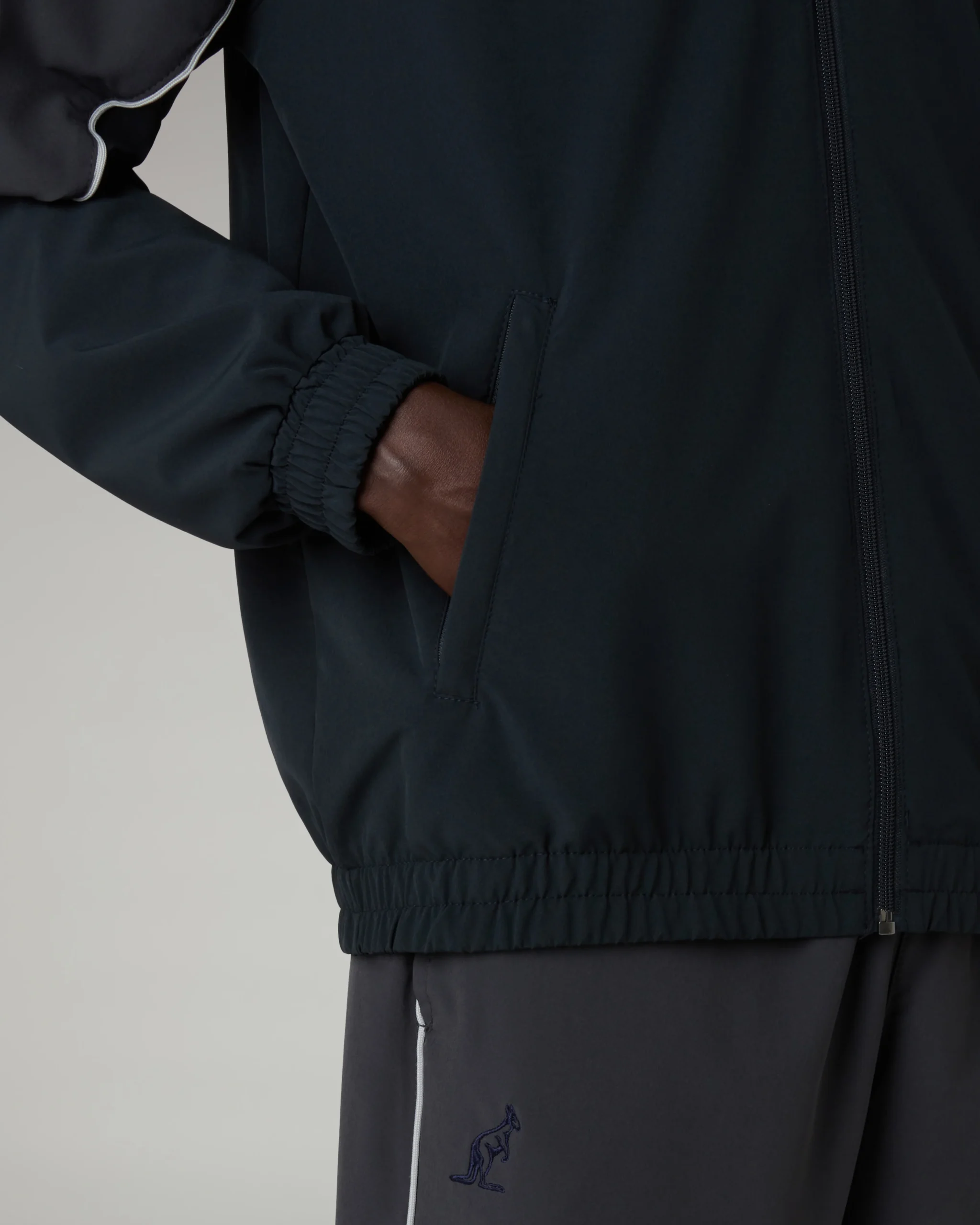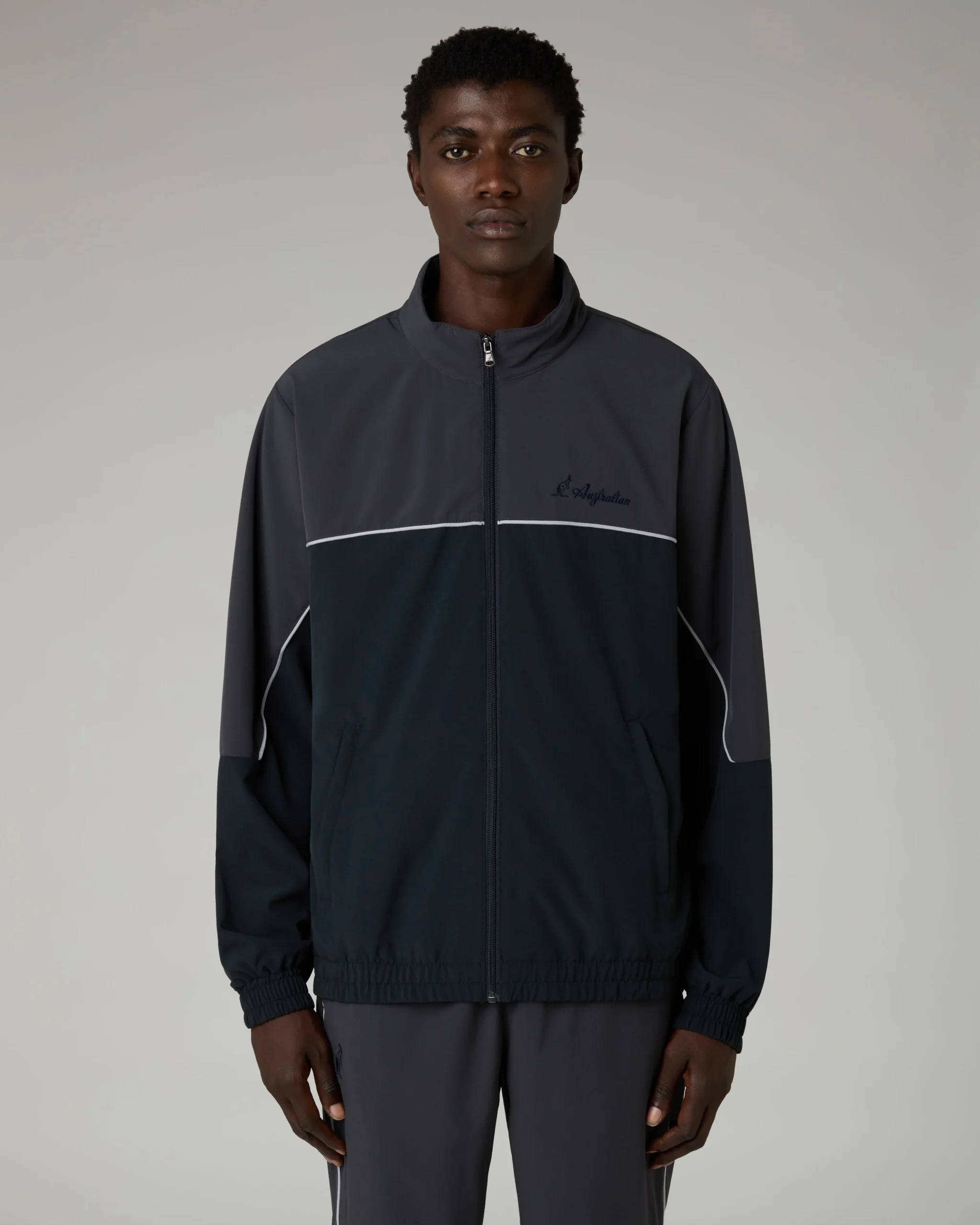 Tuta in tessuto tecnico “slam” foderataGiacca:– Inserti in contrasto sul davanti e maniche– Piping in contrasto– Full zip frontale in contrasto– Tasche con zip– Bordo e polsi elasticizzati– Logo ricamatoPantalone:– Elastico in vita con coulisse regolabile– Piping in contrasto sui fianchi– Fondo elasticizzato– Logo ricamatoMade in Italy
