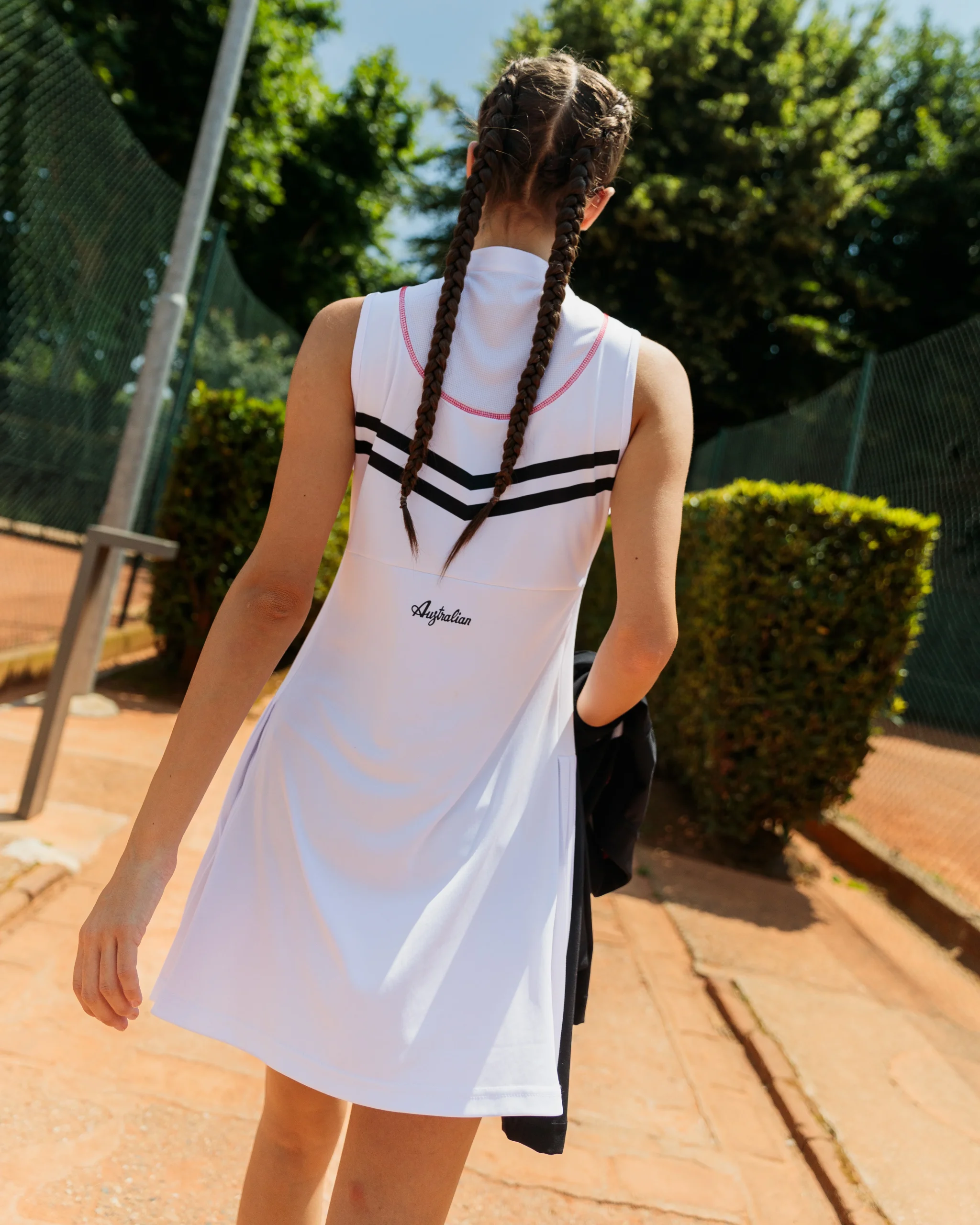 – Abito in tessuto “ace” con tecnologia traspirante– Inserti in web sulla gonna e sul retro– Inserto in stampa sublimatica sul retro– Collo in web con zip invisibile– Loghi stampati – Made in Italy