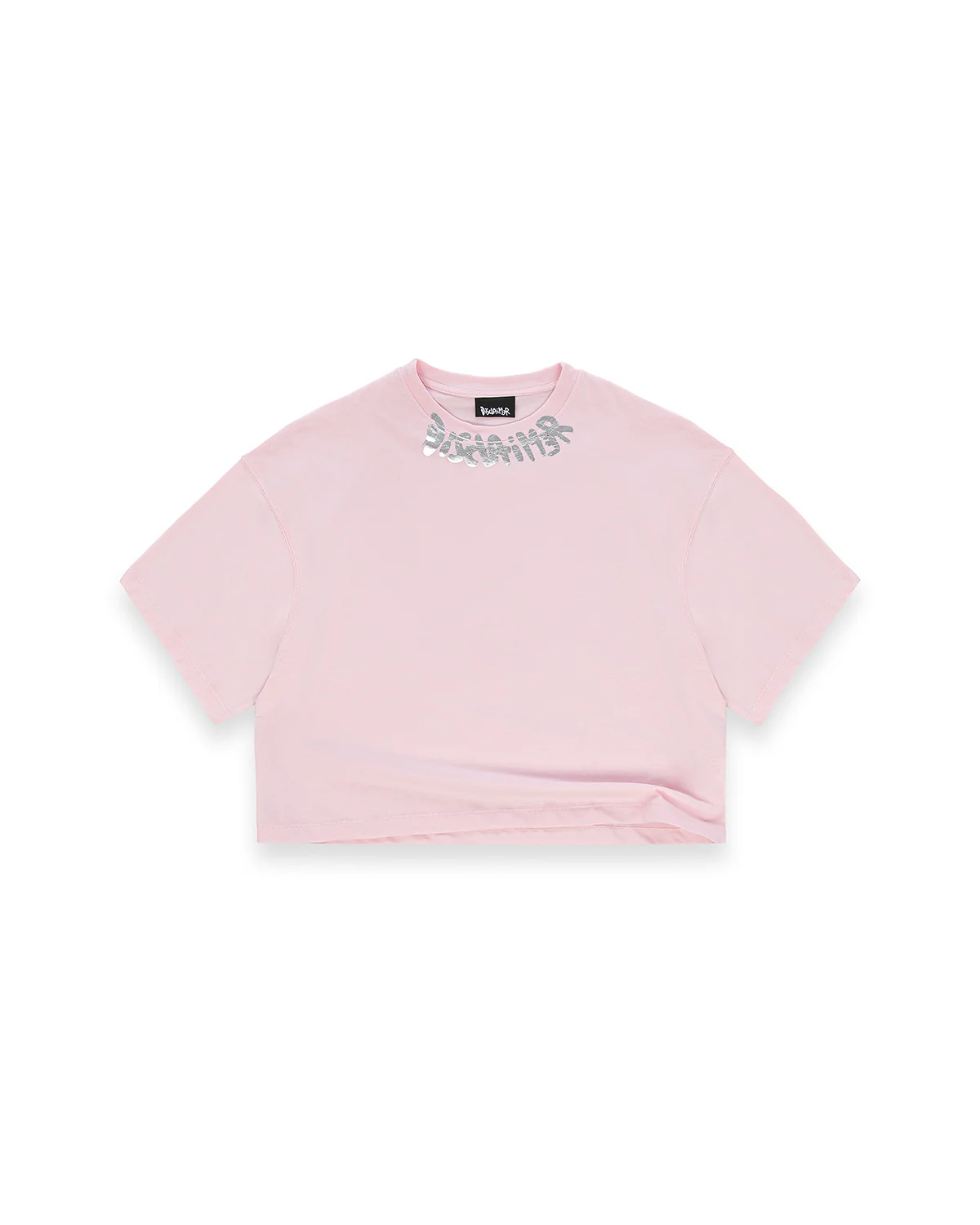 T- shirt girocollo con stampa argento su girocollo100% COTONE