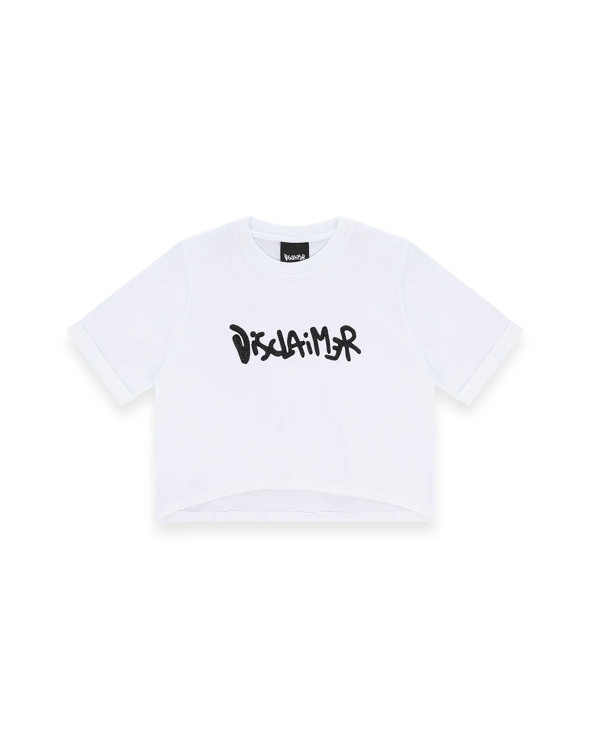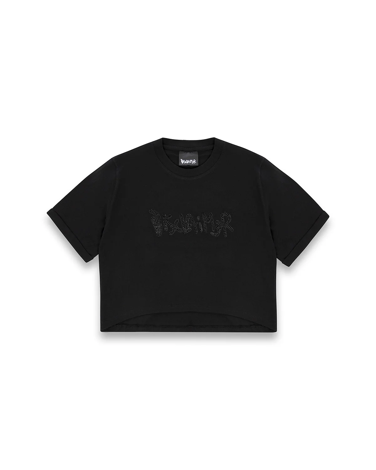 T- shirt girocollo con applicazione logo in strass sul davanti100% COTONE