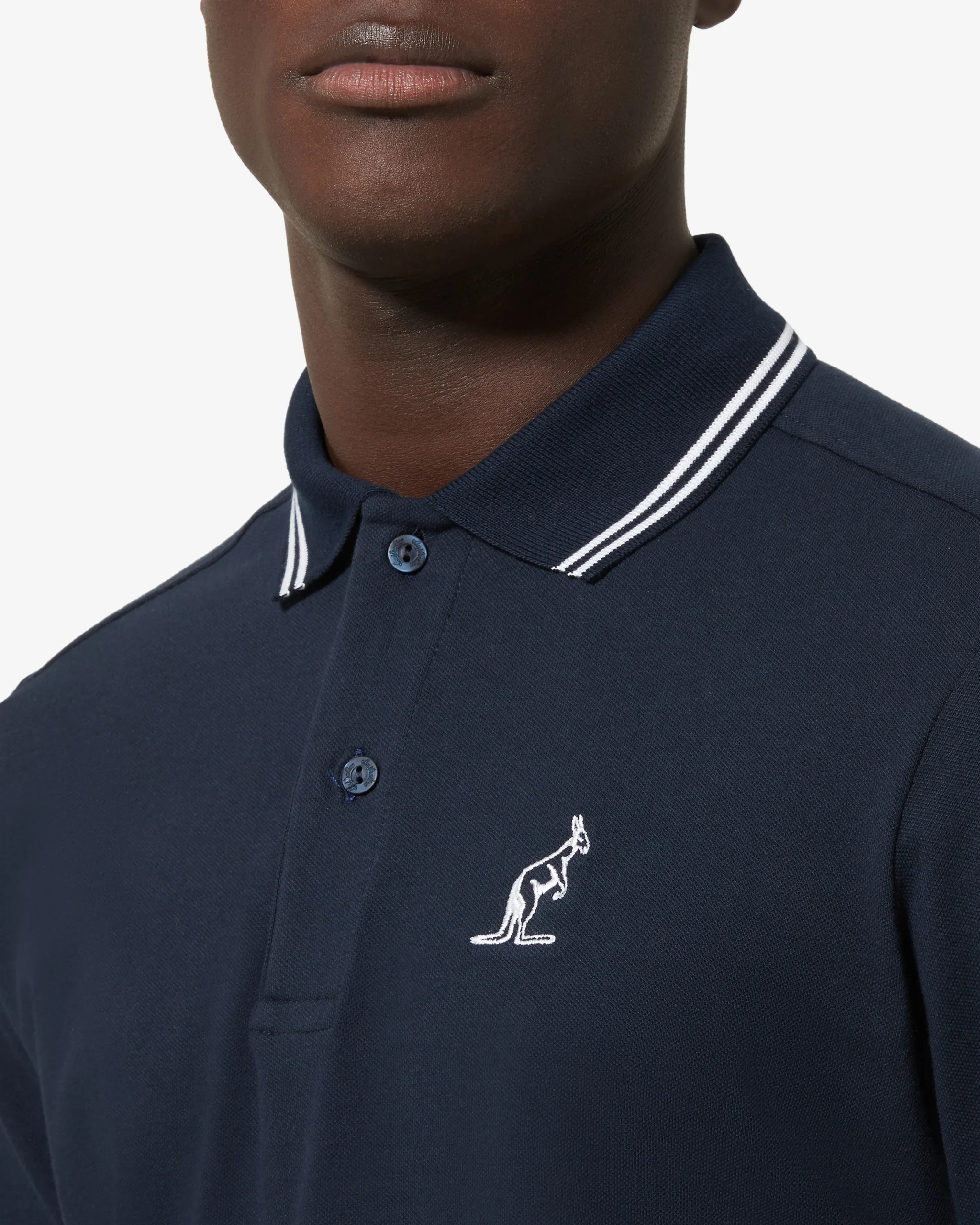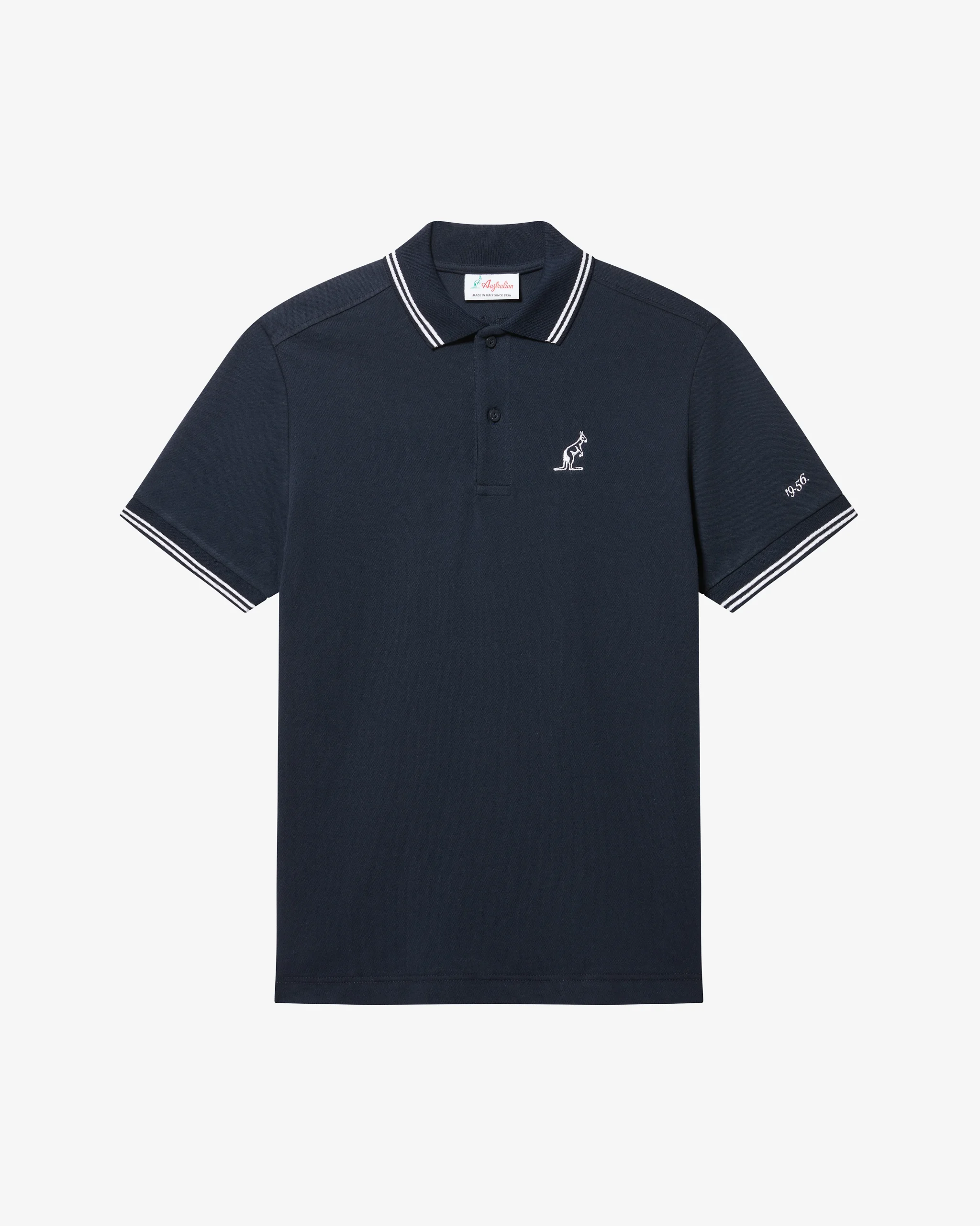 – Polo in piquet elasticizzato– Collo e polsi in filo rigati– Carè con asola sul retro– Loghi ricamati in contrasto– Regular fit– Made in Italy