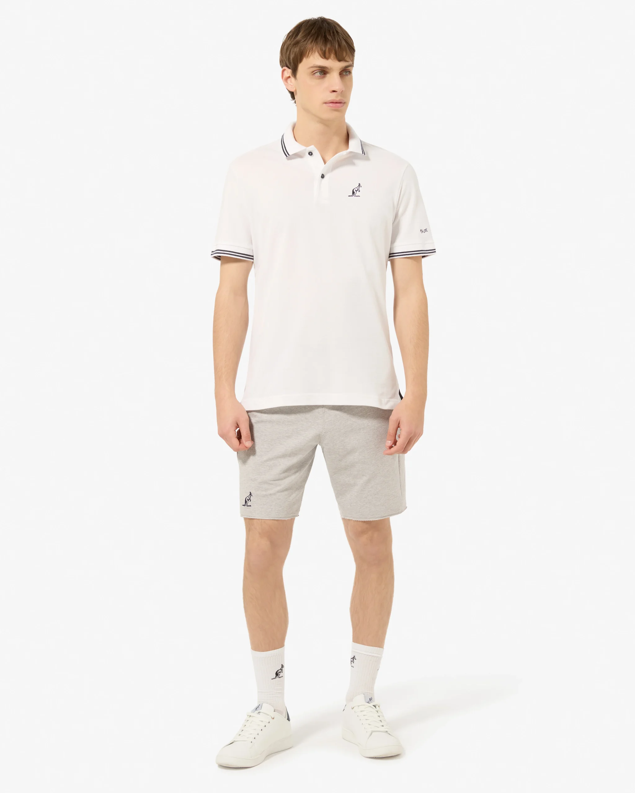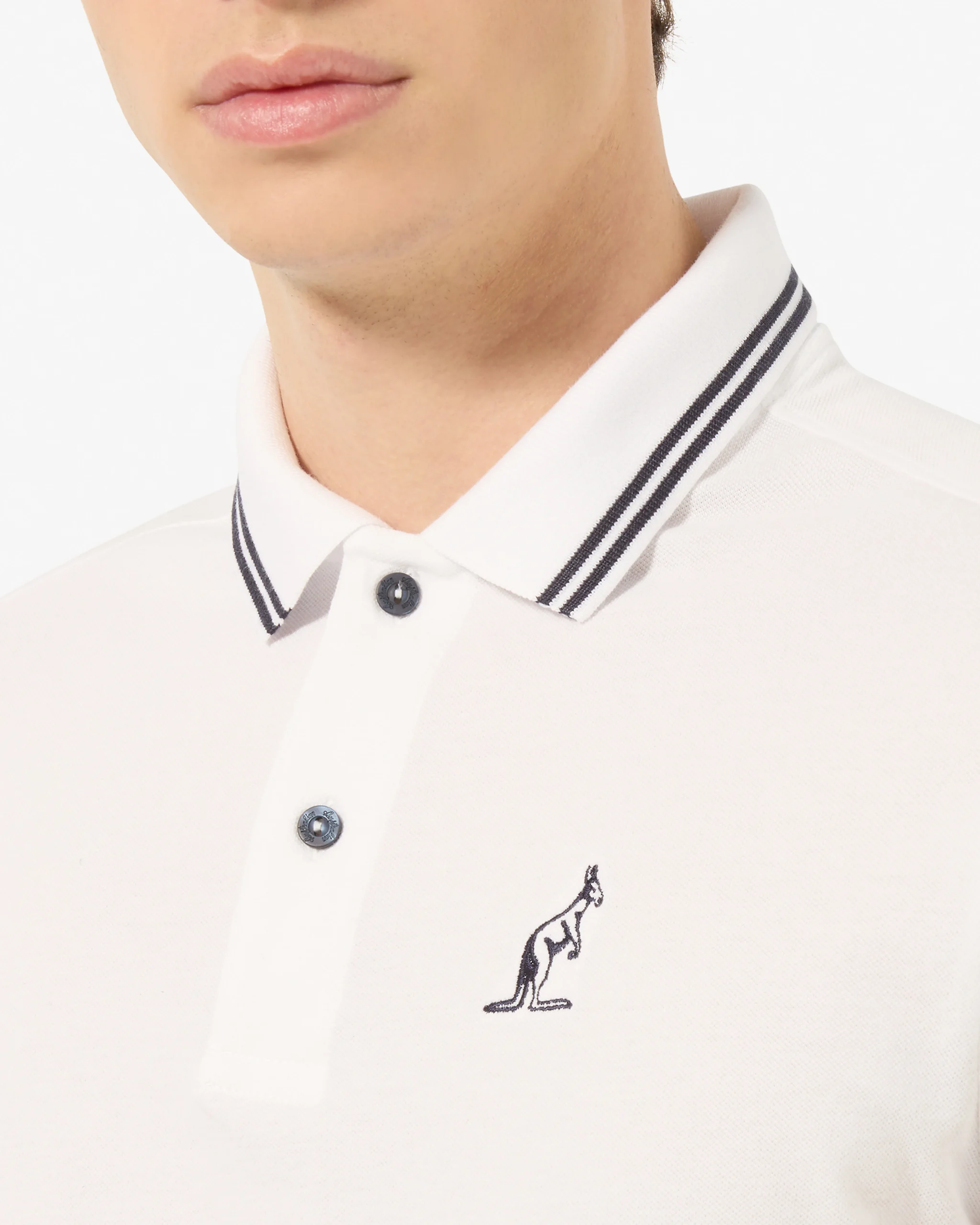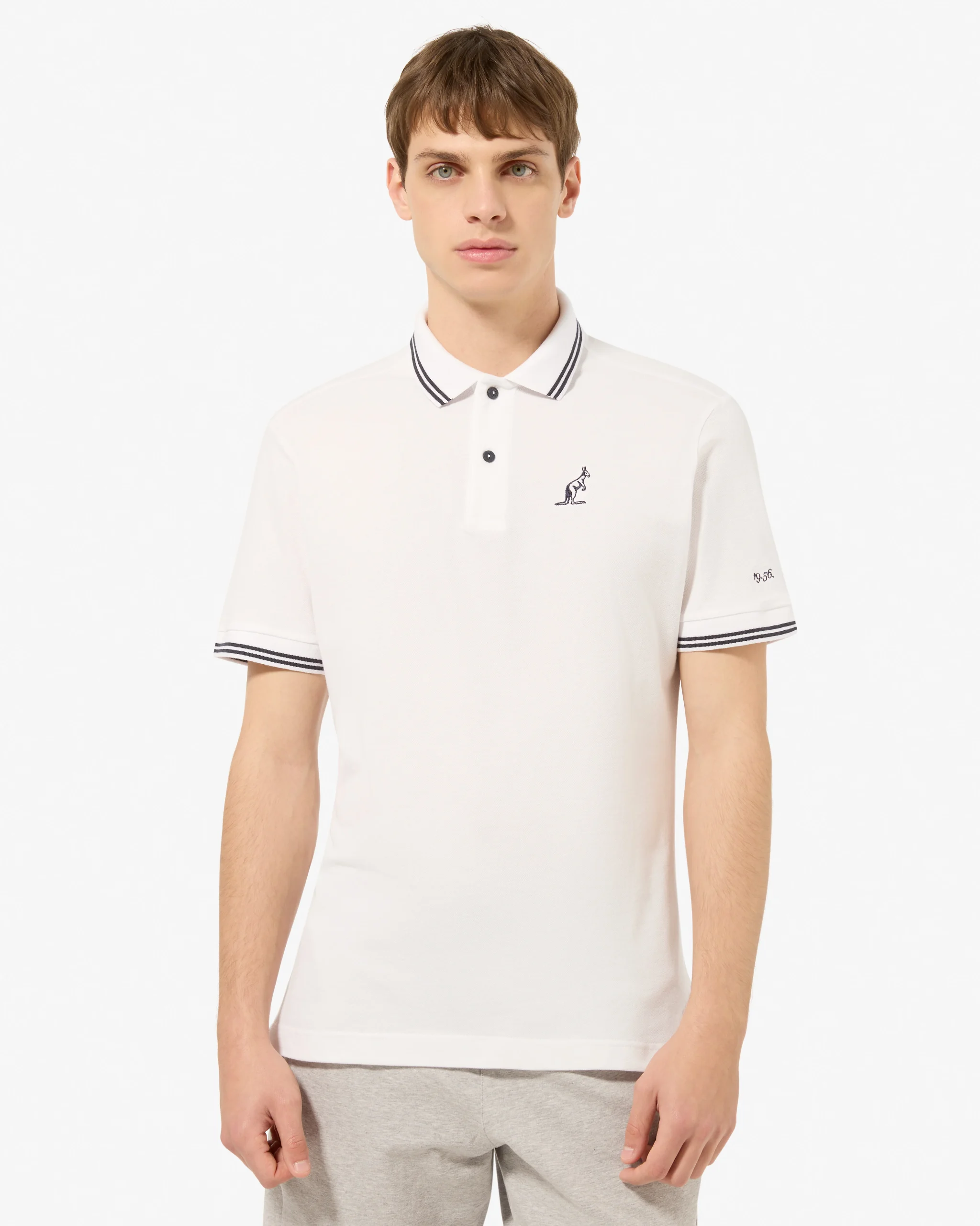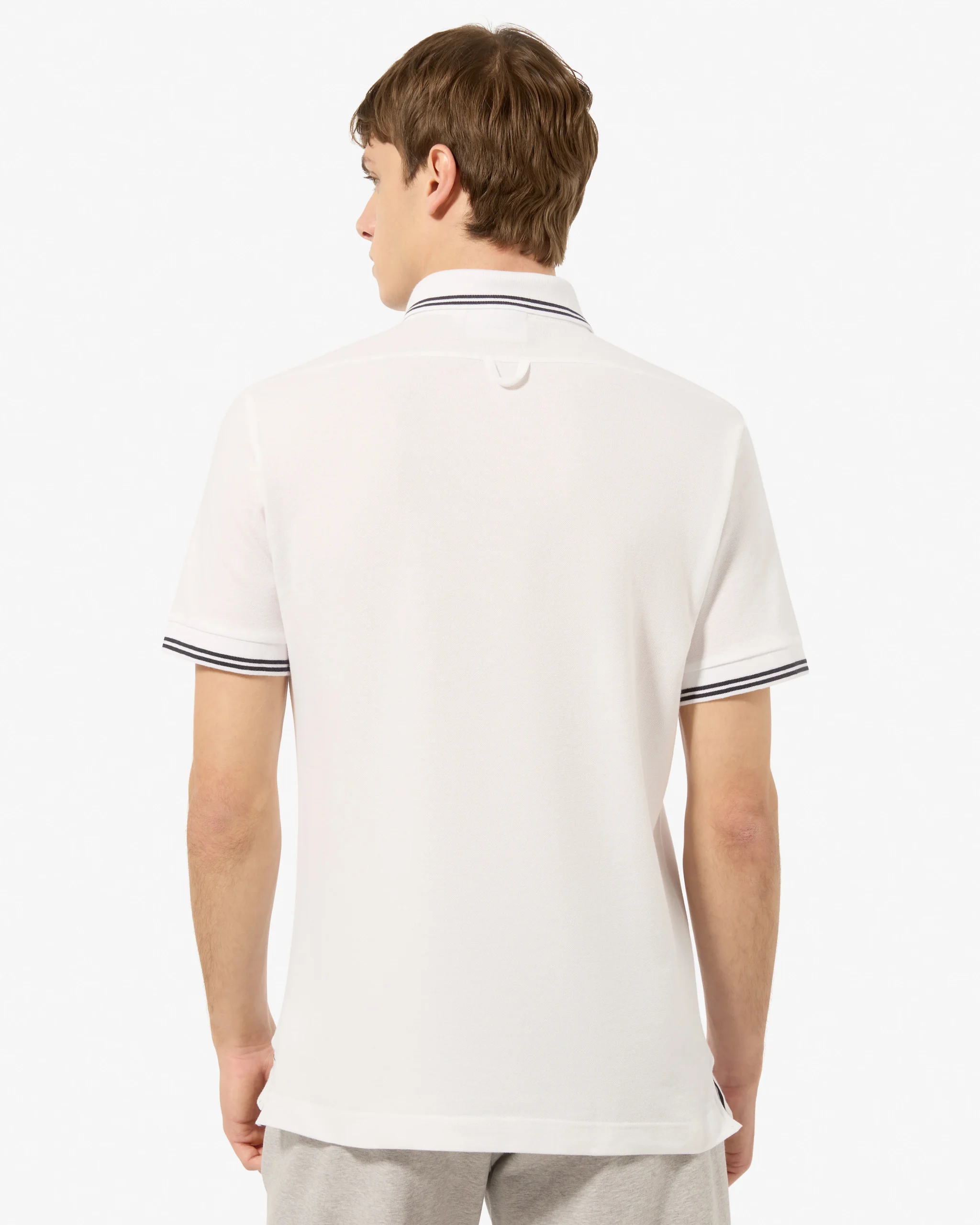 – Polo in piquet elasticizzato– Collo e polsi in filo rigati– Carè con asola sul retro– Loghi ricamati in contrasto– Regular fit– Made in Italy