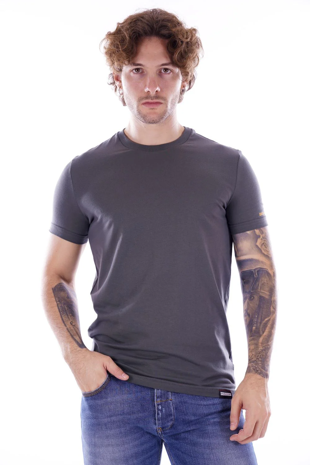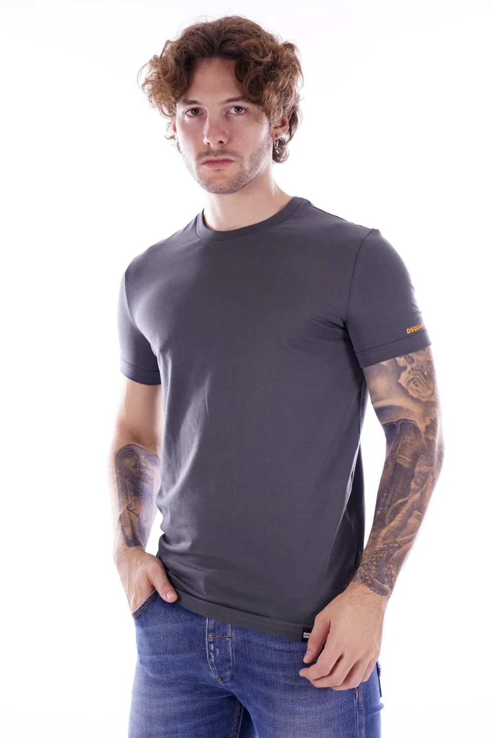 DSQUARED2 Maglietta grigia girocollo , manica corta , da uomo , con logo sul braccio . Linea Under