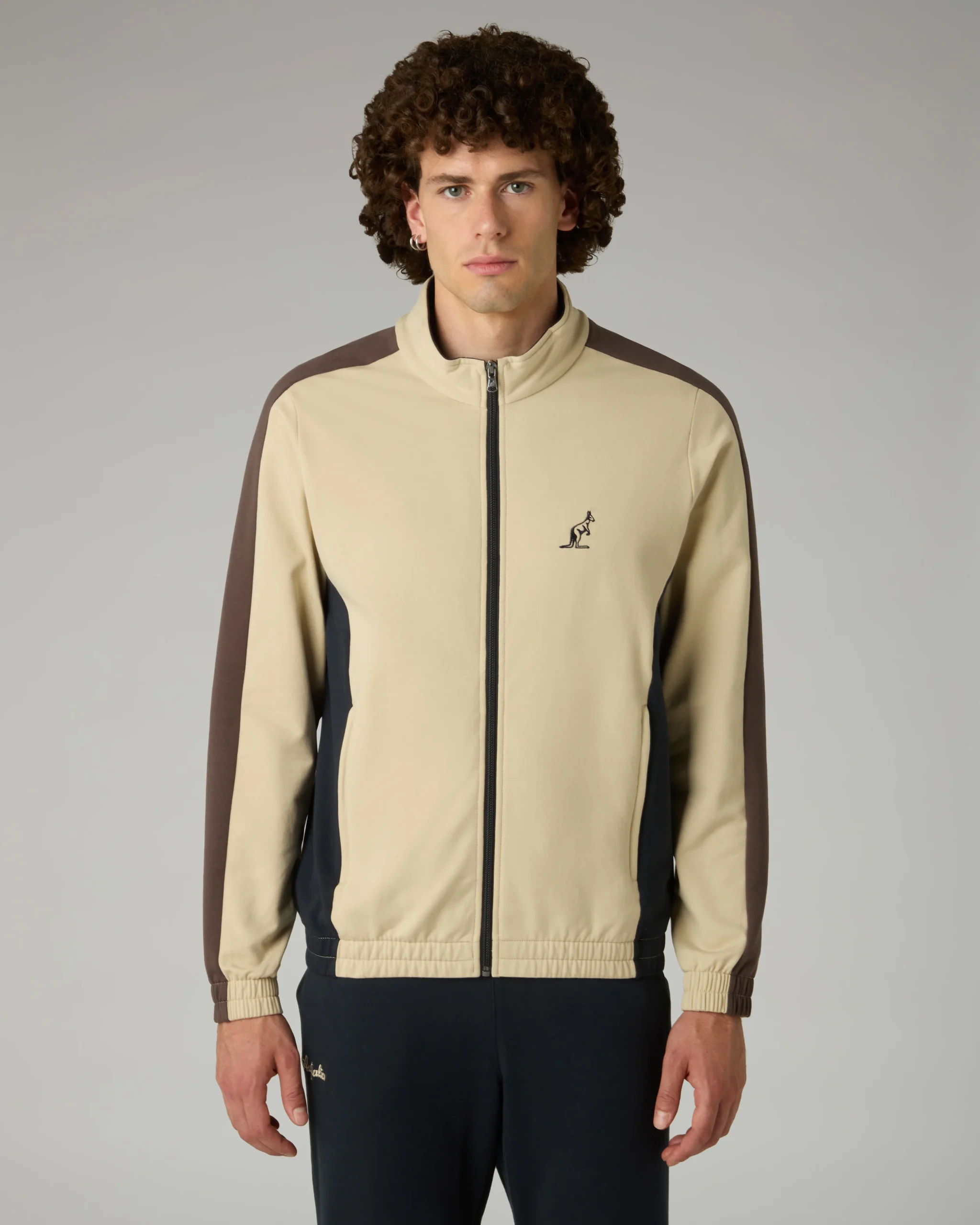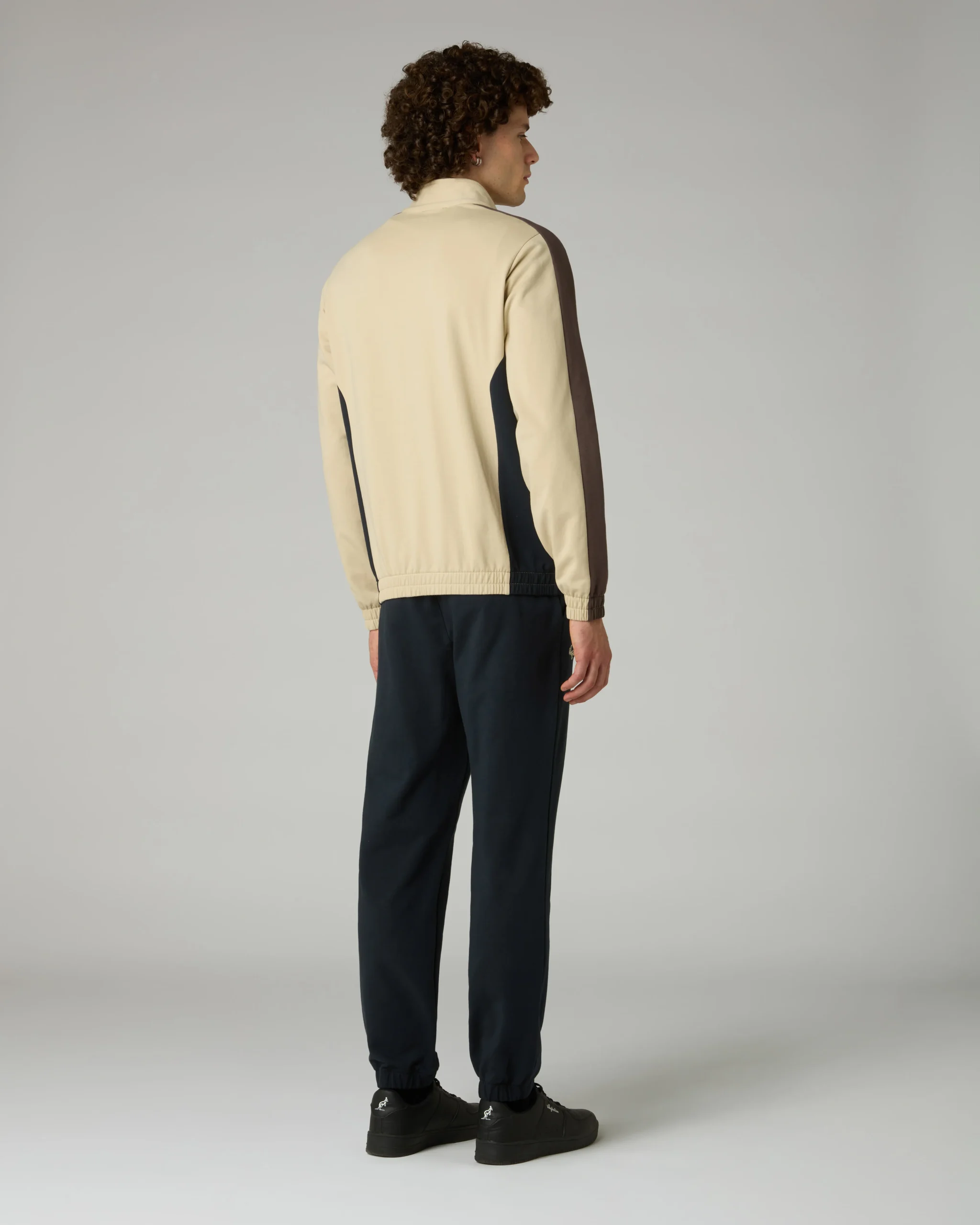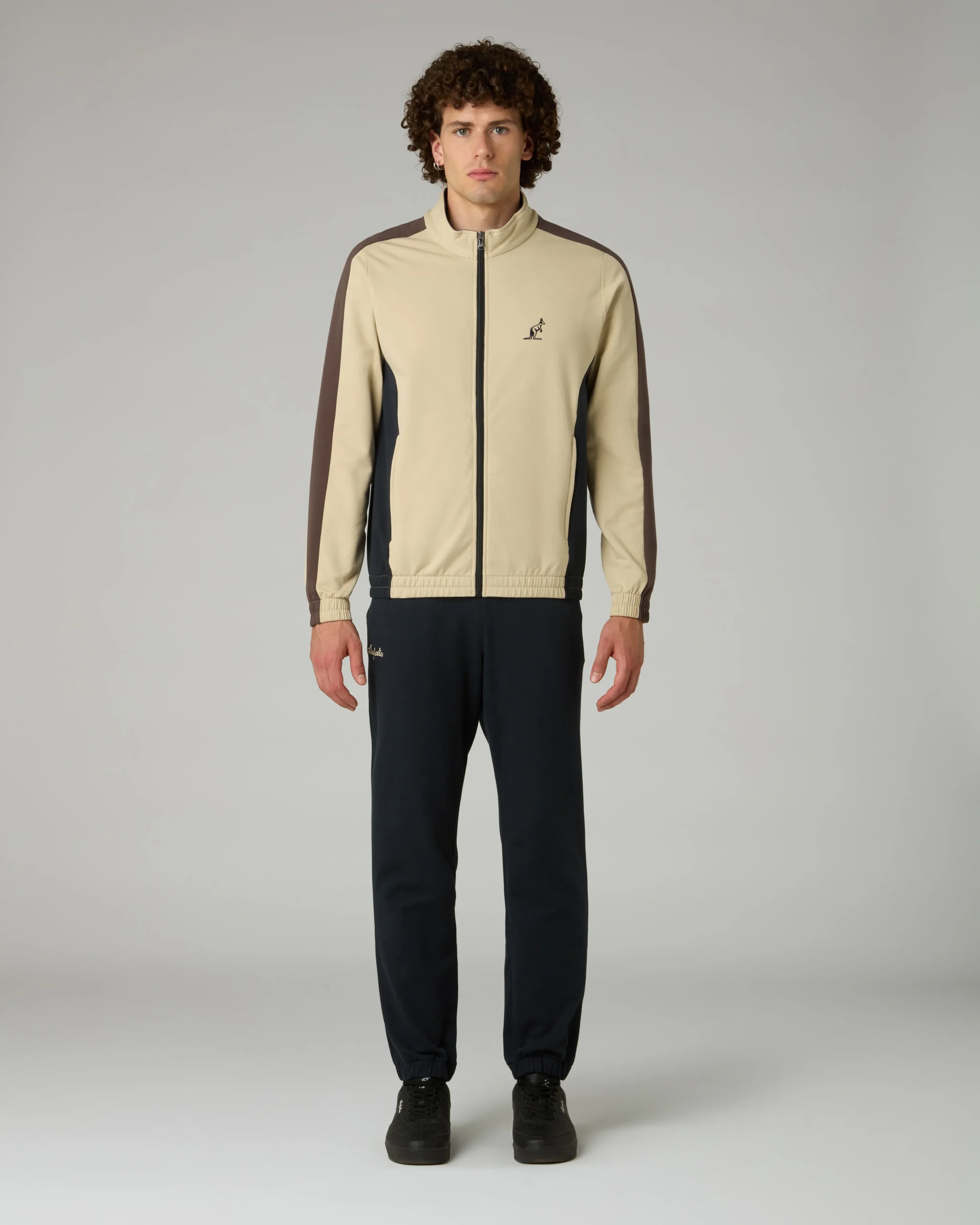 Tuta in felpa elasticizzata garzataGiacca:– Inserti in contrasto su fianchi e maniche– Piping in contrasto– Bordo e polsi elasticizzati– Logo ricamatoPantalone:– Elastico in vita con coulisse regolabile– Fondo elasticizzato– Logo ricamatoMade in Italy