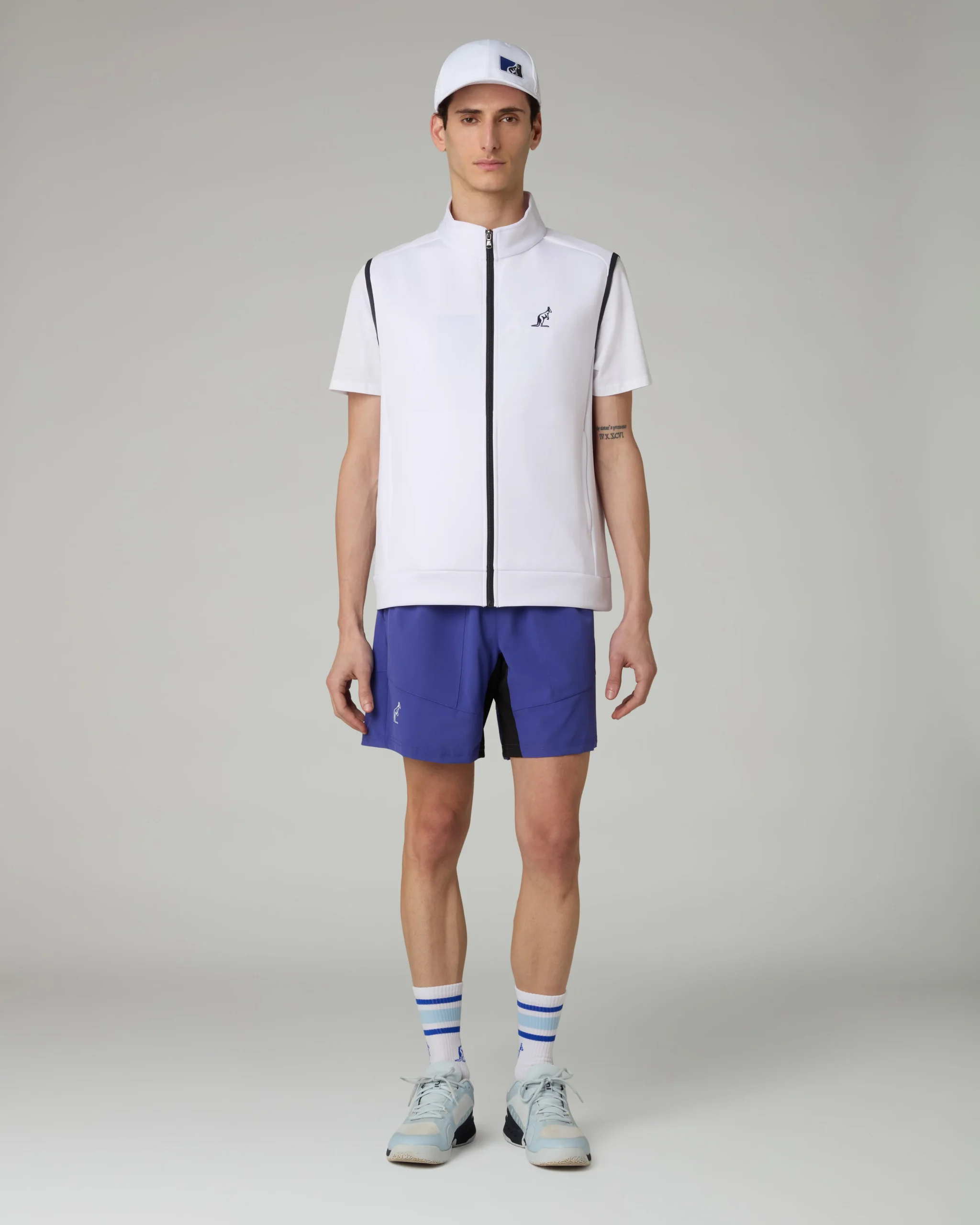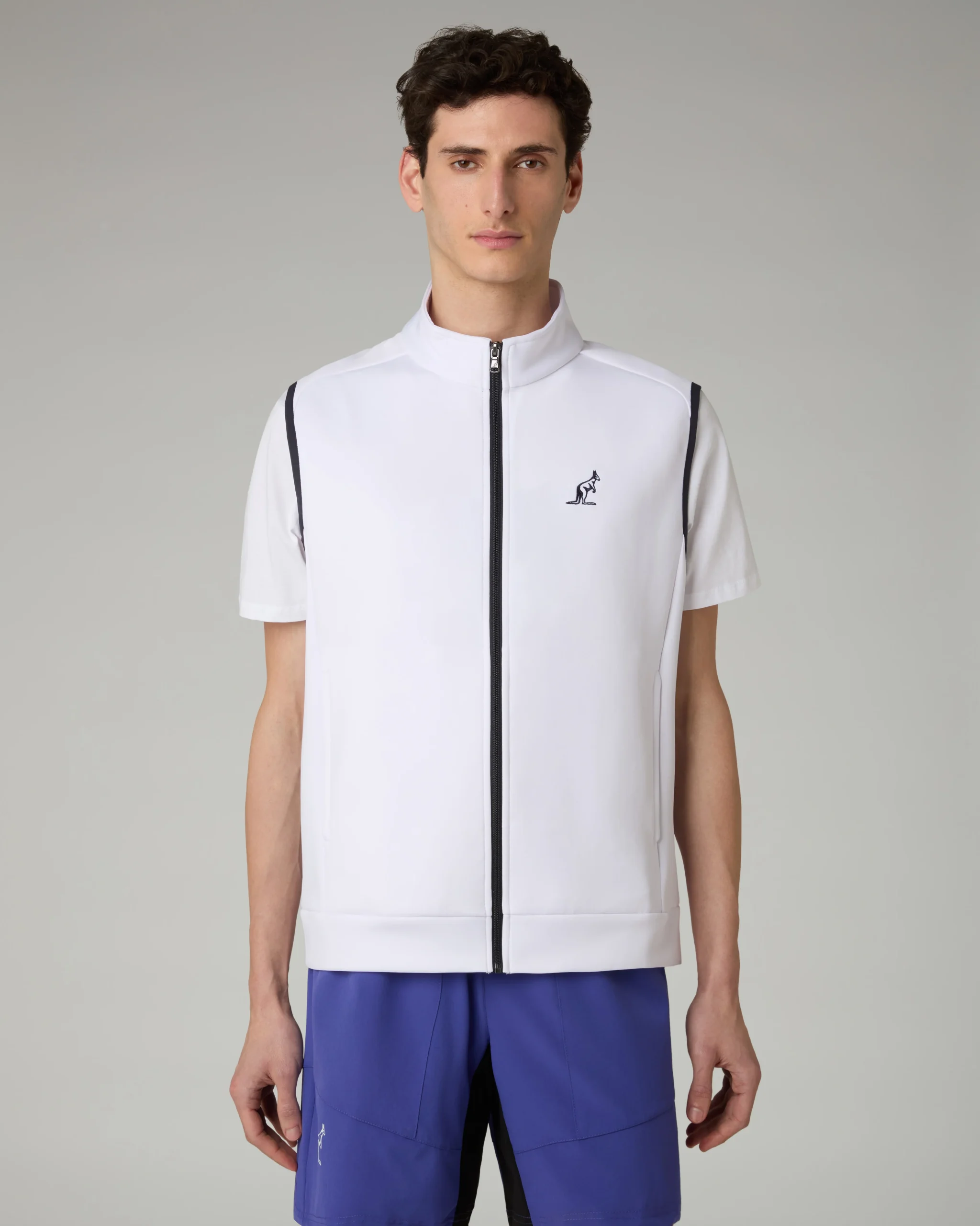 – Gilet in tessuto “voleè” – Full zip frontale e alle tasche in contrasto– Bordo vita in tessuto – Logo ricamato– Made in Italy