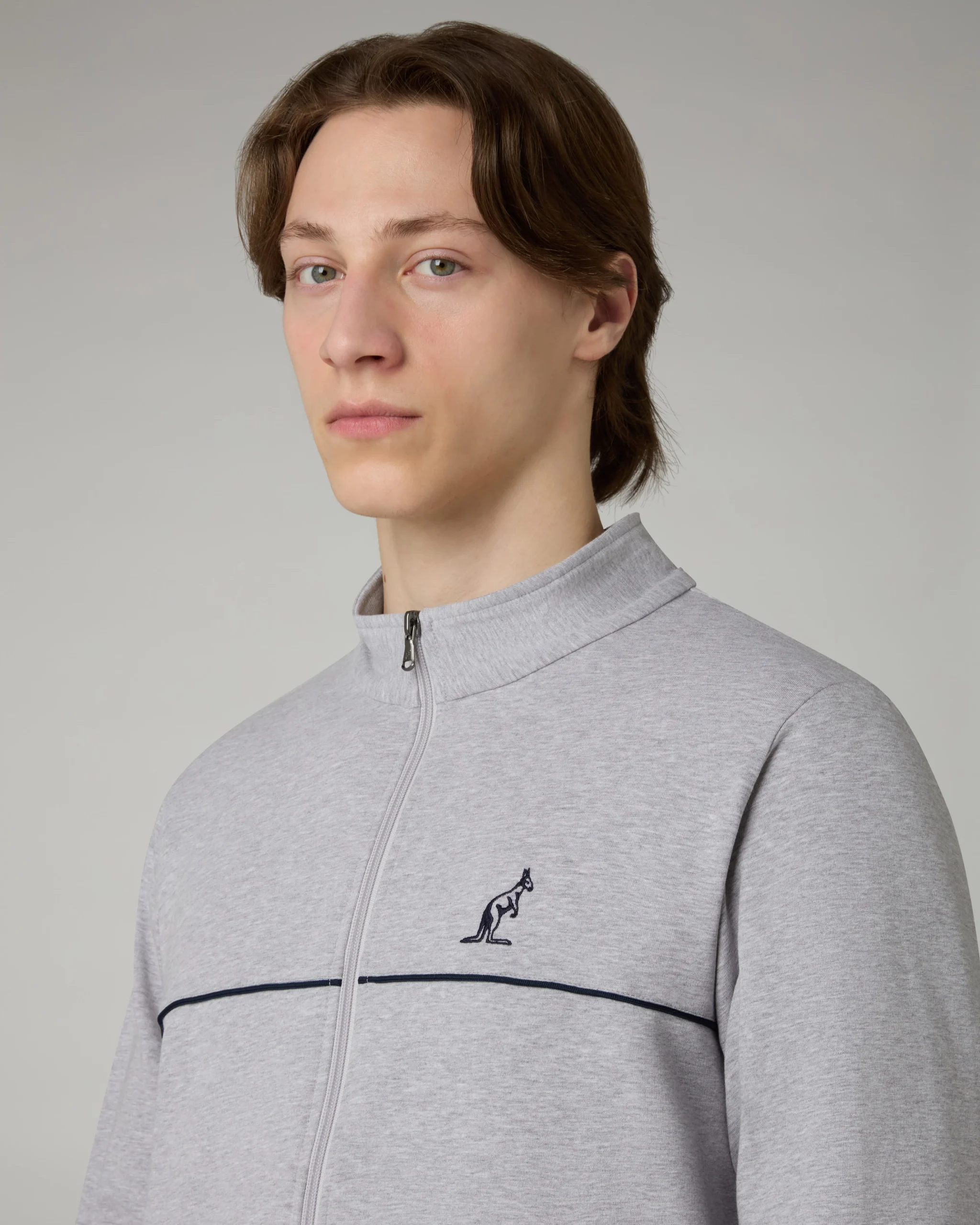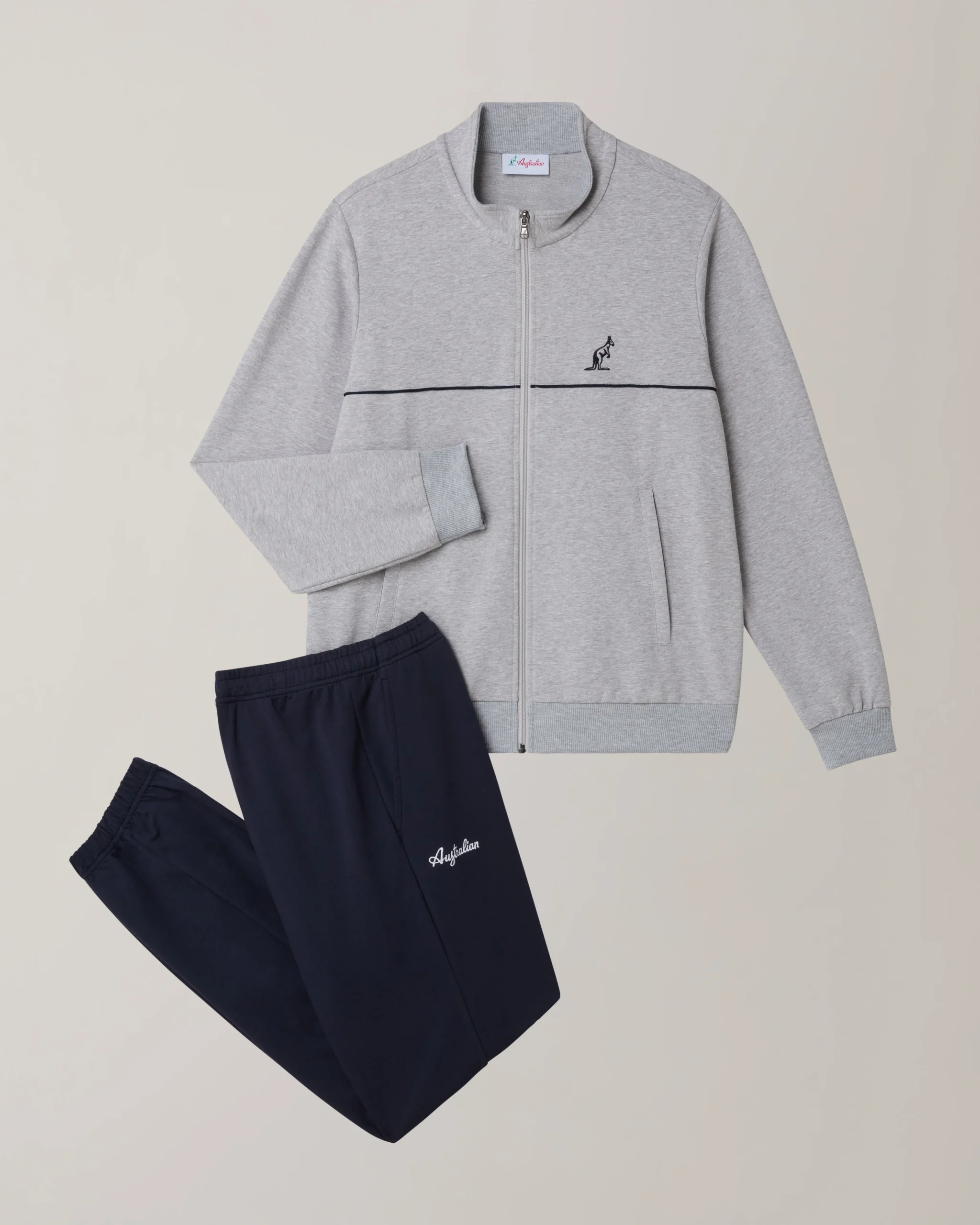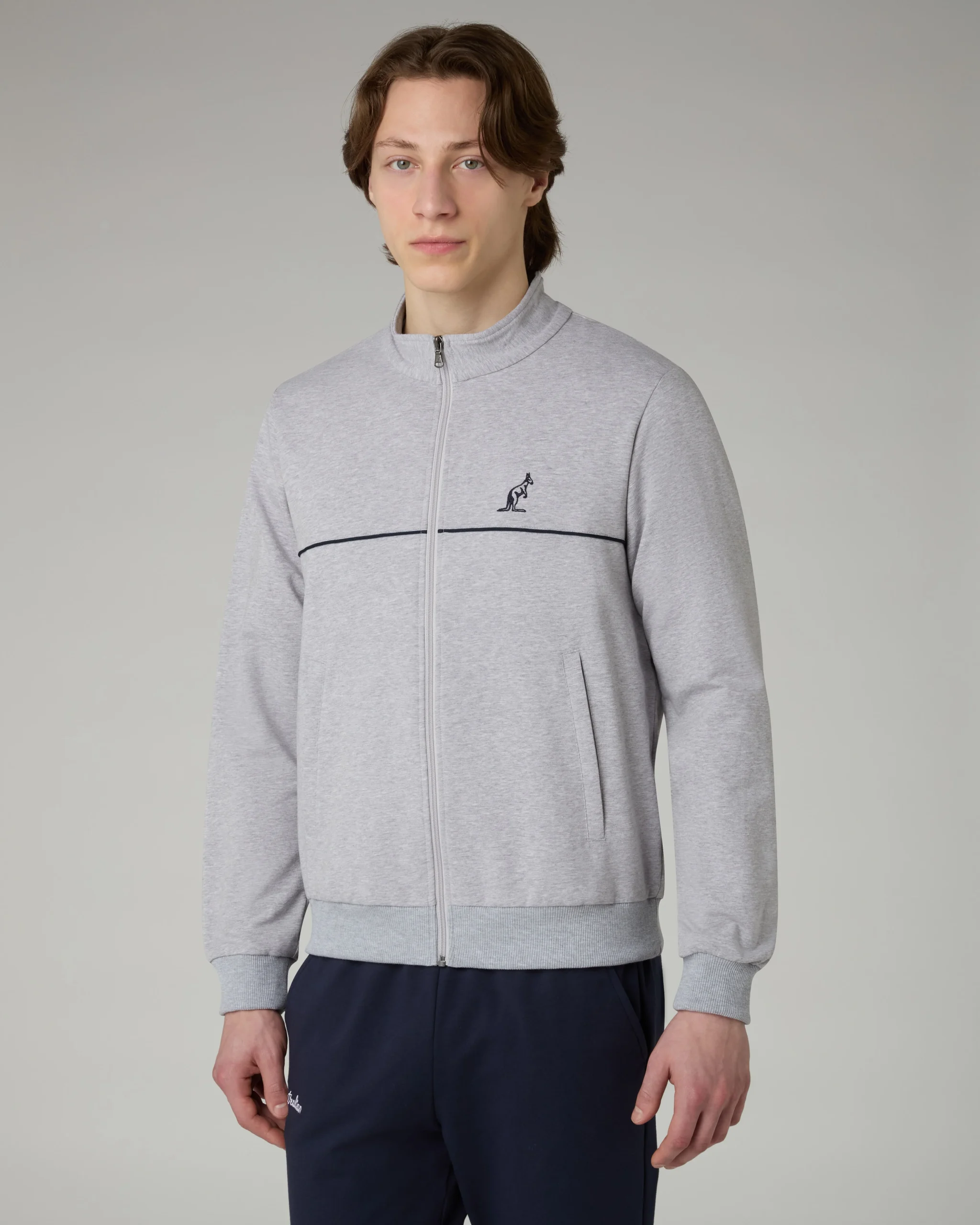 Tuta in felpa elasticizzata Giacca:– Piping in contrasto sul davanti– Full zip frontale– Tasche laterali con zip– Bordo e polsi in costina– Logo ricamatoPantalone:– Elastico in vita con coulisse regolabile– Fondo elasticizzato– Logo ricamatoMade in Italy