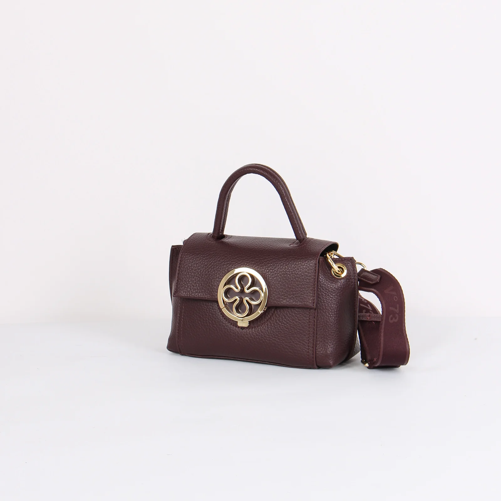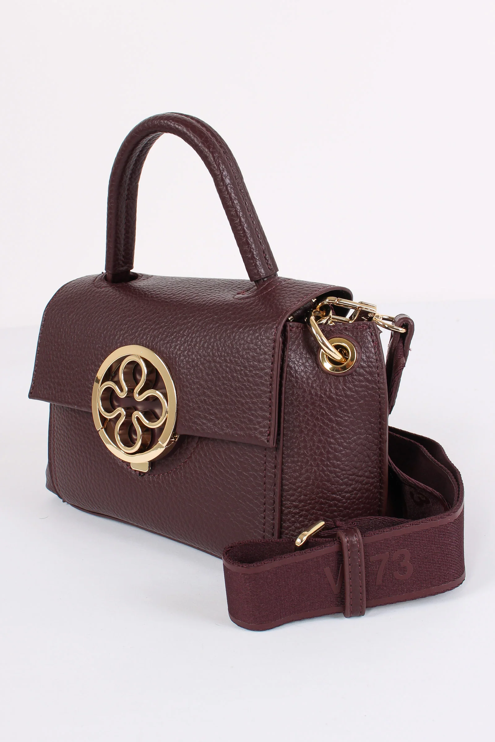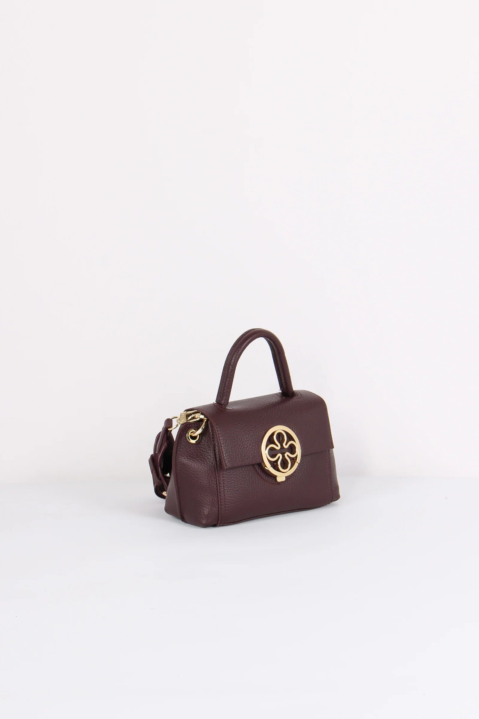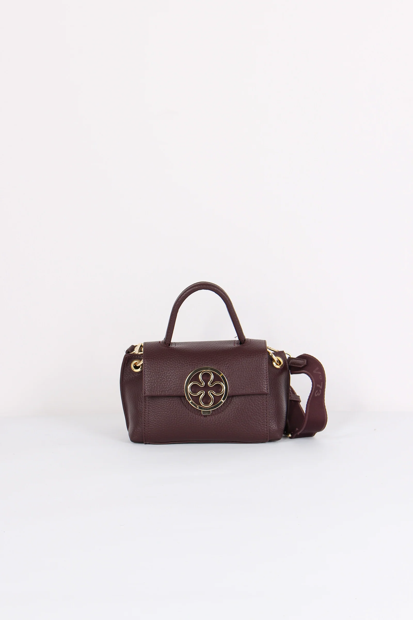 Materiale: 100% poliuretano chiusura: rocchetto tracolla: si dettagli: Borsa mini ecopelle con logo fiore in metallo sul davanti come chiusura. Manico fisso con tracolla a nastro logata regolabile e removibile. Chiusura con zip e intento con scomparto portaoggetti. Misure: Altezza 13cm lunghe
