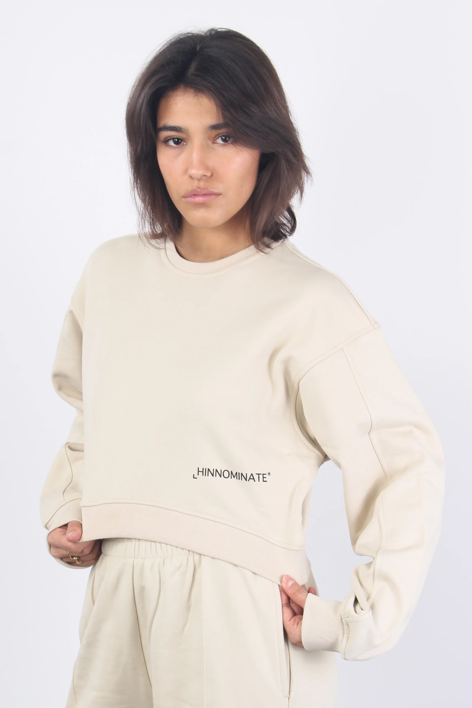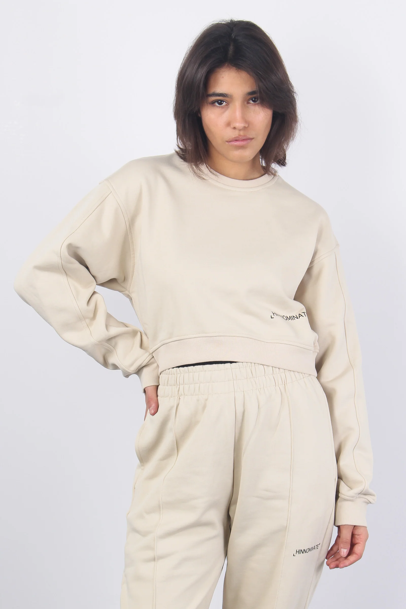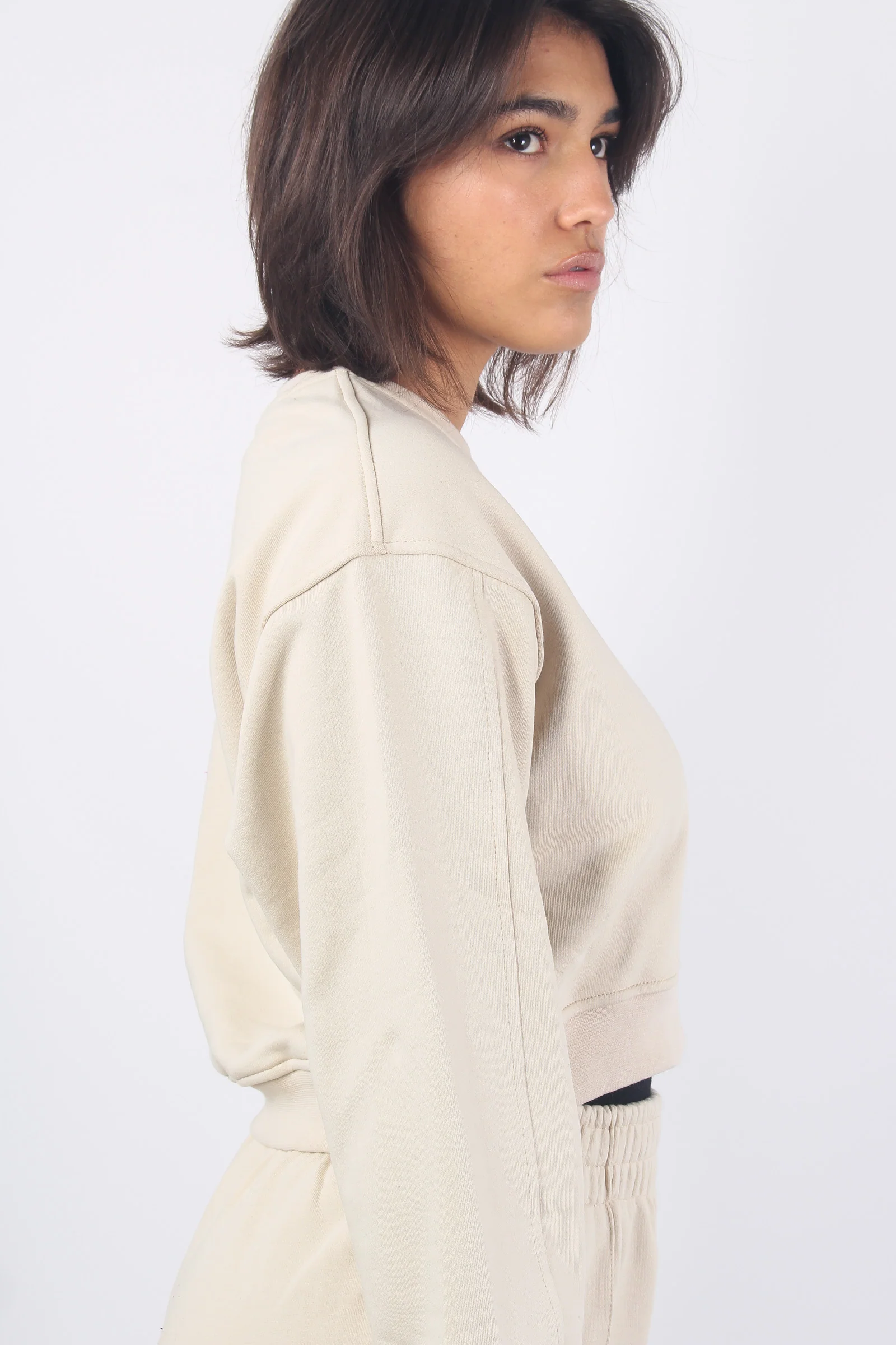 Felpa Girocollo Corta Beige Sand