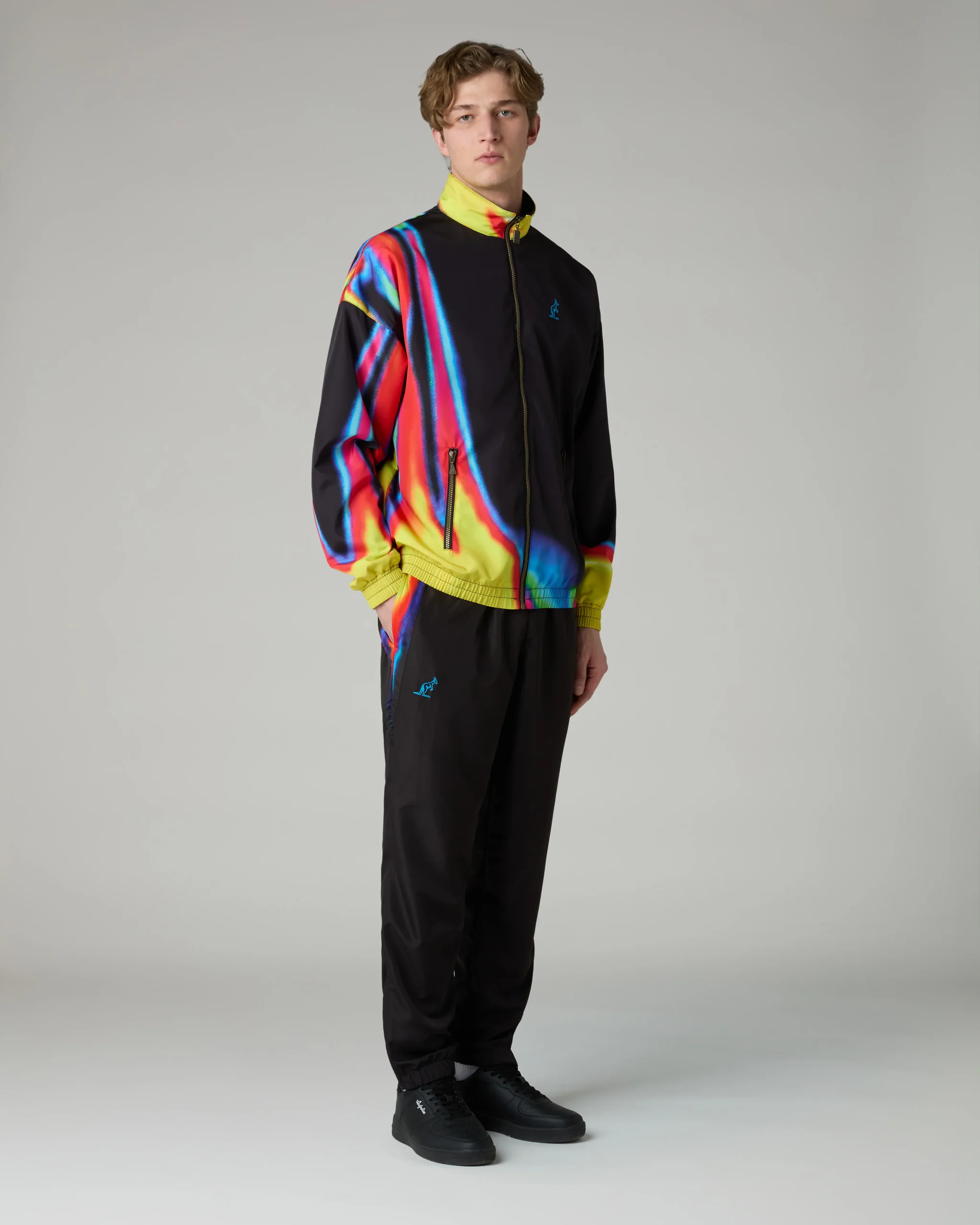 – Pantalone in tessuto tecnico smash– Foderato in mesh– Inserti a “V” laterali in smash stampato– Elastico in vita con coulisse regolabile– Tasche nel fianco– Fondo elasticizzato con zip– Logo ricamato– Made in Italy