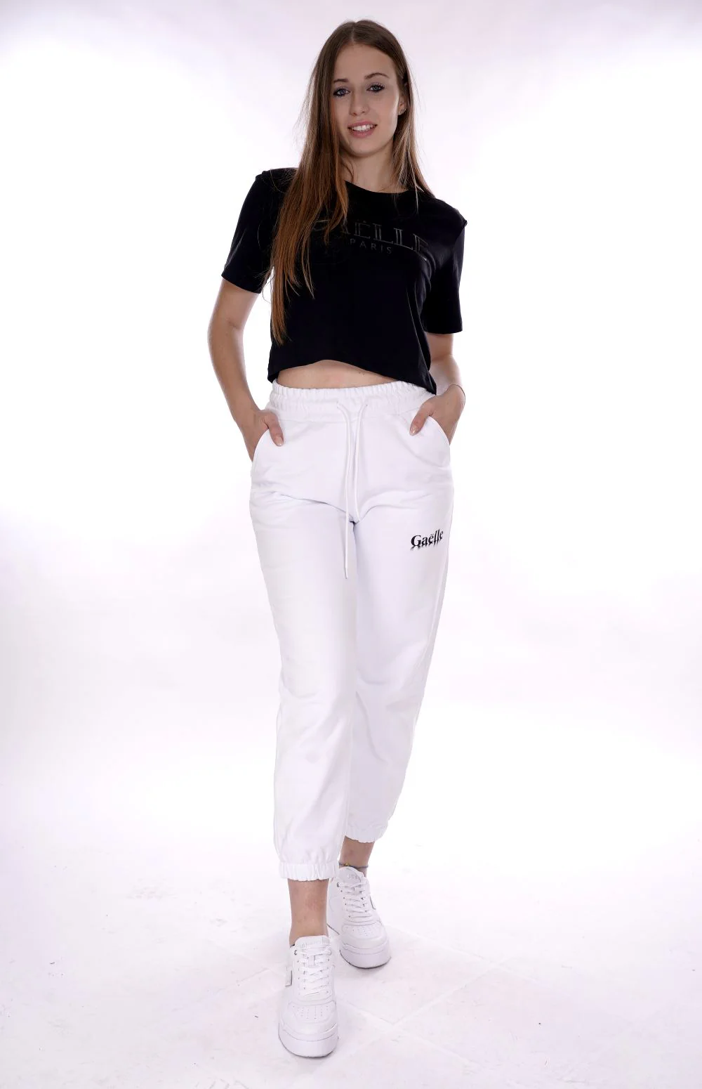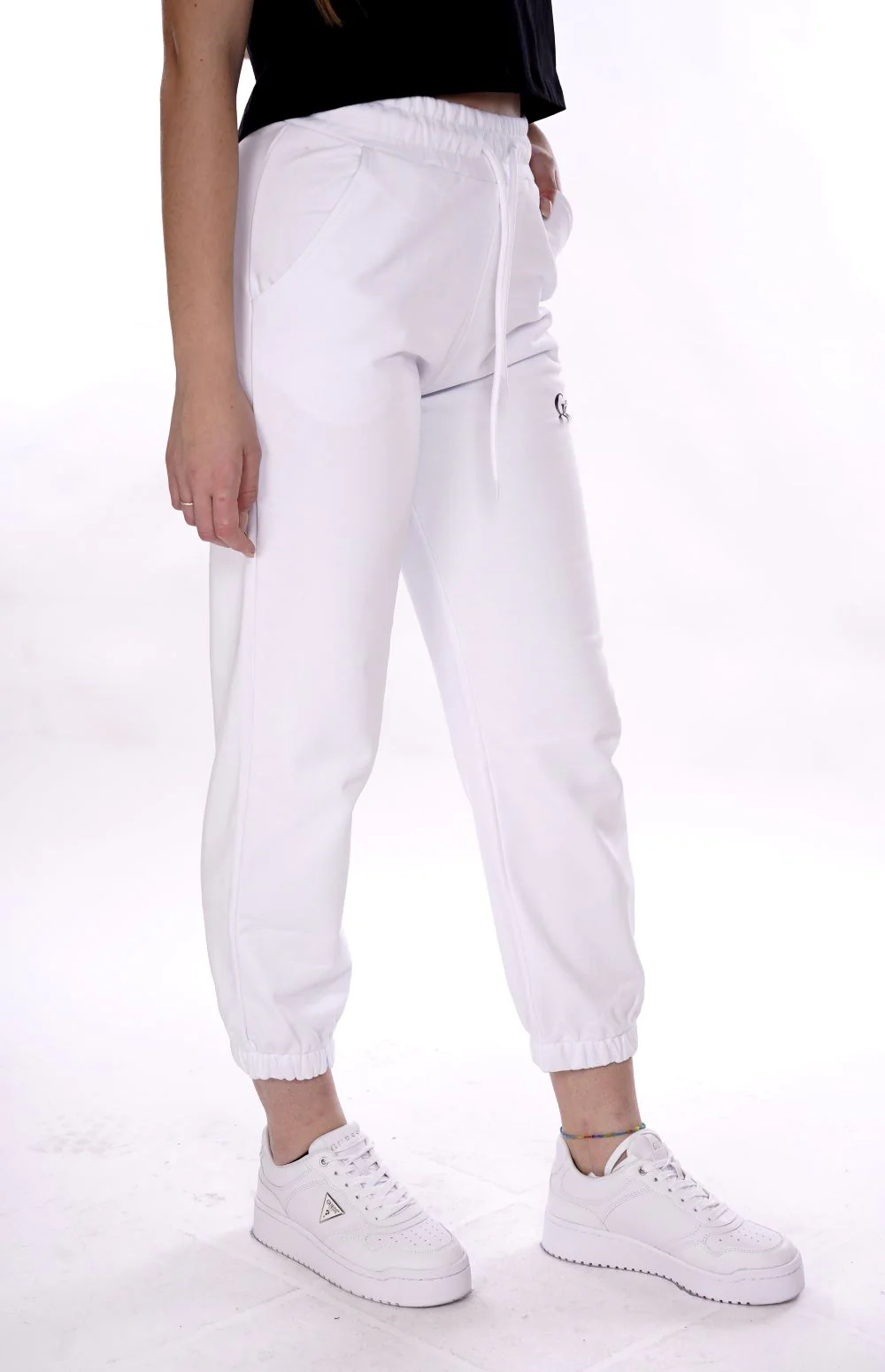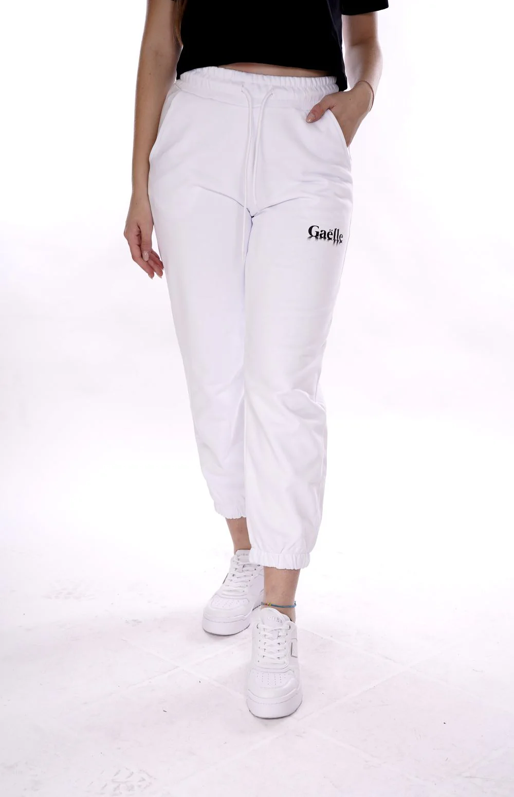GAELLE Pantalone bianco di tuta da donna in felpa di cotone leggero ( non felpato )