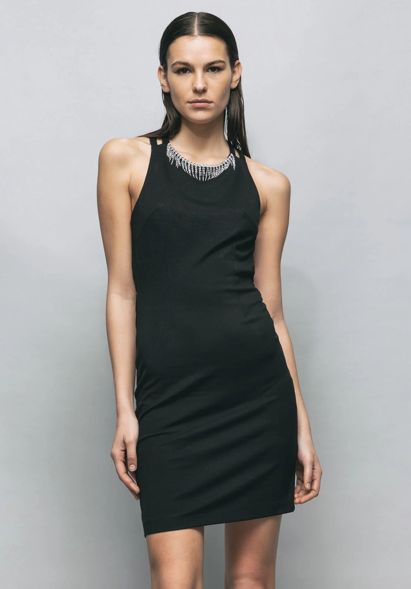 GAELLE Abito nero da donna in tessuto sintetico , con applicazioni e scollatura sul dietro