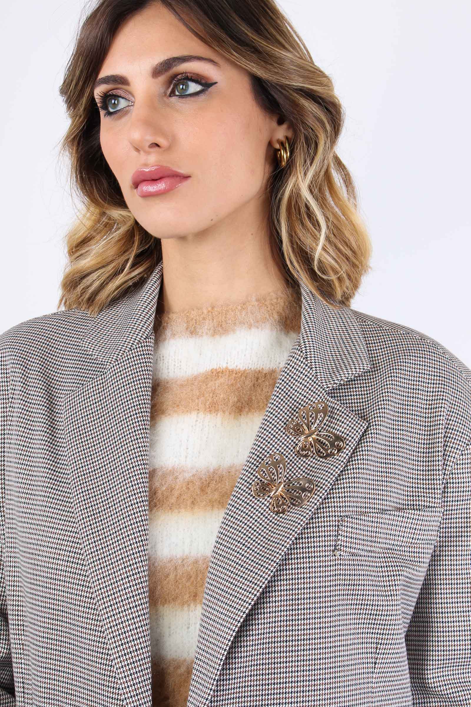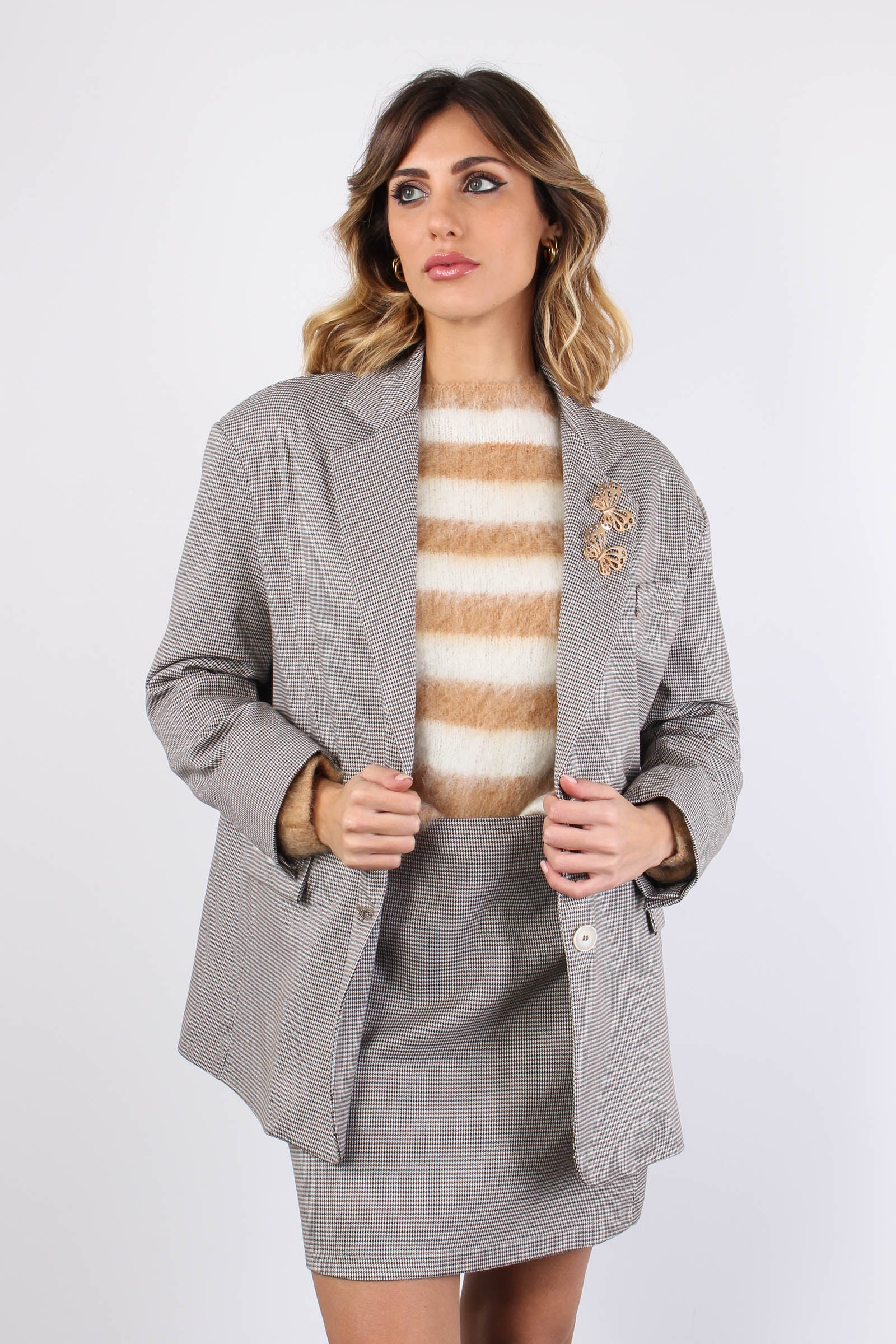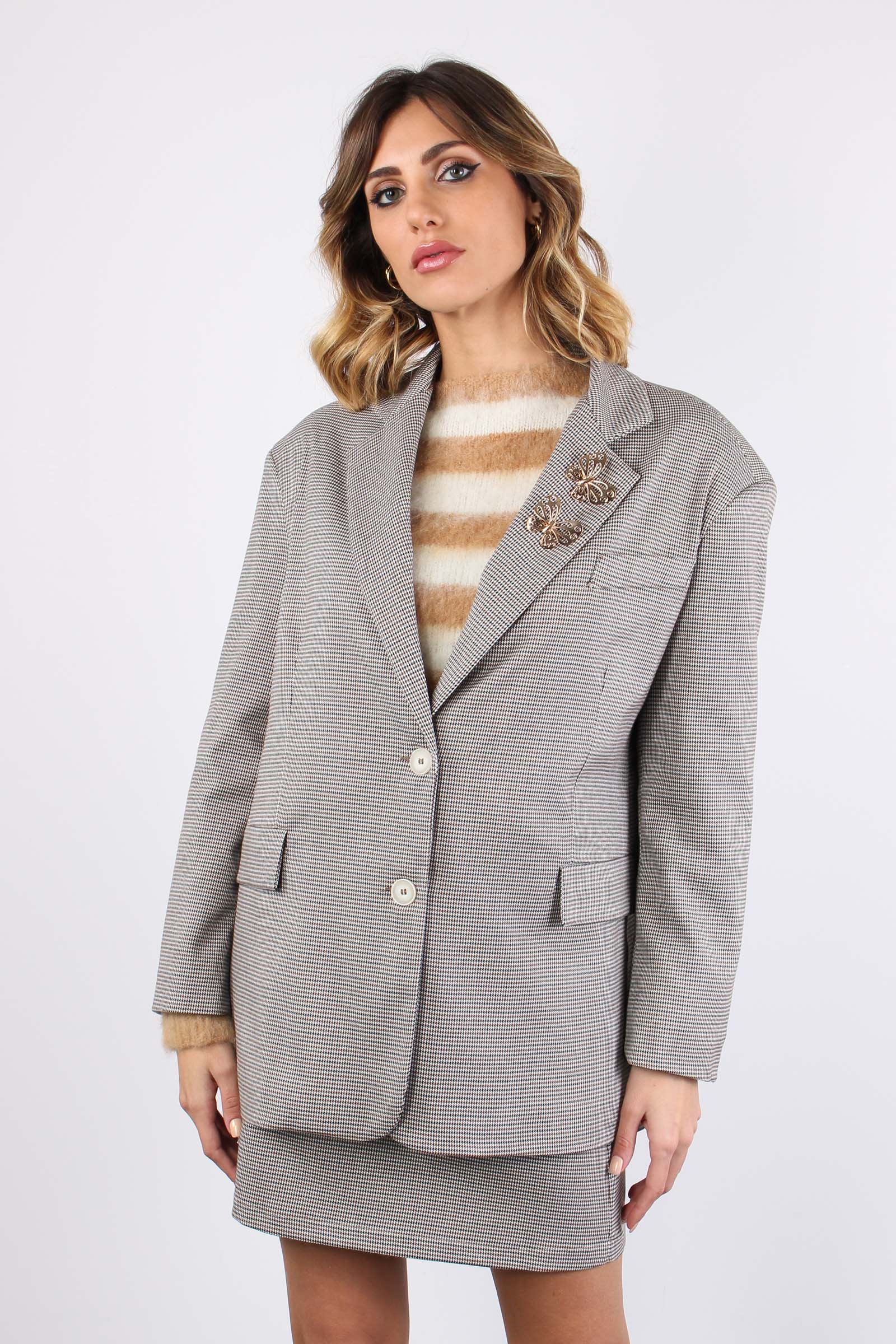Belsa_pie Giacca Pied De Poule Biscuit