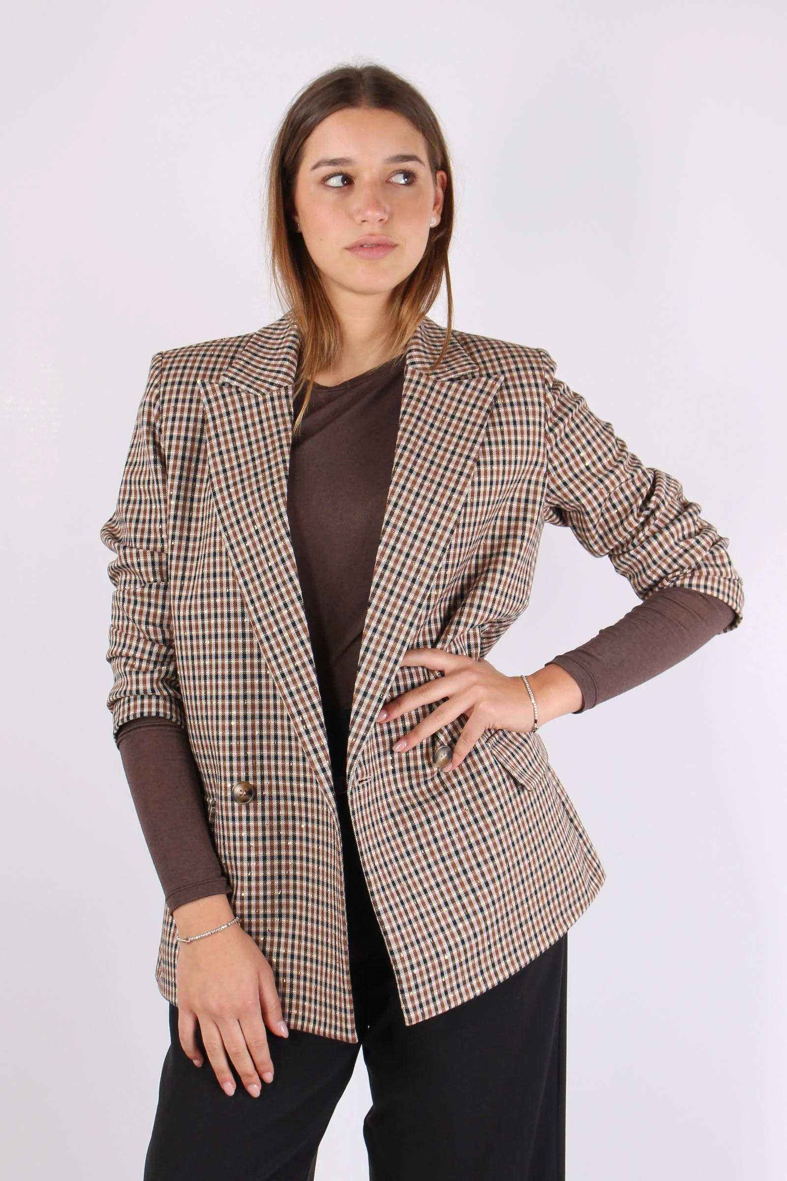 Giacca Scozzese Paillette Cammello/moro