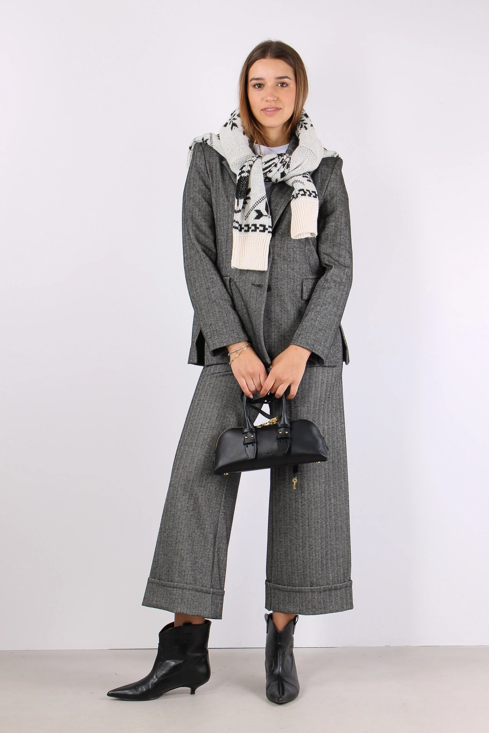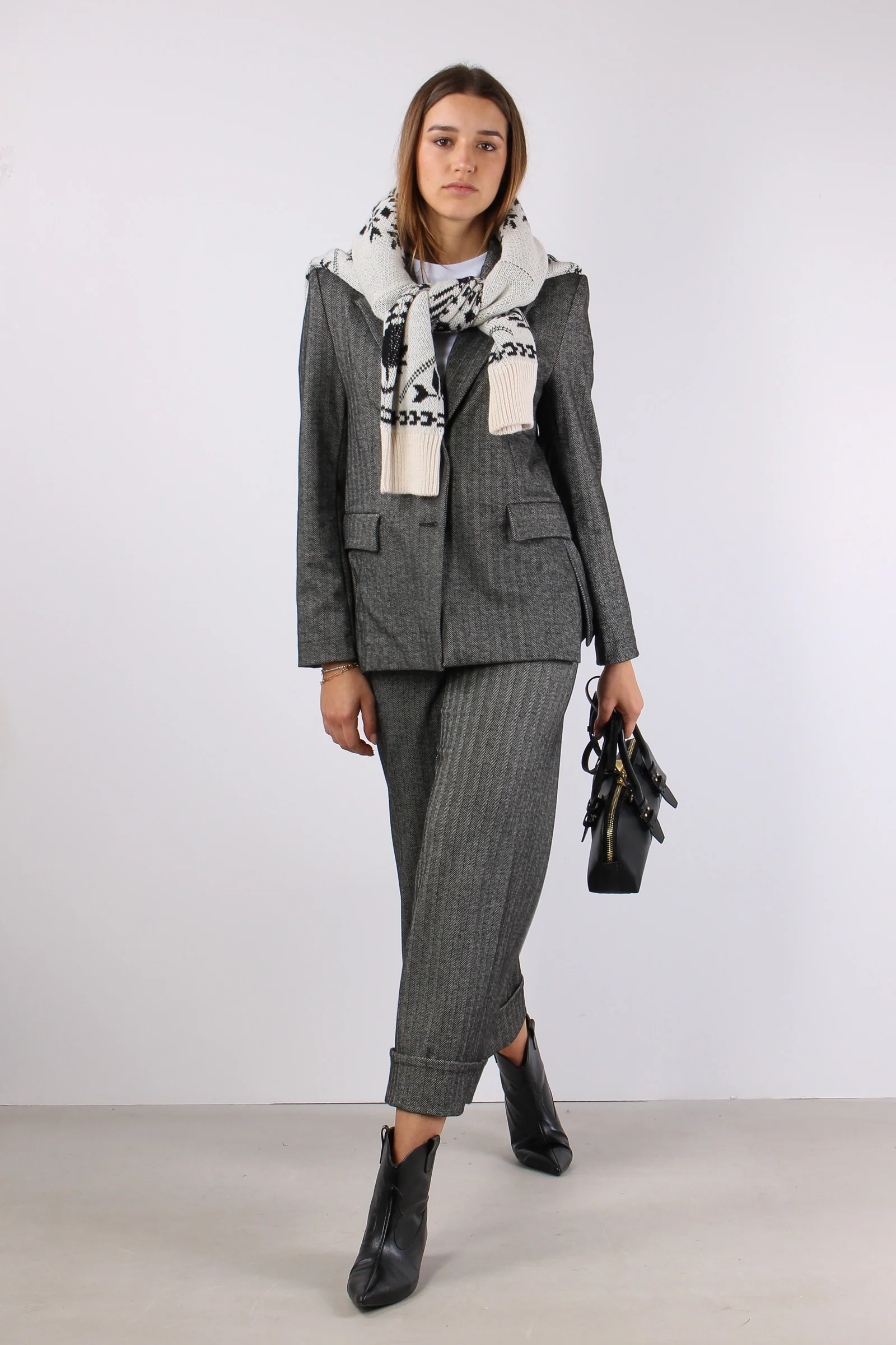 Belsa_pie Giacca Pied De Poule Biscuit