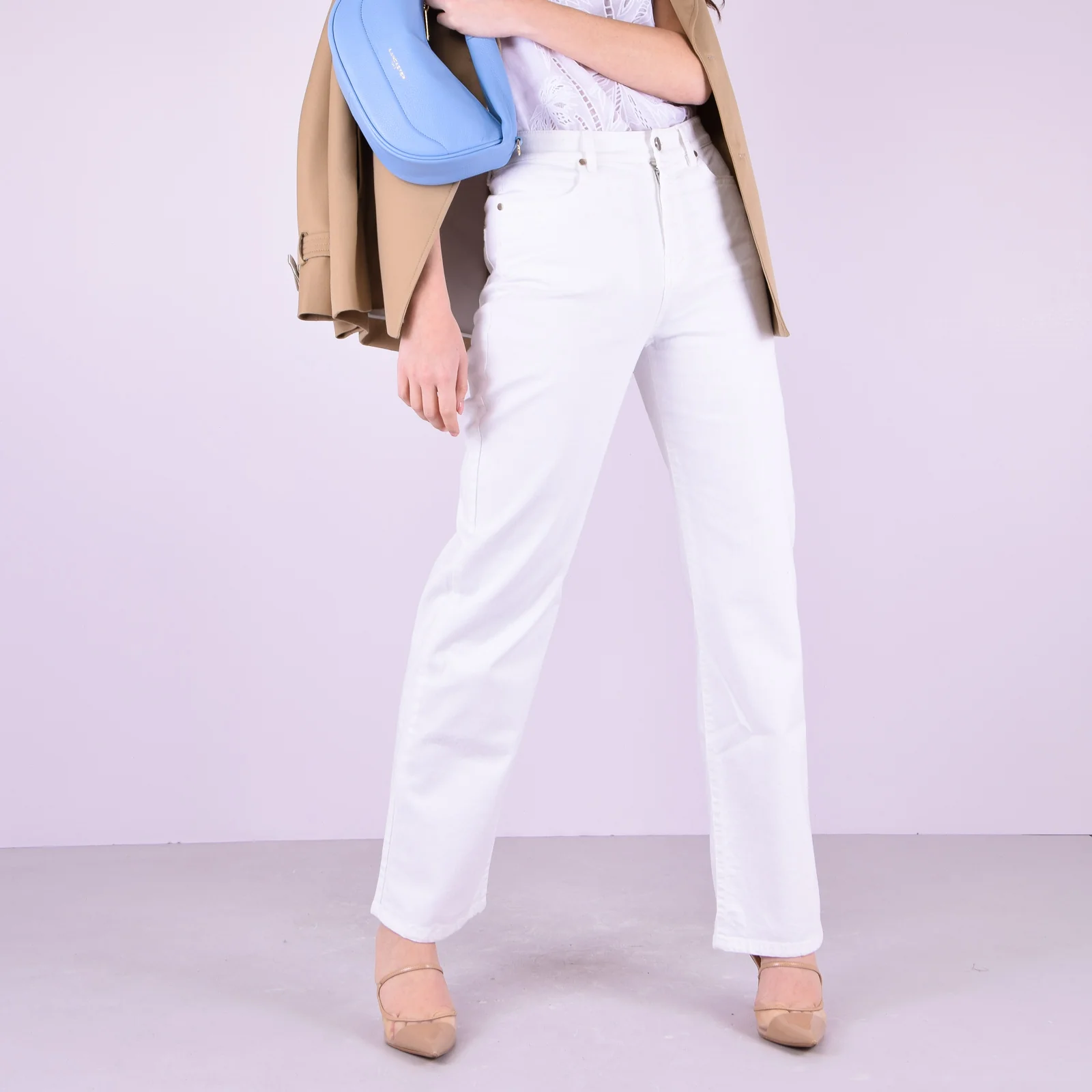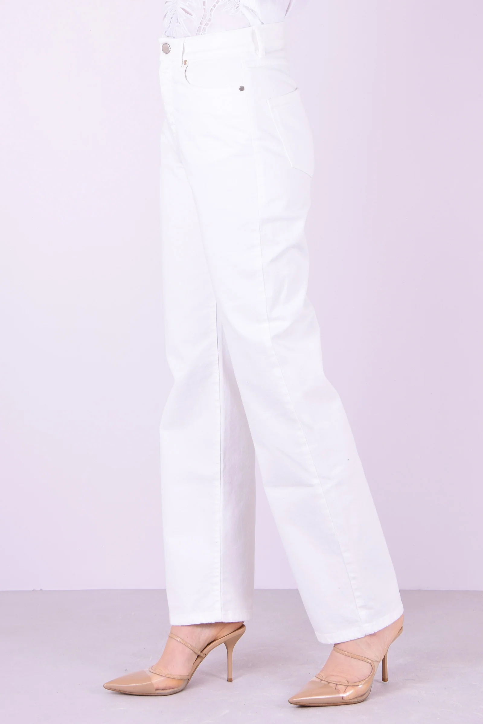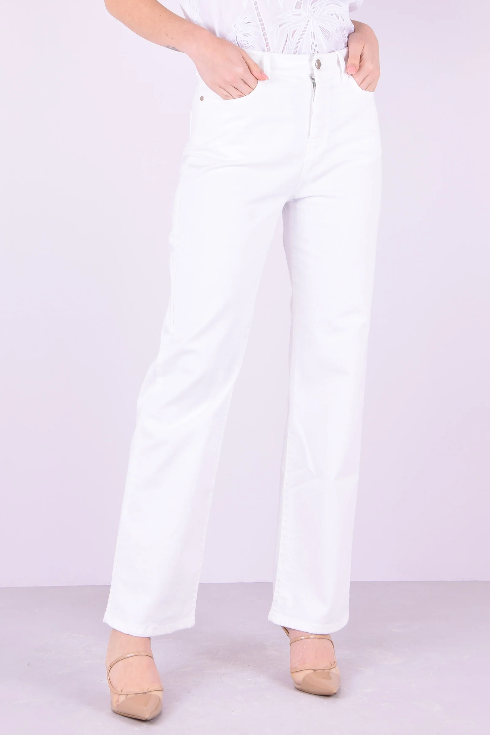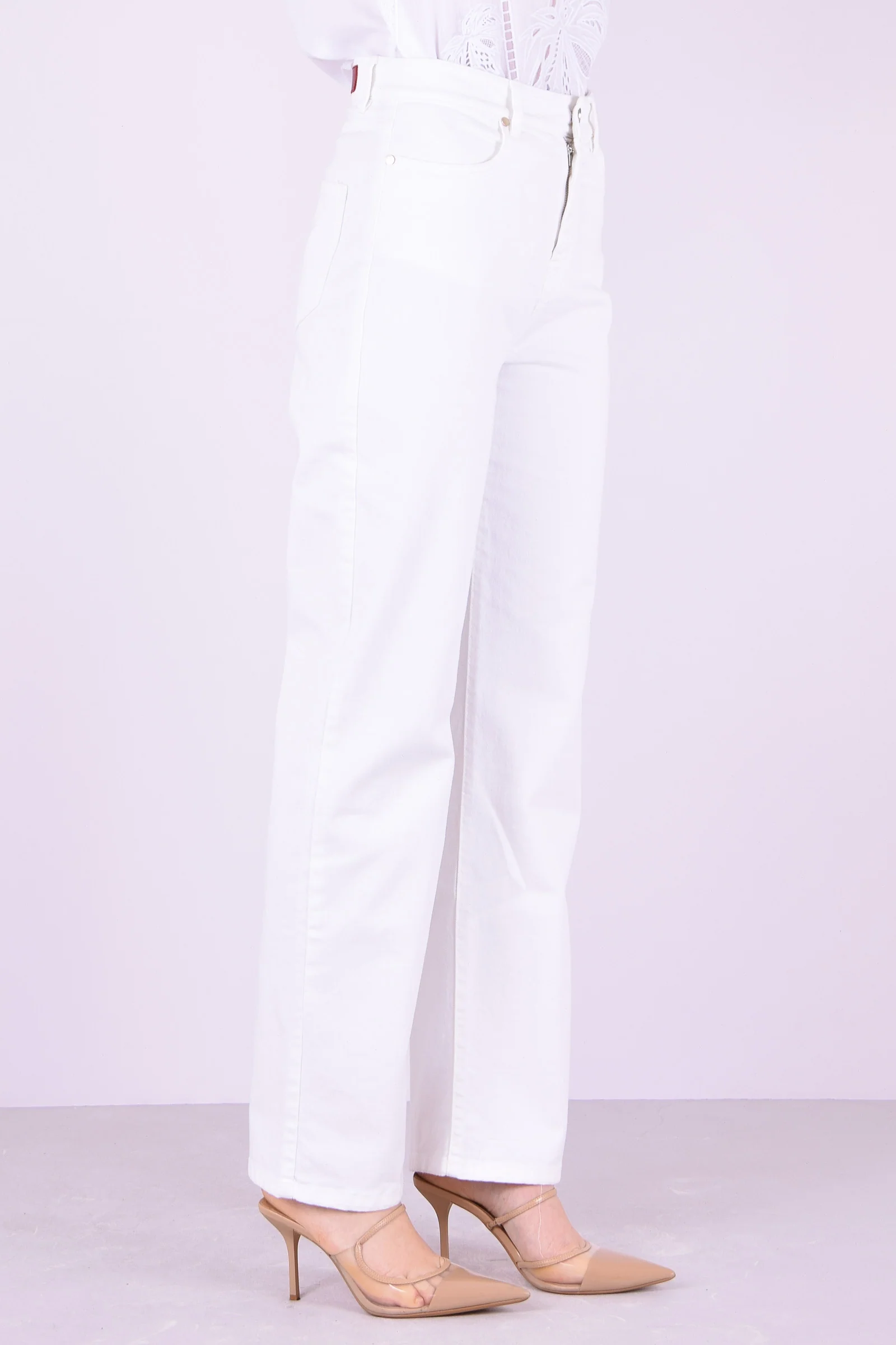 Materiale: 98% Cotone 2% Elastan Dettagli: Pantaloni cinque tasche in tessuto di cotone stretch dalla linea dritta. Chiusura con zip nascosta e bottone visibile. Cinque tasche.