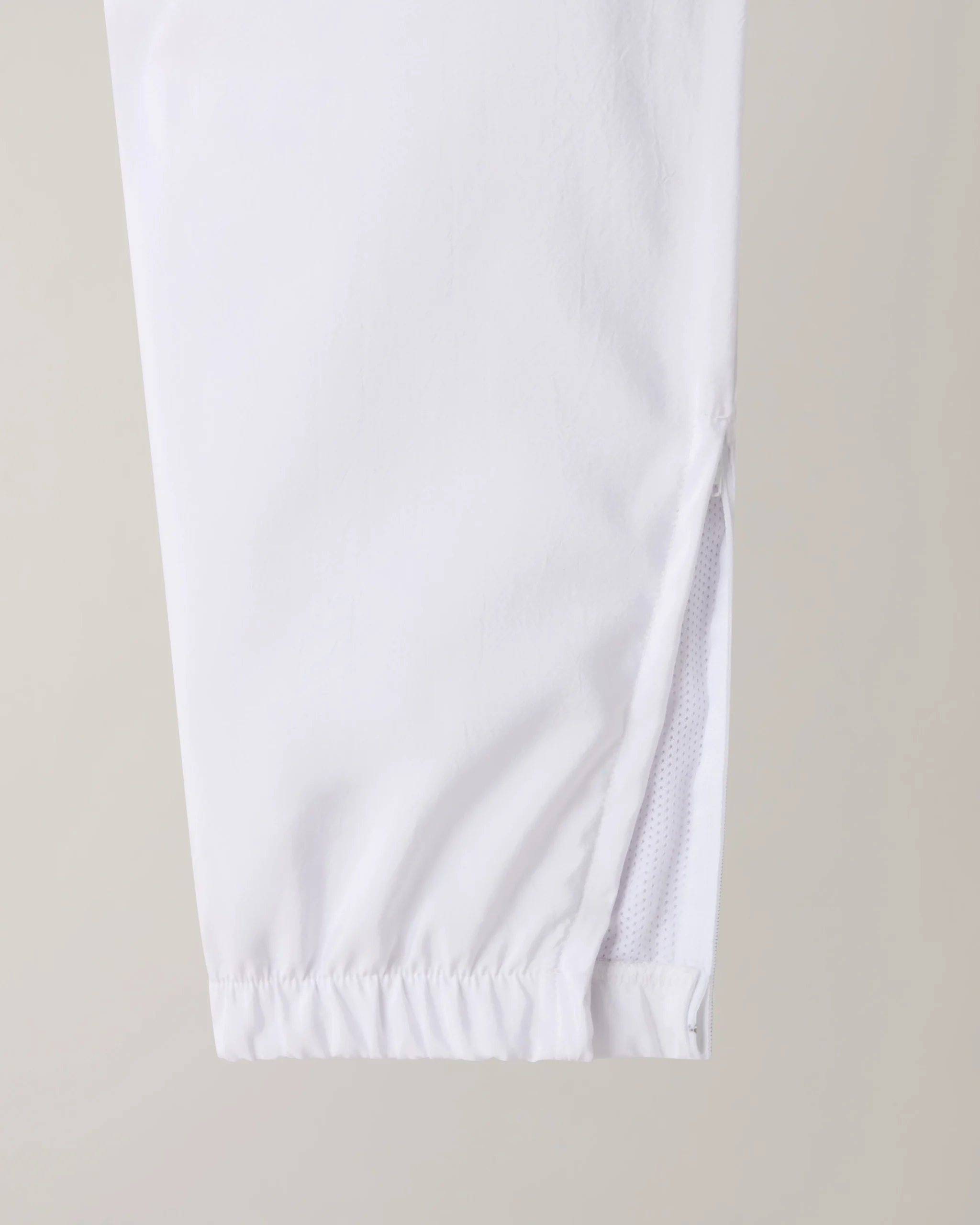 – Pantalone in tessuto Antibes stropicciato– Foderato in mesh– Elastico in vita con coulisse reglabile– Tasche oblique– Fondo elasticizzaco con zip– Logo Bumper 2 colori ricamato– Made in Italy