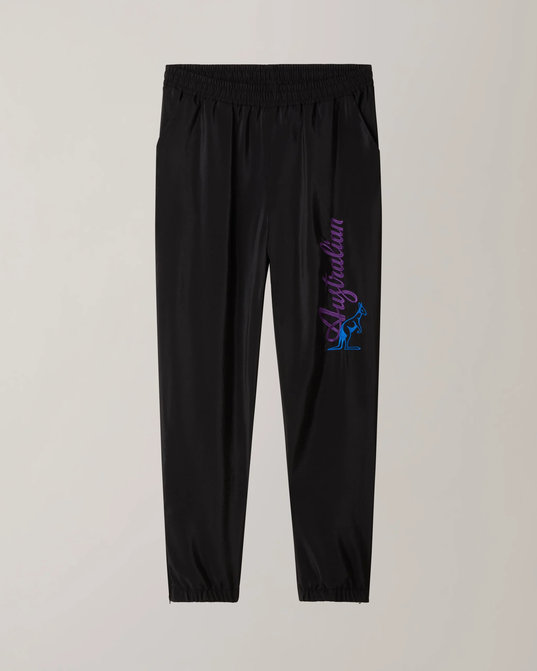– Pantalone in tessuto Antibes stropicciato– Foderato in mesh– Elastico in vita con coulisse reglabile– Tasche oblique– Fondo elasticizzaco con zip– Logo Bumper 2 colori ricamato– Made in Italy