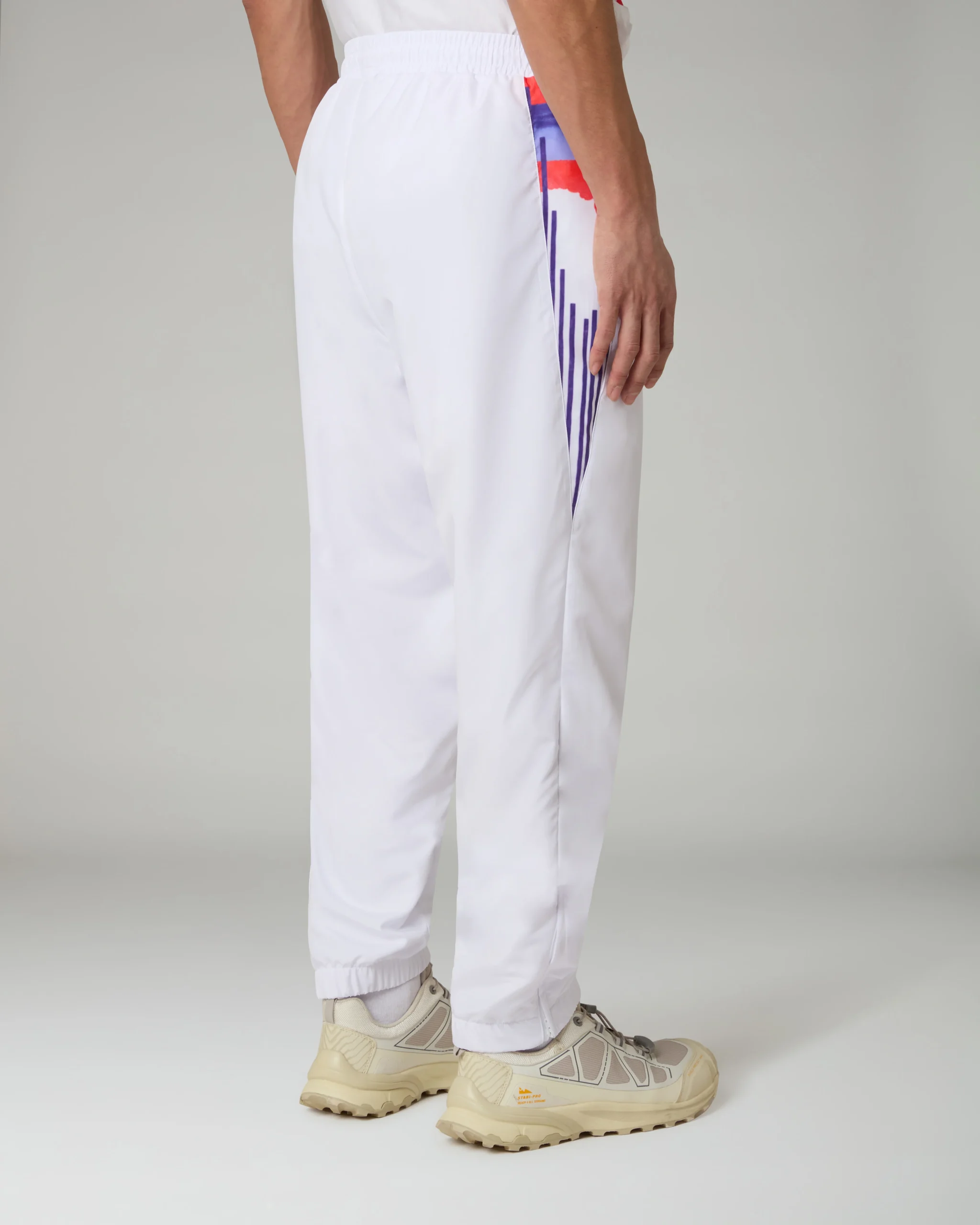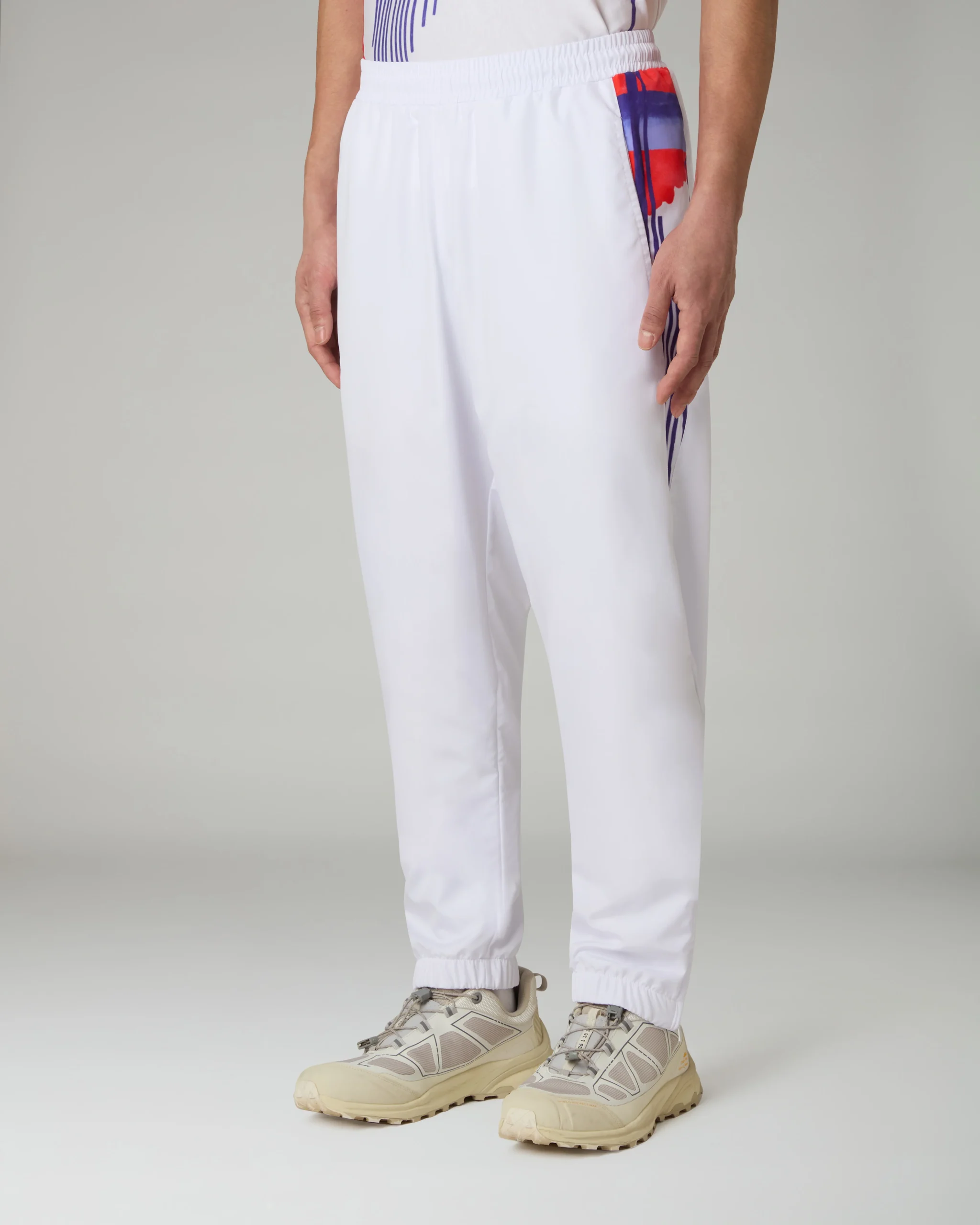 – Pantalone in tessuto tecnico smash– Foderato in mesh– Inserti a “V” laterali in smash stampato– Elastico in vita con coulisse regolabile– Tasche nel fianco– Fondo elasticizzato con zip– Logo ricamato– Made in Italy